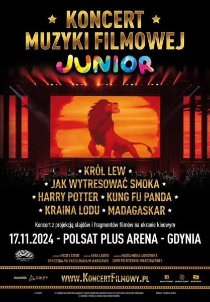 17 listopada w Polsat Plus Arenie Gdynia odbędzie się spektakularny Koncert Muzyki Filmowej. Po raz pierwszy, specjalnie dla młodych widzów, Orkiestra Polskiego Radia w Warszawie oraz Chór Politechniki Warszawskiej pod dyrekcją Macieja Sztora wykonają utwory z filmów „Król lew”, „Jak wytresować smoka”, „Harry Potter”, „Kung Fu Panda”, „Kraina lodu”, „Madagaskar” i wielu innych. Partie solowe zaśpiewa solistka Anna Lasota, a narrację poprowadzi Magda Miśka-Jackowska. Utwory wykonywane na żywo przez chór i orkiestrę, zilustrowane fragmentami filmowymi i słynnymi filmowymi kadrami, przybliżą muzykę symfoniczną w przystępny sposób i zagwarantują niezapomniane muzyczne emocje najmłodszym, a dla rodziców będą okazją do powrotu w magiczny świat dzieciństwa. Koncert zaprezentuje dzieła wybitnych kompozytorów, takich jak: Hans Zimmer, John Williams, John Powell, Alan Menken, Stephen Schwartz i Alan Silvestri, wyróżnionych najbardziej prestiżowymi światowymi nagrodami. Ich muzyka, w połączeniu z kultowymi filmami, które obejrzały miliony widzów na całym świecie, przypomni na nowo ponadczasowe historie i wartości, takie jak: dobro, szlachetność, odwaga, przyjaźń i miłość. - „Król lew” jest jedną z najwspanialszych ścieżek dźwiękowych. Doskonała inwencja kompozytorska współgra z obrazem, oddając najgłębsze i najszczersze emocje. Połączenie rytmiki muzyki afrykańskiej z europejskim językiem muzycznym doskonale sprawdza się nie tylko w filmie, ale i na koncercie. Hans Zimmer zawarł w niej cały swój stosunek do muzyki, łącząc zabawę z osobistymi przeżyciami. W utworze „Madagaskar” słychać kontynuację tej zabawy – podsumowuje Maciej Sztor. Koncert będzie również doskonałą okazją dla najmłodszych, aby rozwinąć swoje muzyczne umiejętności i wspólnie z orkiestrą, pod batutą dyrygenta, wykonać w finale utwór z filmu „Madagaskar”! Wszyscy mogą przynieść swoje ulubione instrumenty czy elementy perkusyjne, takie jak: tamburyny, grzechotki, bongosy, bębenki, a nawet dwa patyki – bo przecież wszystko może służyć do tworzenia dźwięku.Zapraszamy Wszystkich w świat muzyki i filmu – do wspólnego słuchania i muzykowania! Informacje o koncercie: Bilety: 49, 69, 99, 109, 119 zł Wstęp gratis dla dzieci do trzech lat, siedzących na kolanach rodziców Czas trwania koncertu: 70 minut Wykonawcy: Orkiestra Polskiego Radia w Warszawie Chór Politechniki Warszawskiej Anna Lasota – sopran Maciej Sztor – dyrygent Magda Miśka-Jackowska – słowo o muzyce Repertuar: Bryan Tyler – Super Mario Bros Hans Zimmer – Kung Fu Panda Hans Zimmer – Mały książę John Williams – Harry Potter Henry Gregson-Williams – Opowieści z Narnii John Powell – Jak wytresować smoka Alan Silvestri – Polar Express Alan Menken, Stephen Schwartz – Pocahontas Robert Lopez, Kristen Anderson-Lopez – Kraina lodu Hans Zimmer – Król lew Hans Zimmer – Madagaskar (mat. organizatora) Opublikowano: 30.07.2024 15:08 Autor: Paweł Jałoszewski (pawel.jaloszewski@gdynia.pl)