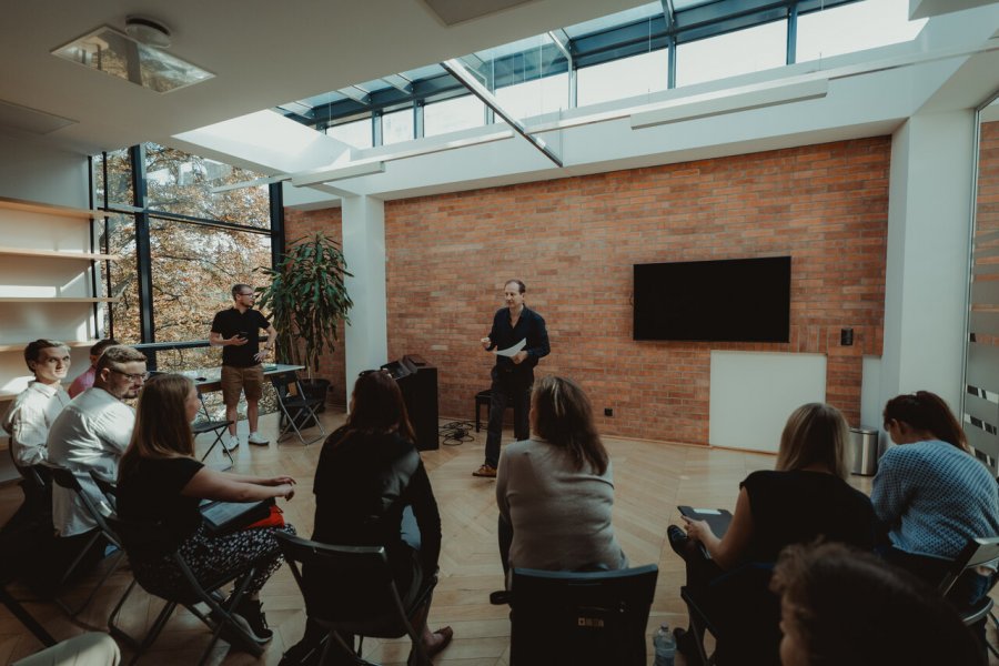 W tym tygodniu wnętrza Konsulatu Kultury wypełniają dźwięki muzyki. Właśnie tu odbywa się bowiem kurs mistrzowski dla dyrygentów chóralnych i śpiewaków zespołowych. Jest to jedno z wydarzeń odbywających się w ramach 7. Dni Muzyki Wokalnej w Gdyni, które rozpoczną się na początku października. W poniedziałek, 18 września w Konsulacie Kultury rozpoczął się kurs mistrzowski dla dyrygentów chóralnych i śpiewaków pod kierunkiem profesora Johannesa Knechta z Niemiec. Jest to jedno z wydarzeń odbywających się w ramach zbliżających się 7. Dni Muzyki Wokalnej w Gdyni. Podczas każdego dnia uczestnicy skupiają się na dwóch głównych obszarach - dyrygentury chóralnej oraz śpiewu zespołowego. W repertuarze warsztatowym znalazły się kompozycje francuskie i niemieckie różnych epok. Dyrektorem artystycznym wydarzenia jest Karol Kisiel. Profesor Johannes Knecht z uczestnikami kursu mistrzowskiego dla dyrygentów chóralnych i śpiewaków zespołowych w gdyńskim Konsulacie Kultury. Fot. RT Produkcja Warto podkreślić, że profesor Johannes Knecht wykłada w Musikhochschule w Lubece, współpracuje również z najlepszymi chórami operowymi. Przez wiele lat był dyrektorem artystycznym chórów operowych w Lyonie i Stuttgarcie. - Bardzo się cieszę, że tak prestiżowe wydarzenie odbywa się w Gdyni, w naszym Konsulacie Kultury, który jak się okazuje, jest idealną przestrzenią do takich właśnie inicjatyw - mówi Beata Nawrocka, dyrektorka Gdyńskiego centrum Kultury. - W kursie udział biorą śpiewacy, muzycy, dyrygenci - nie tylko z Gdyni, ale z całego województwa - dodaje. Kurs mistrzowski dla dyrygentów chóralnych i śpiewaków zespołowych w gdyńskim Konsulacie Kultury. Fot. RT Produkcja Organizatorem wydarzenia jest Fundacja Polihymnia, dyrektorem artystycznym - Karol Kisiel. Realizacja możliwa jest dzięki finansowemu wsparciu Miasta Gdynia, Ministerstwa Kultury i Dziedzictwa Narodowego w ramach programu Kultura Interwencje oraz Fundacji PZU, Partnera wydarzenia. Galeria zdjęć Pobierz galerię Profesor Johannes Knecht z uczestnikami kursu mistrzowskiego dla dyrygentów chóralnych i śpiewaków zespołowych w gdyńskim Konsulacie Kultury. Fot. RT Produkcja Pobierz zdjęcie Profesor Johannes Knecht z uczestnikami kursu mistrzowskiego dla dyrygentów chóralnych i śpiewaków zespołowych w gdyńskim Konsulacie Kultury. Fot. RT Produkcja Pobierz zdjęcie Profesor Johannes Knecht z uczestnikami kursu mistrzowskiego dla dyrygentów chóralnych i śpiewaków zespołowych w gdyńskim Konsulacie Kultury. Fot. RT Produkcja Pobierz zdjęcie Profesor Johannes Knecht z uczestnikami kursu mistrzowskiego dla dyrygentów chóralnych i śpiewaków zespołowych w gdyńskim Konsulacie Kultury. Fot. RT Produkcja Pobierz zdjęcie Warunki pobierania Wszelkie prawa do zdjęć lub grafik prezentowanych w ramach portalu, należą do Prowadzącego portal lub do podmiotów z nim współpracujących i podlegają ochronie prawnej. Prowadzący portal zezwala na kopiowanie i przedstawianie utworów jedynie w celach niekomercyjnych oraz pod warunkiem zachowania go w oryginalnej postaci i zachowaniem kontekstu tematu, do którego zostało wykorzystaneprzez redakcję gdynia.pl. Opublikowane materiały powinny zawsze zawierać źródło, czyli adres strony www.gdynia.pl. Na publikowanie utworów w innych celach wymagana jest zgoda właściciela strony czyli Prowadzącego portal. Opublikowano: 20.09.2023 13:08 Autor: Zygmunt Gołąb (z.golab@gdynia.pl) Zmodyfikowano: 25.09.2023 12:01 Zmodyfikował: Zygmunt Gołąb