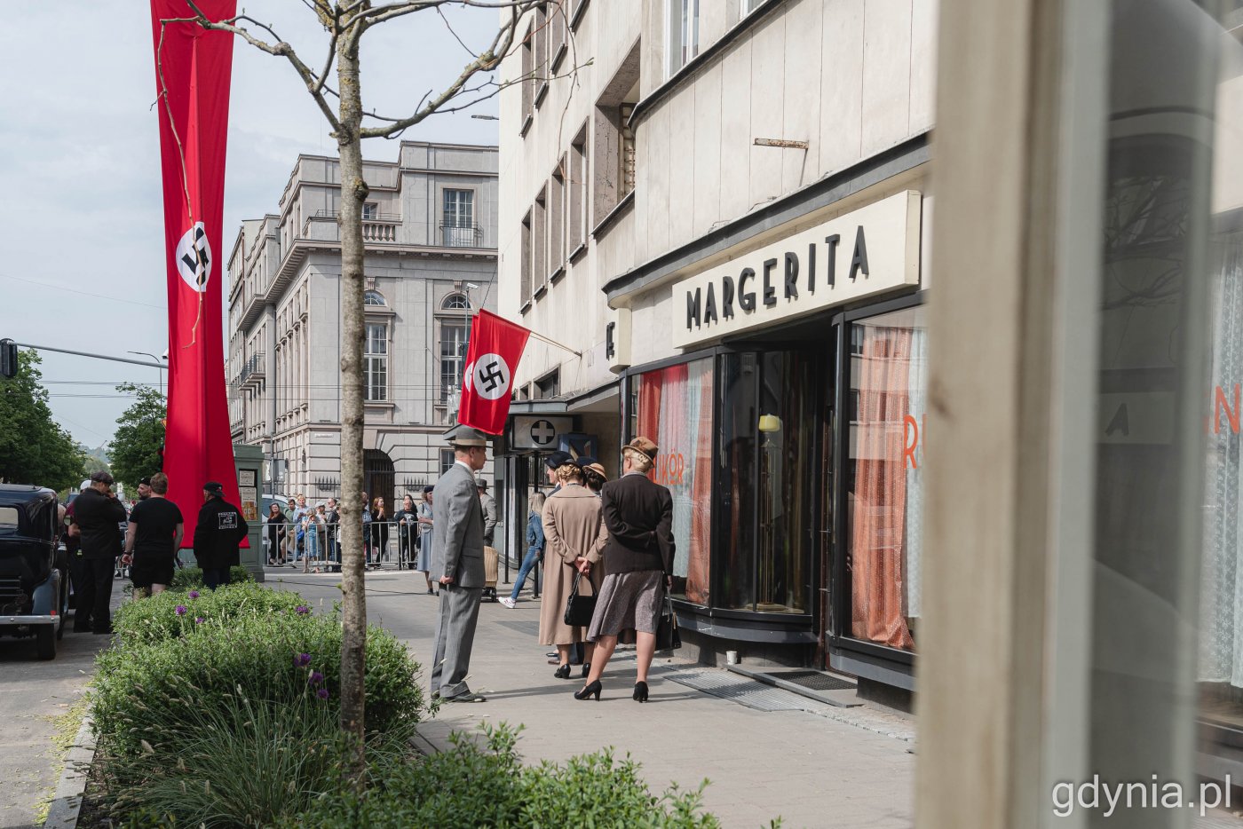 – Opieramy się głównie o te budynki, które w 1940 roku stanowiły – i nadal stanowią – o charakterze Gdyni, czyli perły modernizmu. Choć z drugiej strony miasto było niedokończone i jest szalenie trudno znaleźć całe pierzeje takich kamienic czy ulic. Naszą podróż zaczęliśmy w dwóch lokalizacjach w Gdańsku, potem było molo w Orłowie, Formoza, ORP „Błyskawica”, a dzisiaj jest ul. 3 Maja – opowiada reżyser Michał Rogalski.