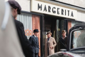 Na zdj. Michał Rogalski stoi oparty o zabytkowe auto przed kawiarnią Cyganeria, która na moment zmieniła się w Margeritę