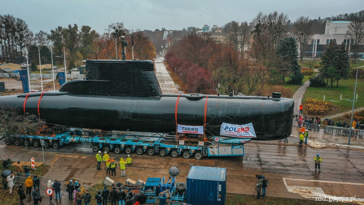 Ma niespełna 47,5 metra długości i waży 370 ton. A jego kadłub w najszerszym miejscu mierzy 4,6 metra. Okręt podwodny typu Kobben – dawny „Sokół” – zakończył swoją podróż i dotarł do Muzeum Marynarki Wojennej. To tam rozpocznie nowe życie i będzie gwiazdą plenerowej ekspozycji. W piątek, 24 listopada jednostka zostanie posadowiona w niecce ekspozycyjnej. Zakończył się trwający od kilku dni transport „Sokoła”. Okręt podwodny odbył podróż wodą i lądem, ale dotarł już do celu. Wkrótce na dobre zadomowi się w nowym miejscu i będzie cieszyć oczy odwiedzających ekspozycję plenerową Muzeum Marynarki Wojennej w Gdyni przy bulwarze Nadmorskim. Czwartek, 23 listopada był kulminacyjnym dniem operacji „Sokół”. Rano okręt został opuszczony z tymczasowych podpór na wieloosiowe wózki SPMT. Po godz. 11.00 rozpoczęła się długo wyczekiwana lądowa akcja transportowa z nabrzeża Pomorskiego do muzeum. To było logistyczne i organizacyjne wyzwanie. – To była jedyna w swoim rodzaju operacja, która na długo zapisze się w pamięci gdynian. Dziękujemy mieszkańcom za cierpliwość i stosowanie się do zmian w organizacji ruchu, które musieliśmy wprowadzić ze względu na tę skomplikowaną akcję. Całe przedsięwzięcie odbyło się bez przeszkód i okręt stoi już w docelowym miejscu, co bardzo nas cieszy. Będzie to kolejny ciekawy eksponat na ekspozycji Muzeum Marynarki Wojennej – mówi Marek Łucyk, wiceprezydent ds. rozwoju.– Dzieje Marynarki Wojennej są splecione z historią miasta. Dzisiaj zapisaliśmy jej kolejną piękną kartę. „Sokół” z pewnością będzie jedną z największych atrakcji muzeum, a jego doskonała lokalizacja sprawi, że będą mogli go oglądać nie tylko mieszkańcy, ale i turyści z całego świata – mówi Joanna Zielińska, przewodnicząca Rady Miasta Gdyni i członkini Rady Muzeum Marynarki Wojennej w Gdyni. „Sokół” przejeżdżający przez aleję Topolową w stronę Muzeum Marynarki Wojennej // fot. Marcin MielewskiNa początku „Sokół” był transportowany dziobem do przodu – pojechał kawałek prosto, w stronę mariny, a następnie w prawo w aleję Jana Pawła II. Natomiast przez aleję Topolową okręt jechał śrubą do przodu. Tak też dotarł do celu. Ostatnim etapem będzie posadowienie jednostki w niecce ekspozycyjnej. Akcja jest zaplanowana na piątek, 24 listopada. – Kiedy okręt dojedzie do przygotowanej niecki musi być zestawiony z wózków. Podobnie jak to było w przypadku przeniesienia go z pontonu, teraz również zjedzie on z podpór do niecki i to będzie koniec całej operacji – mówi Aleksander Gosk, zastępca dyrektora Muzeum Marynarki Wojennej w Gdyni. Przypomnijmy, że „Sokół” ruszył w drogę do nowego domu w piątek, 17 listopada. Wtedy jednostka opuściła PGZ Stocznię Wojenną, gdzie przeszła prace zabezpieczające i adaptacyjne. Okręt umieszczono na specjalnym pontonie TRD-Voyager, na którym drogą wodną dotarł on do nabrzeża Pomorskiego. We wtorek, 21 listopada przeniesiono go z pontonu na stały ląd. Natomiast w środę, 22 listopada złożono i odpowiednio zaprogramowano zestaw transportowy oraz przygotowano trasę przejazdu. Według założeń okręt będzie dostępny dla zwiedzających w przyszłym sezonie letnim. A to dlatego, że po ustawieniu go w miejscu docelowym trzeba będzie uzupełnić jego wyposażenie i ostatecznie przygotować go na przyjęcie gości. Historia „Sokoła” „Sokół” to okręt typu Kobben, który został zbudowany w niemieckiej stoczni Nordseewerke dla Królewskiej Marynarki Wojennej Norwegii i zwodowany 2 września 1966 roku. Po zakończeniu służby w norweskiej marynarce jednostkę przekazano polskim siłom zbrojnym. Biało-czerwoną banderę podniesiono na niej 4 czerwca 2002 roku. Okręt był trzecim „Sokołem” w historii polskiej Marynarki Wojennej i spadkobiercą zaszczytnych tradycji jednego z najsłynniejszych okrętów podwodnych II wojny światowej. Do jego podstawowych zadań należała obrona, ochrona oraz patrolowanie polskiego wybrzeża. W czasie 16 lat służby dla naszego kraju uczestniczył on w wielu międzynarodowych ćwiczeniach, takich jak: Baltops, Passex, Danex czy Steadfast Jazz, a także w manewrach Sił Odpowiedzi NATO. W 2018 roku okręt zakończył służbę dla Polski. Nie trafił jednak „na żyletki”. W 2020 roku przekazano go Muzeum Marynarki Wojennej w Gdyni, które dało mu drugie życie. Galeria zdjęć Pobierz galerię „Sokół” w alei Topolowej podczas transportu do Muzeum Marynarki Wojennej // fot. Marcin Mielewski Pobierz zdjęcie „Sokół” na skwerze Kościuszki podczas transportu do Muzeum Marynarki Wojennej // fot. Marcin Mielewski Pobierz zdjęcie „Sokół” skręcający w aleję Topolową podczas transportu do Muzeum Marynarki Wojennej // fot. Marcin Mielewski Pobierz zdjęcie „Sokół” na skwerze Kościuszki podczas transportu do Muzeum Marynarki Wojennej // fot. Marcin Mielewski Pobierz zdjęcie „Sokół” w alei Topolowej podczas transportu do Muzeum Marynarki Wojennej // fot. Marcin Mielewski Pobierz zdjęcie „Sokół” przejeżdżający przez aleję Topolową w stronę Muzeum Marynarki Wojennej // fot. Marcin Mielewski Pobierz zdjęcie „Sokół” ustawiony przy niecce ekspozycyjnej na ekspozycji plenerowej Muzeum Marynarki Wojennej // fot. Marcin Mielewski Pobierz zdjęcie „Sokół” ustawiony obok ekspozycji plenerowej Muzeum Marynarki Wojennej // fot. Marcin Mielewski Pobierz zdjęcie Warunki pobierania Wszelkie prawa do zdjęć lub grafik prezentowanych w ramach portalu, należą do Prowadzącego portal lub do podmiotów z nim współpracujących i podlegają ochronie prawnej. Prowadzący portal zezwala na kopiowanie i przedstawianie utworów jedynie w celach niekomercyjnych oraz pod warunkiem zachowania go w oryginalnej postaci i zachowaniem kontekstu tematu, do którego zostało wykorzystaneprzez redakcję gd