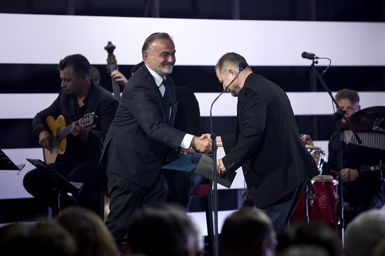 W tym roku Dwa Teatry - XVIII Festiwal Teatru Polskiego Radia i Teatru Telewizji Polskiej, odbył się również w Gdyni, w Gdyńskim Centrum Filmowym. Podczas uroczystej gali festiwalu, która odbyła się w Sopocie, prezydent Wojciech Szczurek wręczył nagrody ufundowane przez siebie w kategorii aktorskiej za role męską w słuchowisku Polskiego Radia oraz za najlepszą scenografię. Podczas trwania XVIII Festiwalu Teatru Polskiego Radia i Teatru Telewizji Polskiej w Gdyni mogliśmy zobaczyć konkursowe spektakle także w sali Warszawa w Gdyńskim Centrum Filmowym. Prezydent Gdyni, Wojciech Szczurek ufundował nagrody za scenografię w spektaklu teatru oraz w kategorii aktorskiej za role męską w słuchowisku Polskiego Radia. - Bardzo mi miło, że w imieniu mieszkańców pięknej Gdyni mogę wręczyć tę nagrodę - mówił podczas gali Wojciech Szczurek, prezydent Gdyni. Prezydent wręczył nagrodę Arkadiuszowi Kośmiderowi za scenografię do spektaklu „Pan Jowialski” oraz nagrodę aktorską Mariuszowi Bonaszewskiemu za rolę Marszałka Józefa Piłsudskiego w spektaklu „Marszałek” w reż. Krzysztofa Langa oraz za rolę Necatora w spektaklu „Spiskowcy” w reż. Jana Englerta. Wielką Nagrodą Festiwalu za wybitne kreacje aktorskie w Teatrze Polskiego Radia i Teatrze Telewizji Polskiej uhonorowano Barbarę Krafftównę i Franciszka Pieczkę. Tytuł najlepszego spektaklu Teatru Telewizji Polskiej przypadł natomiast „Inspekcji” w reżyserii Jacka Raginisa-Królikiewicza. Nagrody specjalne przyznano: Janowi Englertowi za reżyserię spektaklu „Spiskowcy” Josepha Conrada Korzeniowskiego, Wojciechowi Tomczykowi za oryginalny współczesny polski tekst dramatyczny „Marszałek”, Piotrowi Wojtowiczowi za zdjęcia do spektakli: „Spiskowcy” w reż. Jana Englerta oraz „Pan Jowialski” w reż. Artura Żmijewskiego, reżyserce Agnieszce Glińskiej i autorowi zdjęć Wojciechowi Staroniowi za twórczą realizację telewizyjną spektaklu teatralnego „Pożegnania” Stanisława Dygata. Nagrodę im. Janusza Hajduna za muzykę oryginalną do spektaklu „Bóg Niżyński” w reż. Piotra Tomaszuka otrzymał Piotr Nazaruk. Za montaż spektakli: „Marszałek” w reż. Krzysztofa Langa oraz „Spiskowcy” w reż. Jana Englerta nagrodę otrzymała Milenia Fiedler. Jury zdecydowało też o przyznaniu nagrody aktorskiej za rolę kobiecą ex aequo: Marii Pakulnis za rolę Victorii w spektaklu „Victoria” w reż. Ewy Pytki i Agnieszce Warchulskiej za rolę Gerdy w spektaklu „Alibi” w reż. Łukasza Wylężałka. Nagrodę Honorową im. Krzysztofa Zaleskiego za twórczość odrzucającą stereotypy i łatwe nowinki, umocowaną w pamięci i historii, dotyczącą problemów współczesności otrzymał spektakl „Wujek.81.Czarna ballada” w reż. Roberta Talarczyka. Gala finałowa XVIII Festiwalu Teatru Polskiego Radia i Teatru Telewizji Polskiej odbyła się w hotelu Sheraton w Sopocie i była transmitowana na żywo na kanałach TVP Kultura i TVP Gdańsk. Retransmisję będzie można zobaczyć 3 lipca na antenie TVP1 o godz. 23:30 oraz 4 lipca na antenie TVP Polonia o godz. 23.10. Galeria zdjęć Pobierz galerię Gala finałowa XVIII Festiwalu Teatru Polskiego Radia i Teatru Telewizji Polskiej "Dwa Teatry" // fot. Przemyslaw Kozłowski Pobierz zdjęcie Gala finałowa XVIII Festiwalu Teatru Polskiego Radia i Teatru Telewizji Polskiej "Dwa Teatry" // fot. Przemyslaw Kozłowski Pobierz zdjęcie Gala finałowa XVIII Festiwalu Teatru Polskiego Radia i Teatru Telewizji Polskiej "Dwa Teatry" // fot. Przemyslaw Kozłowski Pobierz zdjęcie Gala finałowa XVIII Festiwalu Teatru Polskiego Radia i Teatru Telewizji Polskiej "Dwa Teatry" // fot. Przemyslaw Kozłowski Pobierz zdjęcie Gala finałowa XVIII Festiwalu Teatru Polskiego Radia i Teatru Telewizji Polskiej "Dwa Teatry" // fot. Przemyslaw Kozłowski Pobierz zdjęcie Gala finałowa XVIII Festiwalu Teatru Polskiego Radia i Teatru Telewizji Polskiej "Dwa Teatry" // fot. Przemyslaw Kozłowski Pobierz zdjęcie Gala finałowa XVIII Festiwalu Teatru Polskiego Radia i Teatru Telewizji Polskiej "Dwa Teatry" // fot. Przemyslaw Kozłowski Pobierz zdjęcie Gala finałowa XVIII Festiwalu Teatru Polskiego Radia i Teatru Telewizji Polskiej "Dwa Teatry" // fot. Przemyslaw Kozłowski Pobierz zdjęcie Gala finałowa XVIII Festiwalu Teatru Polskiego Radia i Teatru Telewizji Polskiej "Dwa Teatry" // fot. Przemyslaw Kozłowski Pobierz zdjęcie Gala finałowa XVIII Festiwalu Teatru Polskiego Radia i Teatru Telewizji Polskiej "Dwa Teatry" // fot. Przemyslaw Kozłowski Pobierz zdjęcie Gala finałowa XVIII Festiwalu Teatru Polskiego Radia i Teatru Telewizji Polskiej "Dwa Teatry" // fot. Przemyslaw Kozłowski Pobierz zdjęcie Gala finałowa XVIII Festiwalu Teatru Polskiego Radia i Teatru Telewizji Polskiej "Dwa Teatry" // fot. Przemyslaw Kozłowski Pobierz zdjęcie Gala finałowa XVIII Festiwalu Teatru Polskiego Radia i Teatru Telewizji Polskiej "Dwa Teatry" // fot. Przemyslaw Kozłowski Pobierz zdjęcie Gala finałowa XVIII Festiwalu Teatru Polskiego Radia i Teatru Telewizji Polskiej "Dwa Teatry" // fot. Przemyslaw Kozłowski Pobierz zdjęcie Gala finałowa XVIII Festiwalu Teatru Polskiego Radia i Teatru Telewizji Polskiej "Dwa Teatry" // fot. Przemyslaw Kozłowski Pobierz zdjęcie Warunki pobierania Wszelkie prawa do zdjęć lub grafik prezentowanych w ramach portalu, należą do Prowadzącego portal lub do podmiotów z nim współpracujących i podlegają ochronie prawnej. Prowadzący portal zezwala na kopiowanie i przedstawianie utworów jedynie w celach niekomercyjnych oraz pod warunkiem zachowania go w oryginalnej postaci i zachowaniem kontekstu tematu, do którego zostało wykorzystaneprzez redakcję gdynia.pl. Opublikowane materiały powinny zawsze zawierać źródło, czyli adres strony www.gdynia.pl. Na publikowanie utworów w innych celach wymagana jest zgoda właściciela strony czyli Prowadzącego portal. Opublikowano: 03.07.2018 10: