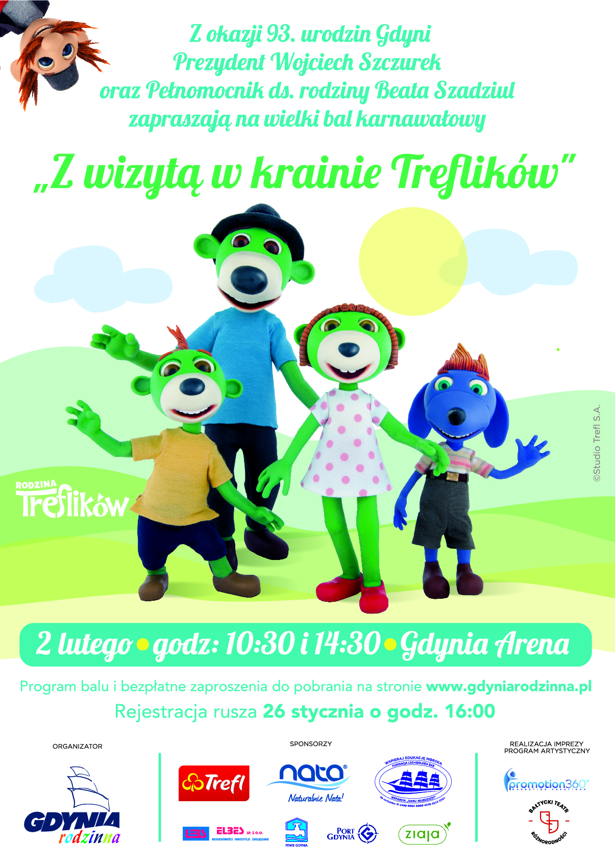W ubiegłym roku najmłodsi bawili się u króla i królowej, teraz przeniosą się do krainy Treflików. 2 lutego w hali Gdynia Arena odbędzie się wielki bal karnawałowy dla dzieci, na który zapraszają prezydent Wojciech Szczurek oraz pełnomocnik prezydenta ds. rodziny Beata Szadziul. Wszystko z okazji 93. urodzin miasta. Na małych uczestników będą czekały m.in. warsztaty z robotyki, minikino czy pokazy edukacyjne, ale przede wszystkim animacje z rodziną Treflików w roli głównej. To już 7. edycja karnawałowego balu. Tym razem jego motywem przewodnim będzie wizyta w krainie Treflików. Oprócz animacji nawiązujących do tematyki balu, na uczestników będą czekały różnorodne zajęcia kreatywne, m.in.: przyrodnicze pokazy edukacyjne i warsztaty decoupage, na których dzieci nauczą się tworzenia misiów, breloczków, komiksów, jojo czy zdobienia poszewek. Nie zabraknie też dmuchanych zjeżdżalni, minikina, fotobudki, malowania twarzy, zabaw sportowych oraz sali gier i puzzli dla całej rodziny. To jednak nie jedyne atrakcje. Będą również warsztaty z robotyki, animacje i konkursy prowadzone przez Bałtycki Teatr Różnorodności czy wspólne oglądanie bajek i spotkanie z rodziną Treflików. Szykuje się także niespodzianka. – W Gdyni powstało studio animacji, w którym nagrywane są Trefliki. Mało kto wie, że to właśnie nasze miasto jest tym miejscem, gdzie narodziła się ta fantastyczna polska bajka. Chcemy o tym opowiedzieć i stąd motyw przewodni balu. Będziemy nie tylko oglądać filmy, ale też zobaczymy, jak się robi filmy animacyjne – mówi Beata Szadziul, pełnomocnik prezydenta Gdyni ds. rodziny. Impreza odbędzie się w sobotę, 2 lutego w hali widowiskowo-sportowej Gdynia Arena. Jest podzielona na dwie tury po to, żeby jak najwięcej dzieci mogło skorzystać z zabawy. Pierwsza tura rozpocznie się o godz. 10.30 i potrwa do godz. 12.30. Druga jest zaplanowana w godz. 14.30-16.30. Jeśli bal karnawałowy, to mali uczestnicy powinni przyjść na niego w różnego rodzaju kolorowych strojach. Ci, którzy nie zdążą przygotować przebrania przed imprezą, będą mogli skorzystać z wypożyczalni kostiumów, w której na miejscu będzie można wypożyczyć strój w promocyjnej cenie. Wstęp na bal jest bezpłatny, ale wymagana jest wcześniejsza rejestracja. Ruszy ona 26 stycznia o godz. 16.00 na stronie www.gdyniarodzinna.pl. Pierwszeństwo mają rodziny posiadające kartę Gdynia Rodzinna lub rodzinną Kartę Mieszkańca. Ze względu na komfort i bezpieczeństwo uczestników każdemu dziecku może towarzyszyć jeden opiekun. Na balu dzieci mogą przebywać wyłącznie pod opieką uprawnionych osób pełnoletnich. Ponadto mali uczestnicy otrzymają upominki, które długo będą im przypominały o tej niezwykłej zabawie. Organizatorem wydarzenia jest Miasto Gdynia. Partnerzy główni balu to: Trefl SA, Nata oraz Fundacja Lechosława Bar – Fundacja Wsparcia „Daru Młodzieży”. Partnerami są również: Port Gdynia, Elbes Sp. z o.o. oraz PEWIK GDYNIA Sp. z o.o., Ziaja oraz Kuźnia Talentów Centrum Wychowania przez Sztukę, Akademia Rękodzieła Deco Hobby, Galeria Malucha, Centrum Nauki Experyment, Lilki Szpilki, Edurobot, Siostry Szyją, Sztuka Kuka, Centrum Tańca Szczepan, Zoltar, Sala Zabaw Filiko, Asseco Arka Gdynia, Michał Chojnowski – Light Studio, Młodzieżowy Dom Kultury Gdynia. Opublikowano: 22.01.2019 08:00 Autor: Magdalena Czernek (magdalena.czernek@gdynia.pl)