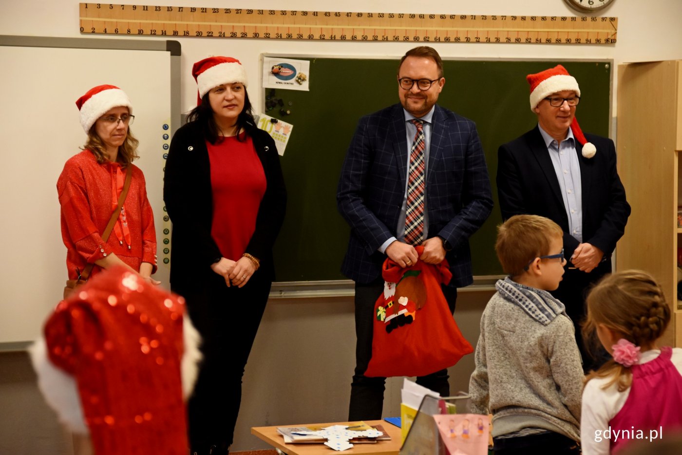 Mikołajki to czas obdarowywania bliskich drobnymi prezentami. To wyjątkowy dzień w roku, szczególnie dla najmłodszych. Niezwykłą niespodziankę sprawili uczniom Szkoły Podstawowej nr 33 na Oksywiu członkowie Rady Rodziców, dyrekcja i wiceprezydent Gdyni Marek Łucyk. Podczas pierwszych, piątkowych lekcji odwiedzali oni kolejne klasy by wręczyć dzieciom słodkie upominki. Mikołajkowa niespodzianka w Szkole Podstawowej nr 33 im. Obrońców Kępy Oksywskiej została zainicjowana przez Wiktorię Janas i Kingę Czarnecką, przewodniczącą i wiceprzewodniczącą szkolnej Rady Rodziców. We wręczanie słodkich podarków uczniom zaangażowali się dyrektor placówki – Bogusław Moszczyński oraz gość specjalny – Marek Łucyk, wiceprezydent Gdyni ds. rozwoju. Uczniowie radośnie reagowali na wręczane im słodkości. Niektóre klasy wykonywały wcześniej przygotowane, świąteczne piosenki, a reprezentujący św. Mikołaja obdarowujący skrupulatnie sprawdzali czy aby na pewno wszyscy byli w tym roku grzeczni. Galeria zdjęć Pobierz galerię Mikołajkowa niespodzianka w Szkole Podstawowej nr 33. Słodkości wręczał wiceprezydent Gdyni - Marek Łucyk / fot. Paweł Kukla Pobierz zdjęcie Mikołajkowa niespodzianka w Szkole Podstawowej nr 33 / fot. Paweł Kukla Pobierz zdjęcie Mikołajkowa niespodzianka w Szkole Podstawowej nr 33. Słodkości wręczali przedstawiciele Rady Rodziców oraz dyrektor szkoły - Bogusław Moszczyński / fot. Paweł Kukla Pobierz zdjęcie Mikołajkowa niespodzianka w Szkole Podstawowej nr 33. Słodkości wręczał wiceprezydent Gdyni - Marek Łucyk / fot. Paweł Kukla Pobierz zdjęcie Mikołajkowa niespodzianka w Szkole Podstawowej nr 33. Słodkości wręczał wiceprezydent Gdyni - Marek Łucyk / fot. Paweł Kukla Pobierz zdjęcie Mikołajkowa niespodzianka w Szkole Podstawowej nr 33 / fot. Paweł Kukla Pobierz zdjęcie Mikołajkowa niespodzianka w Szkole Podstawowej nr 33. Słodkości wręczali Marek Łucyk, wiceprezydent Gdyni, przedstawiciele Rady Rodziców oraz dyrektor szkoły - Bogusław Moszczyński / fot. Paweł Kukla Pobierz zdjęcie Mikołajkowa niespodzianka w Szkole Podstawowej nr 33. Słodkości wręczał wiceprezydent Gdyni - Marek Łucyk / fot. Paweł Kukla Pobierz zdjęcie Mikołajkowa niespodzianka w Szkole Podstawowej nr 33. Słodkości wręczali Marek Łucyk, wiceprezydent Gdyni, przedstawiciele Rady Rodziców oraz dyrektor szkoły - Bogusław Moszczyński / fot. Paweł Kukla Pobierz zdjęcie Mikołajkowa niespodzianka w Szkole Podstawowej nr 33. Słodkości wręczali Marek Łucyk, wiceprezydent Gdyni, przedstawiciele Rady Rodziców oraz dyrektor szkoły - Bogusław Moszczyński / fot. Paweł Kukla Pobierz zdjęcie Mikołajkowa niespodzianka w Szkole Podstawowej nr 33. Słodkości wręczał wiceprezydent Gdyni - Marek Łucyk / fot. Paweł Kukla Pobierz zdjęcie Mikołajkowa niespodzianka w Szkole Podstawowej nr 33. Słodkości wręczał wiceprezydent Gdyni - Marek Łucyk / fot. Paweł Kukla Pobierz zdjęcie Warunki pobierania Wszelkie prawa do zdjęć lub grafik prezentowanych w ramach portalu, należą do Prowadzącego portal lub do podmiotów z nim współpracujących i podlegają ochronie prawnej. Prowadzący portal zezwala na kopiowanie i przedstawianie utworów jedynie w celach niekomercyjnych oraz pod warunkiem zachowania go w oryginalnej postaci i zachowaniem kontekstu tematu, do którego zostało wykorzystaneprzez redakcję gdynia.pl. Opublikowane materiały powinny zawsze zawierać źródło, czyli adres strony www.gdynia.pl. Na publikowanie utworów w innych celach wymagana jest zgoda właściciela strony czyli Prowadzącego portal. Opublikowano: 06.12.2019 12:46 Autor: Redakcja portalu Gdynia.pl (wydz.komsp@gdynia.pl) Zmodyfikowano: 06.12.2019 13:36 Zmodyfikował: Redakcja portalu Gdynia.pl