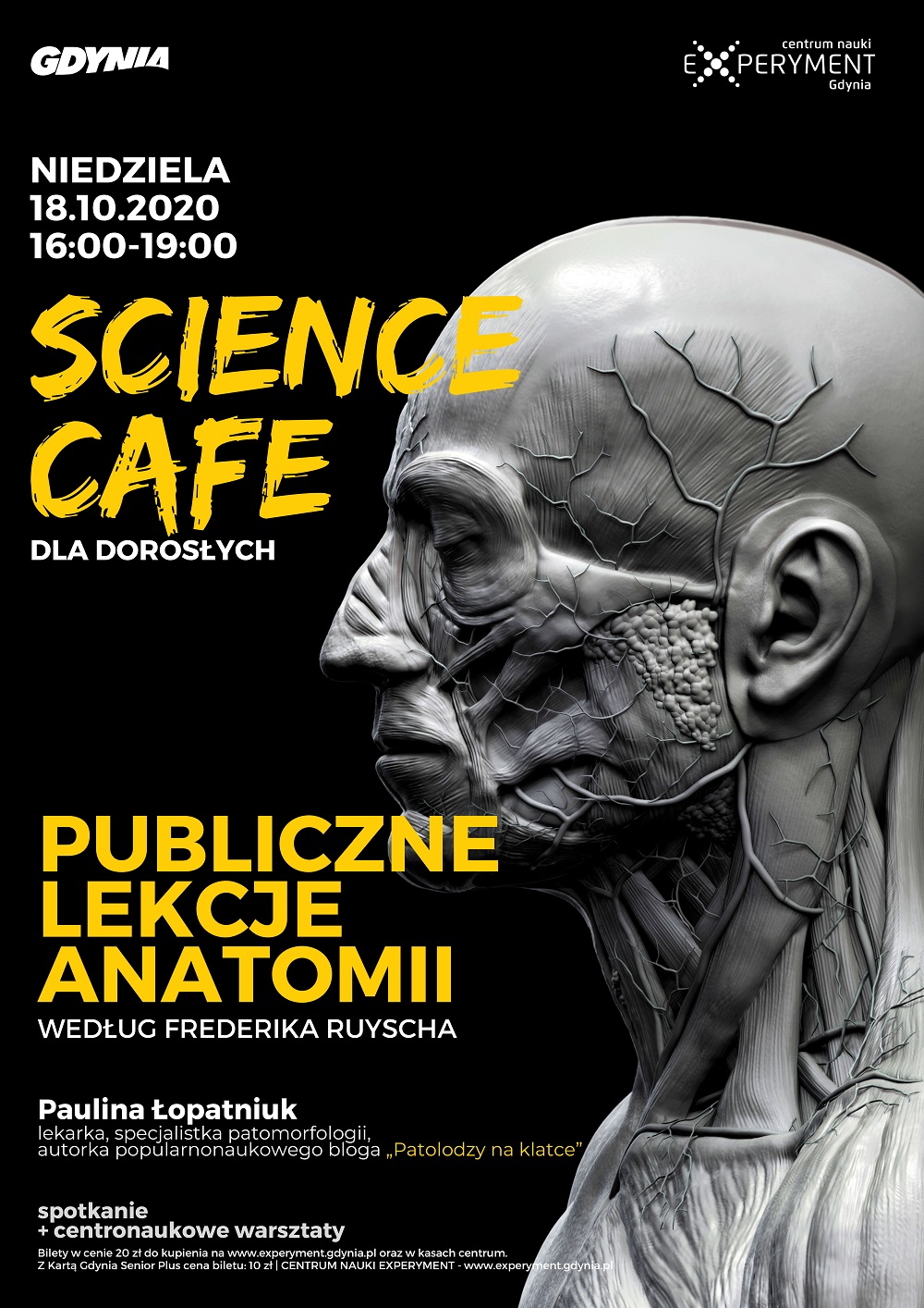 Znacie blog „Patolodzy na klatce”? Na pewno – to przecież jeden z najpopularniejszych blogów popularnonaukowych w Polsce i nie bez powodu. Jego autorka, patomorfolożka Paulina Łopatniuk, ceniona popularyzatorka nauki, przybliża na nim zawsze fascynujące, a czasami budzące grozę tajniki swojej dyscypliny. Artykuły ilustrowane są fotografiami opisywanych fenomenów. I to właśnie o tej estetycznej części historii patomorfologii Paulina Łopatniuk opowie podczas październikowego SCIENCE CAFE!Fotografie „Patologów na klatce” budzą zaciekawienie, ale też niekiedy wywołują niechęć i ściągają oskarżenia o epatowanie turpizmem. I rzeczywiście trudno może czasem dociec, gdzie przebiega granica pomiędzy edukacją a estetyką. Nic w tym jednak nowego – zaledwie parę stuleci temu modną rozrywką w europejskich miastach stały się publiczne sekcje zwłok, kolekcje anatomiczne przyciągały gości, kupców i sponsorów. Badacze i kolekcjonerzy zaś skrzętnie ukrywali przed sobą sekrety pieczołowicie i w tajemnicy przygotowywanych płynów konserwujących, pozwalających utrwalić anatomiczne kurioza. Jednym z najsłynniejszych pośród nich był Frederik Ruysch, znany nie tylko ze swych liczących tysiące preparatów zbiorów, ale też z takich – naukowych wbrew pozorom – przedsięwzięć, jak nadmuchiwanie niczym baloników naczyń limfatycznych. Poznajcie Frederika Ruyscha i jego fantastyczne krajobrazy.Prowadzenie: Paulina Łopatniuk – gdańszczanka, lekarka, specjalistka patomorfologii. Autorka popularnonaukowego bloga „Patolodzy na klatce”, za który otrzymała główną nagrodę w kategorii Media w XIV edycji konkursu Popularyzator Nauki organizowanego przez Polską Agencję Prasową (serwis Nauka w Polsce) oraz Ministerstwo Nauki i Szkolnictwa Wyższego. W kwietniu 2019 r. ukazała się jej pierwsza książka, „Patolodzy. Panie doktorze, czy to rak?”, już niedługo ukaże się kolejna, „Na własnej skórze”.Kawę i ciasto zapewnia Parkowa Bistro.wiek: 18+termin: 18 października 2020, godz. 16:00bilety: 20/10 zł Do pobrania Plakat SCIENCE CAFE. Publiczne lekcje anatomii według Frederika Ruyscha. Wykład Pauliny Łopatniuk w Centrum Nauki EXPERYMENT jpg433kb Opublikowano: 05.10.2020 15:46 Autor: Jakub Łasek (j.lasek@experyment.gdynia.pl) Zmodyfikowano: 14.10.2020 10:04 Zmodyfikował: Agnieszka Janowicz