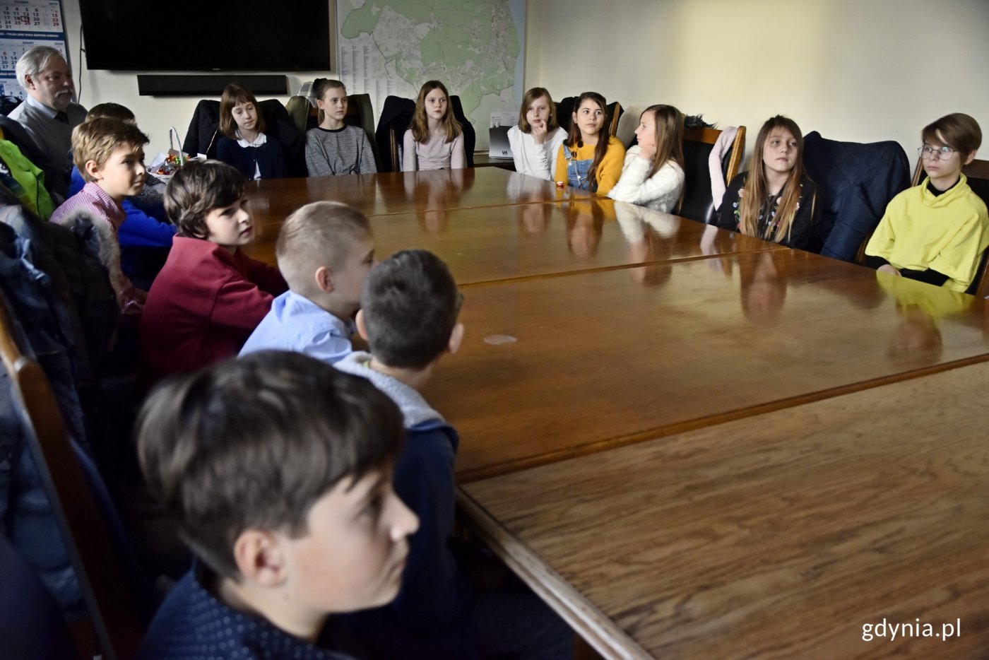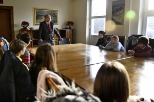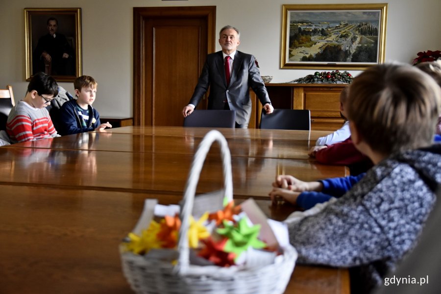 W czwartek, 19 grudnia, niezwykli goście odwiedzili Urząd Miasta Gdyni i prezydenta Wojciecha Szczurka. Uczniowie Szkoły Podstawowej nr 18 w Gdyni im. Kornela Makuszyńskiego podczas spotkania mieli okazję zapytać o interesujące ich kwestie. Uczniowie z SP nr 18 mieli okazję dowiedzieć się od prezydenta m.in. o tym jak wygląda jego dzień pracy, co lubi robić w czasie wolnym oraz jakie książki lubi czytać. Spotkanie było też okazją do złożenia uczniom świątecznych życzeń. Galeria zdjęć Pobierz galerię Prezydent Gdyni Wojciech Szczurek spotkał się z uczniami Szkoły Podstawowej nr 18 w Gdyni // fot. Paweł Kukla Pobierz zdjęcie Prezydent Gdyni Wojciech Szczurek spotkał się z uczniami Szkoły Podstawowej nr 18 w Gdyni // fot. Paweł Kukla Pobierz zdjęcie Prezydent Gdyni Wojciech Szczurek spotkał się z uczniami Szkoły Podstawowej nr 18 w Gdyni // fot. Paweł Kukla Pobierz zdjęcie Prezydent Gdyni Wojciech Szczurek spotkał się z uczniami Szkoły Podstawowej nr 18 w Gdyni // fot. Paweł Kukla Pobierz zdjęcie Prezydent Gdyni Wojciech Szczurek spotkał się z uczniami Szkoły Podstawowej nr 18 w Gdyni // fot. Paweł Kukla Pobierz zdjęcie Prezydent Gdyni Wojciech Szczurek spotkał się z uczniami Szkoły Podstawowej nr 18 w Gdyni // fot. Paweł Kukla Pobierz zdjęcie Prezydent Gdyni Wojciech Szczurek spotkał się z uczniami Szkoły Podstawowej nr 18 w Gdyni // fot. Paweł Kukla Pobierz zdjęcie Prezydent Gdyni Wojciech Szczurek spotkał się z uczniami Szkoły Podstawowej nr 18 w Gdyni // fot. Paweł Kukla Pobierz zdjęcie Prezydent Gdyni Wojciech Szczurek spotkał się z uczniami Szkoły Podstawowej nr 18 w Gdyni // fot. Paweł Kukla Pobierz zdjęcie Prezydent Gdyni Wojciech Szczurek spotkał się z uczniami Szkoły Podstawowej nr 18 w Gdyni // fot. Paweł Kukla Pobierz zdjęcie Prezydent Gdyni Wojciech Szczurek spotkał się z uczniami Szkoły Podstawowej nr 18 w Gdyni // fot. Paweł Kukla Pobierz zdjęcie Warunki pobierania Wszelkie prawa do zdjęć lub grafik prezentowanych w ramach portalu, należą do Prowadzącego portal lub do podmiotów z nim współpracujących i podlegają ochronie prawnej. Prowadzący portal zezwala na kopiowanie i przedstawianie utworów jedynie w celach niekomercyjnych oraz pod warunkiem zachowania go w oryginalnej postaci i zachowaniem kontekstu tematu, do którego zostało wykorzystaneprzez redakcję gdynia.pl. Opublikowane materiały powinny zawsze zawierać źródło, czyli adres strony www.gdynia.pl. Na publikowanie utworów w innych celach wymagana jest zgoda właściciela strony czyli Prowadzącego portal. Opublikowano: 20.12.2019 10:23 Autor: Paweł Kukla (p.kukla@gdynia.pl) Zmodyfikowano: 20.12.2019 10:29 Zmodyfikował: Paweł Kukla