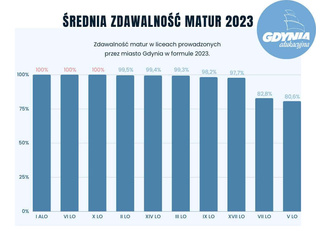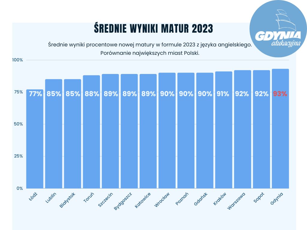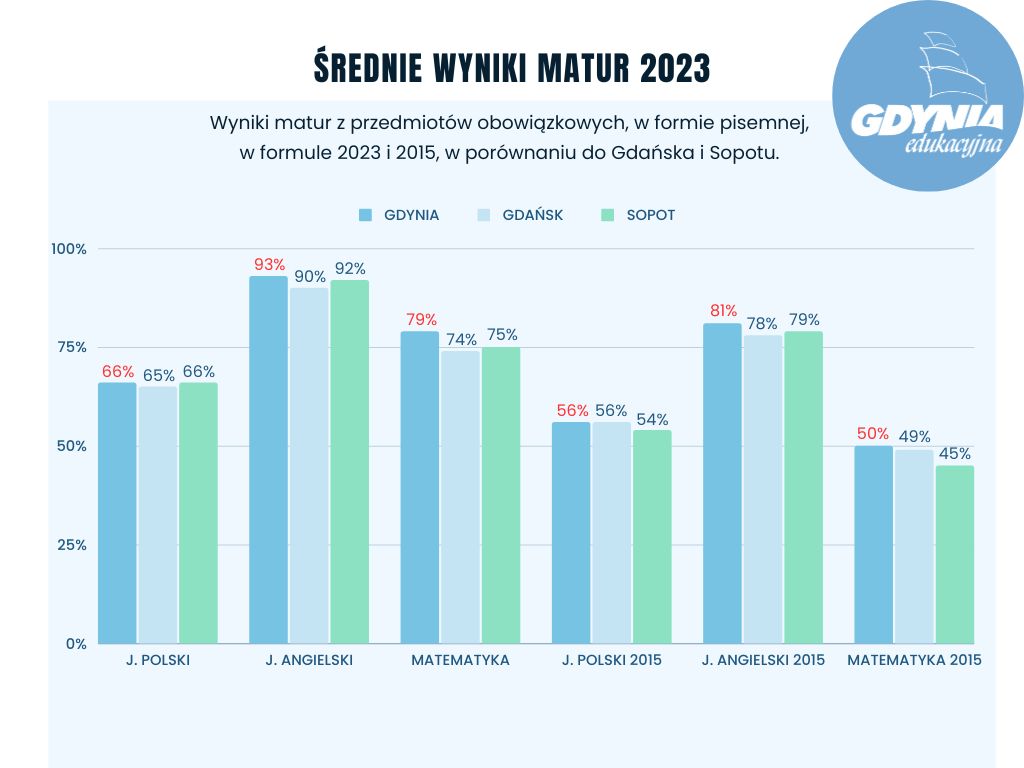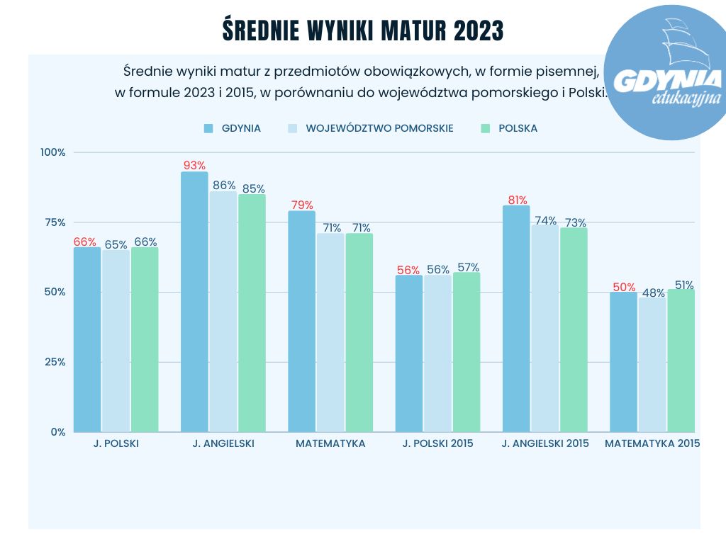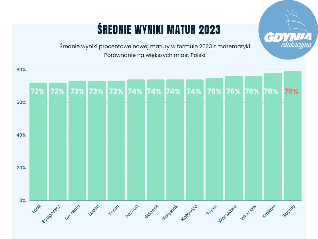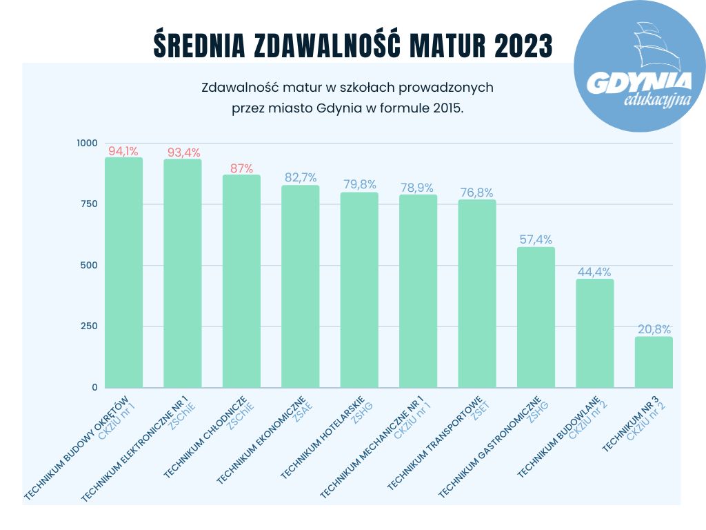 Tegoroczne grono maturzystów liczy w Gdyni ponad 2400 osób. Poznali oni wyniki swoich matur. Zdawalność w Gdyni tradycyjnie jest bardzo dobra, ale zdawalność nowej matury przeszła najśmielsze oczekiwania. 1665 licealistów z 16 szkół i 740 uczniów z 12 techników w całej Gdyni poznało właśnie wyniki swoich matur. Wyniki – zdawalność, ale i średnia uzyskanych punktów plasują Gdynię w czołówce trójmiejskich miast. Jednocześnie wyniki po raz kolejny lokują gdyńskie szkoły powyżej średniej krajowej i wojewódzkiej. A to nie koniec dobrych informacji. - To historyczny moment, kiedy po raz pierwszy średnie wyniki matury przekroczyły poziom największych polskich miast jak Warszawa czy Kraków. Mówimy tu o nowej formule, w której gdyńscy maturzyści poradzili sobie świetnie, udowadniając, że nasze licea mają najwyższy poziom w Trójmieście, województwie a także na tle kraju. Ten sukces to efekt nie tylko ciężkiej pracy uczniów, ale także wielkiego zaangażowania nauczycieli, dyrektorów oraz pracowników obsługi i administracji. To także efekty przygotowań ze strony samorządu i zmian przeprowadzanych przez miasto Gdynia w ostatnich kilku latach. Dzisiaj widzimy jej pierwsze skutki – mówi Bartosz Bartoszewicz, wiceprezydent Gdyni ds. jakości życia. Te pierwsze skutki to również rezultat konsekwentnie wprowadzanych od 2016 r. zmian w obszarze rozwoju szkolnictwa zawodowego. Najpierw przemyślane i długofalowe działania w zakresie reorganizacji sieci szkół „dały początek” wielopoziomowemu kształceniu w centrach szkolnictwa zawodowego w Gdyni. Potem przyszła kolej na sfinansowanie, za ponad 70 mln zł pochodzących ze środków unijnych, rozbudowy budynków i sal oraz budowy nowych warsztatów w pięciu gdyńskich szkołach zawodowych, zakup nowoczesnego wyposażenia do nich oraz ogromne możliwości poszerzenia praktycznej wiedzy uczniów w postaci staży zawodowych czy wysokospecjalistycznych kursów i szkoleń branżowych.W 2023 roku uczniowie liceów po raz pierwszy zdawali maturę w nowej formule. Dodatkowo po pandemicznej przerwie musieli podejść do matury ustnej z języka polskiego i obcego nowożytnego. Test pisali natomiast z języka polskiego, matematyki, języka obcego nowożytnego. Wszyscy absolwenci mieli również obowiązek przystąpić do egzaminu maturalnego z jednego przedmiotu dodatkowego na poziomie rozszerzonym. Każdy absolwent mógł również przystąpić do egzaminu dodatkowego z maksymalnie pięciu kolejnych przedmiotów dodatkowych. Abiturient - niezależnie czy zdawał według nowej, czy według starej formuły - musiał uzyskać minimum 30 procent punktów z egzaminów obowiązkowych. W przypadku przedmiotu do wyboru nie było wymaganego progu zaliczeniowego, wynik z takiego egzaminu pomaga natomiast otrzymać dodatkowe punkty przy rekrutacji na studia. Bardzo dobra zdawalność w Gdyni na tle województwa i krajuDo egzaminu maturalnego z wszystkich przedmiotów obowiązkowych w województwie pomorskim przystąpiło 15 915 tegorocznych absolwentów szkół ponadpodstawowych (czteroletnich liceów ogólnokształcących), ponadgimnazjalnych (czteroletnich techników, szkół artystycznych oraz branżowych szkół II stopnia) oraz 16 absolwentów – obywateli Ukrainy. Egzamin w liceach opierał się na nowej formule z 2023 roku, natomiast w technikach, szkołach artystycznych i branżowych II stopnia na formule z 2015. Egzamin według wymogów matury 2015 zdawali też pojedynczy licealiści. W kraju egzamin maturalny zdało 84,4 procent wszystkich maturzystów, w liceach zdawalność wyniosła 91,1 procent, natomiast w formule 2015, do której podchodzili absolwenci techników, zdało 74,6 procent maturzystów. Zdawalność w województwie wyniosła 83,5 procent, 91,5 procent to zdawalność w liceach, 72,5 procent to zdawalność w technikach. W Gdyni zdawalność w liceach wyniosła aż 97 procent, w technikach 75 procent. Okręgowa Komisja Egzaminacyjna nie podała średniej skumulowanej zdawalności dla obu typu matur. Świetne wyniki nowej matury 2023 na tle innych miastPrzez ostatnie 4 lata wszyscy uczniowie liceów przygotowywali się do zdawania matury w nowej formule 2023. I tutaj wyniki w porównaniu do największych miast Polski z przedmiotów obowiązkowych wyglądają w Gdyni imponująco. Z matematyki i angielskiego mamy bowiem najlepsze wyniki z wszystkich 14 największych miast w kraju! Małopolska chwali się najlepszymi wynikami zdawalności w Polsce to jednak Gdynia wyprzedziła Kraków o 1 punkt procentowy. Jeżeli chodzi o średni wynik matury z matematyki, miasta mają odpowiednio 79 i 78 procent. Trzecie miejsce ex aequo zajmują Warszawa i Wrocław ze średnim wynikiem 76 procent. W przypadku angielskiego średni wynik Gdyni to 93 procent, drugie miejsce ze średnim wynikiem 92 procent mają Sopot i Warszawa, na trzecim jest Kraków z wynikiem 91 procent. Średnie wyniki z języka polskiego (66 procent) plasują Gdynię na piątym miejscu w kraju, najlepsze Katowice mają 72 procent a kolejny jest Wrocław z wynikiem 71 procent.Gdynia przoduje w TrójmieścieWśród trzech sąsiednich miast zdecydowanie najlepsze wyniki są w Gdyni. Zdawalność w gdyńskich liceach wynosi 97 procent, w Gdańsku to 92 procent, a w Sopocie to 95 procent. W technikach w Gdyni i Sopocie zdawalność wyniosła równo po 75 procent, natomiast w Gdańsku – 71 procent. Świetnie Gdynia wypadła także w rozbiciu na poszczególne przedmioty. W formule 2023 z pisemnego języka polskiego gdyńscy i sopoccy maturzyści uzyskali po równo 66 procent, natomiast gdańscy 65 procent. Z angielskiego najlepszy średni wynik uzyskali uczniowie z Gdyni 93 procent, z Sopotu 92 procent a z Gdańska 90 procent. Z matematyki wyniki dla gdynian to średnio 79 procent, tymczasem w Sopocie to 75 procent a Gdańsku 74 procent. W formule 2015 maturzyści z Gdyni uzyskali lepsze wyniki z angielskiego i matematyki od kol