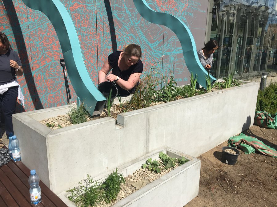 Przy nowoczesnej i szklanej bryle InfoBoxu powstał wyjątkowy ogród deszczowy. Historia jego powstania jest długa i pełna nagłych zwrotów akcji. W głowach zespołu Centrum Informacji i Edukacji Ekologicznej w Gdańsku (CIEE), zrodził się pomysł, by stworzyć pokazowy ogród deszczowy w eksponowanej przestrzeni miasta, przy okazji w praktyczny sposób zaszczepić tę ideę wśród innych. Wieloletnia owocna współpraca CIEE z Urzędem Miasta Gdyni sprawiła, że to Gdynia stała się naturalnym Partnerem w realizacji tego przedsięwzięcia. Pierwotny zamysł sprowadzał się do zaaranżowania ogrodu deszczowego w niewielkiej skrzyni, jednak potencjał tego pomysłu trafił na bardzo kreatywny "grunt". Niepozorny projekt ogrodu przeszedł metamorfozę dzięki współpracy przyrodników, urzędu, artystów (plastyków i grafików), ogrodników ale także przedsiębiorców. Grafika: Ada KulasekDzięki zaangażowaniu wielu osób, zarówno mieszkańcy Gdyni jak i turyści mogą podziwiać barwny - modelowy ogród, zasilany deszczem padającym na dach budynku InfoBox. Wyjątkowość ogrodu i jego lokalizacyjne "osadzenie" podkreśla mapa Gdyni z 1931 r. wyeksponowana na ścianie budynku. Spusty rynnowe dodają ogrodowi artystycznej finezji.Powstanie ogrodu deszczowego realizowanego przez Wydział Środowiska UM Gdyni było wspierane także przez Biuro Ogrodnika Miasta Gdyni, InfoBox, Zarząd Dróg i Zieleni w Gdyni oraz Biuro Plastyka Miasta Gdyni. Ekspert Elżbieta Urbaniak, współpracująca z Fundacją Sendzimira przy tworzeniu ogrodów deszczowych, czuwała nad stroną merytoryczną projektu. Całość koordynowało, we współpracy z Wydziałem Środowiska UM Gdyni, Centrum Informacji i Edukacji Ekologicznej w Gdańsku i choć projekt stał się sporym wyzwaniem to jesteśmy przekonani, że było warto.Co ważne ogród powstał podczas praktycznego warsztatu przy udziale mieszkańców. Uczestnicy, pod okiem specjalisty, poznali jak mądrze gospodarować wodą opadową w przestrzeniach miejskich, jak ją konstruktywnie wykorzystać w ogrodzie "na miarę miasta", bloku, domu czy altany oraz jak dobrać odpowiednie rośliny by wspomogły nas w zagospodarowaniu i oczyszczeniu nadmiaru wody. Mamy nadzieję, że ogród będzie samowystarczalnym bytem zasilanym dzięki siłom natury. Jako przykład konstruktywnego wykorzystania i zagospodarowania deszczówki, będzie służył nam ludziom ale i przyrodzie. I przede wszystkim liczymy, że stanie się inspiracja dla innych.Relacja z powstawania Gdyńskiego ogrodu deszczowego w Radiu Gdańsk: MAGAZYN EKOLOGICZY. Galeria zdjęć Pobierz galerię Gdyński ogród deszczowy Pobierz zdjęcie Gdyński ogród deszczowy Pobierz zdjęcie Gdyński ogród deszczowy Pobierz zdjęcie Gdyński ogród deszczowy Pobierz zdjęcie Gdyński ogród deszczowy Pobierz zdjęcie Gdyński ogród deszczowy Pobierz zdjęcie Gdyński ogród deszczowy Pobierz zdjęcie Gdyński ogród deszczowy Pobierz zdjęcie Gdyński ogród deszczowy Pobierz zdjęcie Gdyński ogród deszczowy Pobierz zdjęcie Gdyński ogród deszczowy Pobierz zdjęcie Gdyński ogród deszczowy Pobierz zdjęcie Gdyński ogród deszczowy Pobierz zdjęcie Gdyński ogród deszczowy Pobierz zdjęcie Gdyński ogród deszczowy Pobierz zdjęcie Gdyński ogród deszczowy Pobierz zdjęcie Warunki pobierania Wszelkie prawa do zdjęć lub grafik prezentowanych w ramach portalu, należą do Prowadzącego portal lub do podmiotów z nim współpracujących i podlegają ochronie prawnej. Prowadzący portal zezwala na kopiowanie i przedstawianie utworów jedynie w celach niekomercyjnych oraz pod warunkiem zachowania go w oryginalnej postaci i zachowaniem kontekstu tematu, do którego zostało wykorzystaneprzez redakcję gdynia.pl. Opublikowane materiały powinny zawsze zawierać źródło, czyli adres strony www.gdynia.pl. Na publikowanie utworów w innych celach wymagana jest zgoda właściciela strony czyli Prowadzącego portal. Opublikowano: 26.02.2018 22:43 Autor: Agata Lipińska (a.lipinska@gdynia.pl) Zmodyfikowano: 16.05.2025 09:57 Zmodyfikował: Paweł Jałoszewski
