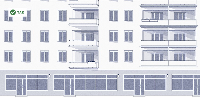 Stolarka okienna i drzwiowa to najważniejszy element dekoracji architektonicznej budynku. Projekt kolorystyki musi być spójny materiałowo i kolorystycznie dla całej nieruchomości. Dopilnuj by okna w budynku były wykonane z jednego materiału i w jednym kolorze. Zadbaj o spójną formę stylistyczną okien w różnym rozmiarze. Otwory okienne jednego wymiaru muszą mieć równe podziały szprosami o spójnej szerokości i kierunku ułożenia. W przypadku kiedy pierwotny projekt budynku zakładał różne wielkości otworów okiennych na różnych kondygnacjach, nie zmieniaj ich. W przypadku budynków mieszkalnych z parterami, z kilkoma lokalami usługowymi, zadbaj by ich witryny były jednej wysokości, szerokości oraz zawierały takie same podziały szprosów. Stylistyka, rytm dekoracji, materiał i kolor drzwi głównego wejścia oraz innych drzwi do budynku powinien być taki sam dla jednego budynku. Kolor stolarki okiennej i drzwiowej powinien korespondować z innymi elementami dekoracji architektonicznej np. obróbkami blacharskimi. Kolorystyka balkonów, tarasów i loggii musi być tożsama z dominującą kolorystyką elewacji. Ewentualne decyzje związane z zabudową balkonów powinny dotyczyć wszystkich balkonów. W przypadku decyzji o zabudowaniu części balkonów, dopuszcza się zabudowanie części balkonów lecz pod warunkiem, że projekt kompozycji tych balkonów będzie uwzględniał rytmy pionowych lub poziomych linii kompozycyjnych. Wersja poprawna / wersja niepoprawna (przesuń suwak, aby porównać) Do pobrania Od strony ulicy. Gdyński poradnik dobrych praktyk remontowych pdf2333kb Opublikowano: 07.06.2023 10:24 Autor: Paweł Jałoszewski (pawel.jaloszewski@gdynia.pl) Zmodyfikowano: 12.06.2023 15:51 Zmodyfikował: Paweł Jałoszewski