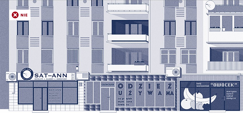 Szyldy i reklamy regulowane są w miejscowych planach zagospodarowania przestrzennego lub w tzw. uchwałach krajobrazowych. W zależności od sytuacji wymagają zgłoszenia lub pozwolenia na budowę. Szyld to wizytówka lokalu usługowego i budynku, w którym się mieści. Kształt, wielkość, kolorystyka i forma szyldów i reklam oraz miejsce ich umieszczenia na budynku muszą być dostosowane do architektury budynku. Kształt, wielkość, kolorystykę i formę szyldów i reklam oraz miejsce ich umieszczenia na budynku dostosuj do architektury budynku i jego funkcji. Nie montuj szyldów i tablic reklamowych na budynku w sposób zakrywający lub naruszający istotne elementy wystroju architektonicznego elewacji lub w sposób zakłócający naturalne podziały i rytmy architektoniczne. Dopuszcza się po jednym szyldzie na lokal usługowy w parterze. Szyldy lokalizuj poniżej pierwszego piętra, na jednej wysokości i w zbliżonej wielkości, w obrębie budynku. W budynku, w którym prowadzona jest liczna działalność usługowa zastosuj małe szyldy wizytówkowe zgrupowane i uporządkowane przy wejściu do budynku. Nie umieszczaj tablic reklamowych w formie reklamy wyklejanej w świetle drzwi i witryn lokalu usługowego, z wyłączeniem haseł reklamowych w formie liter bez tła, o wysokości nie większej niż 15 cm i zajmującej maksymalnie 25% witryny sklepowej; nie używaj kolorów jaskrawych. Wersja poprawna / wersja niepoprawna (przesuń suwak, aby porównać) Do pobrania Od strony ulicy. Gdyński poradnik dobrych praktyk remontowych pdf2333kb Opublikowano: 07.06.2023 12:00 Autor: Paweł Jałoszewski (pawel.jaloszewski@gdynia.pl)