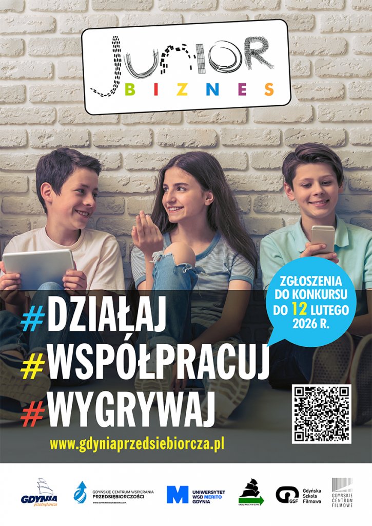 Celem konkursu Junior Biznes jest motywowanie młodzieży do działania na rzecz społeczności lokalnej, kształtowanie umiejętności pracy w grupie, zapoznanie z podstawowymi zagadnieniami z dziedziny ekonomii, pobudzanie kreatywności i innowacyjności oraz kształtowanie postaw przedsiębiorczych w praktyce. W ramach kategorii „Junior Biznes TEEN” uczestnicy stworzą, przedstawią i zrealizują projekt inicjatywy przedsiębiorczej, możliwej do zrealizowania w lokalnej społeczności rozumianej jako szkoła, dzielnica, miasto etc. Nagrodą w tej kategorii są środki finansowe na realizację ww. pomysłu oraz udział w warsztacie kompetencyjnym z wykorzystaniem metody Assessment Center.W ramach kategorii „Junior Biznes START” uczestnicy stworzą film pt.: „Zawód przyszłości”. Wygraną w tej kategorii są środki na dofinansowanie nagród dla uczniów w formie zakupu karnetów wstępu do obiektów rekreacyjno-kulturalnych w Gdyni dla każdego ze zwycięskich zespołów oraz prezentacja nagrodzonych filmów w Gdyńskim Centrum Filmowym.W obu kategoriach oceniana będzie m.in. oryginalność i innowacyjność pomysłu oraz spójność koncepcji.Uczestnicy będą mieli okazję przygotować się do realizacji swoich projektów i wziąć udział (w zależności od kategorii konkursu) w bezpłatnych warsztatach z zarządzania projektami, wystąpień publicznych, twórczego rozwiązywania problemów oraz warsztatach filmowych.Więcej informacji na stronie gdyniaprzedsiebiorcza.pl. Kontakt Gdyńskie Centrum Wspierania Przedsiębiorczości monika.antkowiak@gdynia.pl 58 527 34 34 Opublikowano: 17.02.2026 14:59 Autor: Paweł Jałoszewski (pawel.jaloszewski@gdynia.pl) Zmodyfikowano: 17.02.2026 15:02 Zmodyfikował: Paweł Jałoszewski