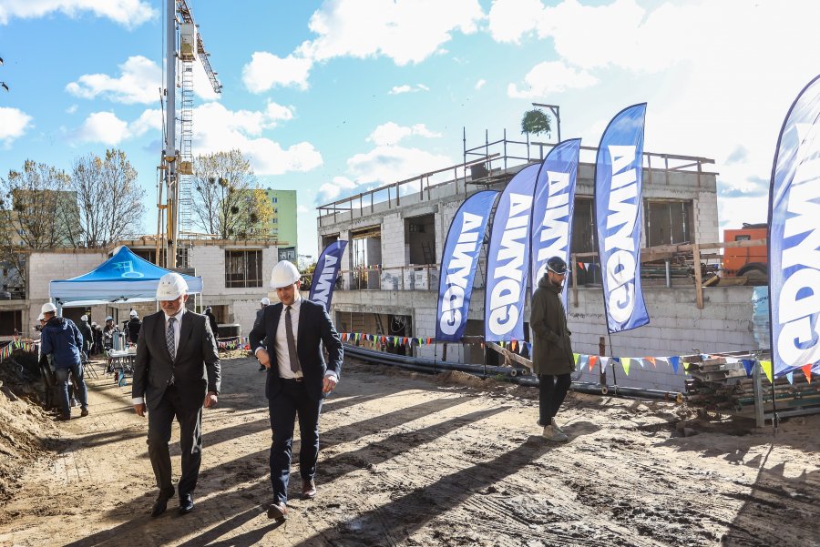 Dokładnie pięć miesięcy po wmurowaniu na budowie Przystani Widna 2A kamienia węgielnego (18 maja br.) na budynku Domu Sąsiedzkiego zawisła wiecha. To znak, że osiągnął on swój najwyższy punkt. Prace na terenie inwestycji trwają od marca, zakończyć się mają w przyszłym roku. Wiecha to, w wymiarze materialnym, wianek zawieszany przez wykonawcą w momencie ukończenia ważnego etapu inwestycji. W wymiarze symbolicznym to podziękowanie od inwestora dla wykonawcy za wykonane prace i sposób na zapewnienie powodzenia wszystkim zaangażowanym w przedsięwzięciem. Uroczystość zawieszenia wiechy to także okazja do spotkania i rozmowy wykonawców z inwestorem, na co w trakcie prowadzenia budowy nie zawsze jest czas. W poniedziałek, 18 października, taką okazję mieli inwestor (gdyński samorząd) i wykonawca (firmy Budrem Rybak) Przystani Widna 2A powstającej w objętej Gminnym Programem Rewitalizacji zachodniej części dawnej dzielnicy Witomino-Radiostacja. O godz. 11 rozpoczęła się tu uroczystość zawieszenia wiechy na budynku Domu Sąsiedzkiego (będzie tworzył Przystań wraz z siedzibą Biblioteki). - Na placu budowy Przystani Widna 2A spotykamy się po raz drugi w dość krótkim czasie: 18 maja wmurowywaliśmy tu kamień węgielny. Dziś widzimy dwa budynki, które za kilka miesięcy wypełnią się energią osób odwiedzających czy to Dom Sąsiedzki, czy to filię Biblioteki Gdynia – mówi Wojciech Szczurek, prezydent Gdyni. – Otwarcie Przystani Widna 2A to moment, na który wszyscy czekamy. Będzie nie tylko spełnieniem oczekiwań mieszkańców, ale też tchnie zupełnie nowe życie w Witomino. Wiem, że już dzisiaj lokalna społeczność wymienia się konkretnymi pomysłami na to, jakie zajęcia czy aktywności powinny mieć miejsce w Przystani; proponuje tematy zajęć, które mieszkańcy poprowadzić dla innych. Bardzo mnie to cieszy, bo taka jest idea sieci placówek powstających w całej Gdyni: samorząd stwarza w nich warunki do tego, by mieszkańcy realizowali swoje pasje, podejmowali działania na rzecz najbliższego sąsiedztwa, tworzyli nowe wspólnoty z poczuciem, że są u siebie. Przystań Widna 2A będzie trzecią działającą na gdyńskich obszarach rewitalizacji. – Przystań Śmidowicza 49 na Oksywiu i Przystań Opata Hackiego 33 na Chyloni to miejsca, w których można nie tylko ciekawie spędzić czas, ale także wziąć udział w projektach przygotowanych specjalnie dla mieszkańców obszarów rewitalizacji – zauważa Michał Guć, wiceprezydent Gdyni ds. innowacji. – Podobnie będzie na Witominie. Budowa infrastruktury takiej jak Przystań Widna 2A jest w procesie rewitalizacji ważna, ale nie będzie spełniała swojego zadania jeśli nie będzie w odpowiedni sposób wykorzystywana. Bardzo nam zależy, by Przystanie były centrami społecznej zmiany, w których mieszkańcy – pod okiem specjalistów podnoszą kompetencje, zdobywają nowe umiejętności, zmieniają swoje życie. Idea Przystani narodziła się podczas prac nas Gminnym Programem Rewitalizacji Miasta Gdyni. Szybko okazało się, że podobne miejsca będą powstawał w całej Gdyni. Dziś sieć to trzy działające centra sąsiedzkie i pięć kolejnych, nad którymi trwają prace – jedno po przebudowie i remoncie, a cztery jako zupełnie nowe ośrodki sąsiedzkich aktywności. - Myśląc o kolejnych Przystaniach bierzemy pod uwagę przede wszystkim specyfikę dzielnicy, w której mają działać. Łączymy funkcje i określamy ofertę tak, by w jak największym stopniu odpowiadała potrzebom lokalnej społeczności – podkreśla Bartosz Bartoszewicz, wiceprezydent Gdyni ds. jakości życia. – Przystanie współtworzą m.in. Biblioteka Gdynia, Gdyńskie Centrum Zdrowia, Gdyńskie Centrum Sportu, Gdyńskie Centrum Kontaktu, Miejski Ośrodek Pomocy Społecznej, Centrum Aktywności Seniora. To całe spektrum aktywności, w które można się włączyć i inicjować, ale też dostęp do usług społecznych w miejscu zamieszkania. Krótko mówiąc coś, czego wcześniej na taką skalę i w takiej formie w gdyńskich dzielnicach nie było. Witomińska Przystań Widna 2A to dwa dwukondygnacyjne budynki w samym centrum dzielnicy (skrzyżowanie ul. Chwarznieńskiej i Rolniczej), w których znajdą się Centrum Sąsiedzkie oraz filia Biblioteki Gdynia. - Nowa filia Biblioteki Gdynia przy ulicy Widnej stworzona została zgodnie z hasłem: „Przyjdź, zobacz, zostań” – podkreśla Natalia Gromow, Dyrektorka Miejskiej Biblioteki Publicznej w Gdyni. – Jesteśmy bardzo wdzięczni za możliwość zaprojektowania nowej przestrzeni od samego początku i przystosowania jej do potrzeb mieszkańców dzielnicy Witomino. Ci, którzy regularnie odwiedzają nasze filie, wiedzą o tym, że biblioteki to nie tylko dom dla bogatego księgozbioru i miejsce na naukę, ale także miejsce spotkań. W Przystani znajdzie się więc miejsce na spotkania autorskie, warsztaty i aktywności rozwijające rozmaite zainteresowania. Jak zawsze zadbaliśmy o to, by najmłodsi czytelnicy mieli swój kącik zabaw. Ale oczywiście oferta będzie uwzględniała wszystkie grupy wiekowe. Warto podkreślić, że tutaj skorzystamy z darmowego internetu, wypożyczymy gry planszowe czy audiobooki. Kompleks Przystani Widna 2A wyróżni jasna elewacja osłonięta od strony skrzyżowania drewnianą, ażurową kurtyną, oraz duże okna. Łączna powierzchnia użytkowa obu budynków to blisko 900 m kw. Na mieszkańców będą tam czekać m.in. wielofunkcyjna sala sąsiedzka, kuchnia przeznaczona na warsztaty kulinarne, miejsca spotkań, sale do ćwiczeń oraz bogaty księgozbiór Biblioteki Gdynia.Na terenie między budynkami pojawi się dużo zieleni. Będą miejsca do siedzenia wraz z dodatkową małą architekturą oraz tryskacze posadzkowe.W budynku Domu Sąsiedzkiego trwają roboty murowe, rozpoczęto prace branży elektrycznej; w budynku Biblioteki Gdynia prowadzone są prace przy ścianach nadziem