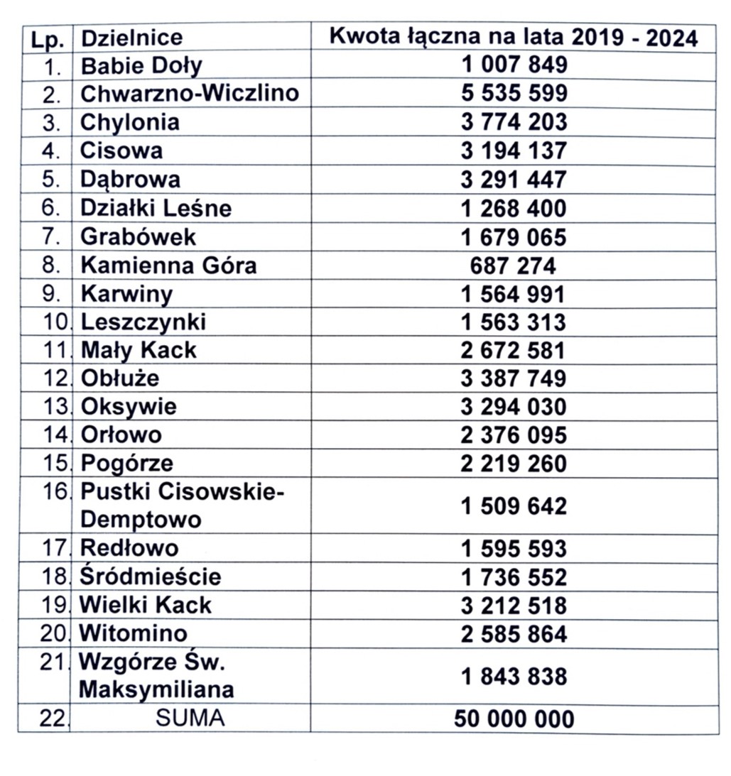 Spotkanie radnych Gdyni Północ z Marekim Łucykiem, wiceprezydentem Gdyni ds. rozwoju to kolejny etap wizji lokalnych w gdyńskich dzielnicach, tym razem dotyczyło stworzenia listy działań w ramach budżetu inwestycyjno-remontowego Rad Dzielnic w aktualnej kadencji na lata 2019 – 2024. W poniedziałkowym spotkaniu wzięli udział przedstawiciele Zarządów Rad Dzielnic oraz radni tzw. Gdyni Północ. Pogórze reprezentował przewodniczący Dariusz Sawicki, wiceprzewodnicząca Irena Kubiszyn i Agnieszka Pstrągowska, Obłuże – przewodniczący Wojciech Lipiński, wiceprzewodnicząca Anna Czeran i wiceprzewodniczący Jan Gumiński oraz radni m.in. inicjator spotkania pan Karol Dawidowski, Oksywia – przewodniczący Andrzej Pęksyk i Babich Dołów – wiceprzewodniczący Sylwester Trzebiński. Wsparli ich radni miejscy pani Ewa Sierżęga, Ireneusz Trojanowicz, Krzysztof Chachulski oraz Jakub Ubych, dodatkowo jak pełnomocnik Prezydenta ds. dzielnic. - Cieszę się, że spotykamy się obszarowo z reprezentacjami dzielnic z północnej strony Gdyni. Jest to doskonała okazja do rozmów, konsultacji i wymiany informacji. Tworzenie list inwestycyjnych na nadchodzące lata to nie lada wyzwanie dla Rad Dzielnic, mam nadzieję że wybrane inwestycje przyniosą oczekiwane rozwiązania i podniosą komfort życia mieszkańców - podkreśla Marek Łucyk, wiceprezydent Gdyni ds. rozwoju. Korzystając z możliwości dyskusji z wiceprezydentem ds. rozwoju Markiem Łucykiem radni podjęli także temat dotyczący rozwoju infrastruktury drogowej oraz rozwiązań komunikacyjnych w tej części miasta. Aktualna lista procedowanych i realizowanych inwestycji miejskich w pionie rozwoju to prawie dwieście na terenie wszystkich dwudziestu jeden dzielnic. - Takie spotkania są bardzo istotne, zarówno dla radnych jak i władz Miasta. Poruszamy na nich ważne tematy dla mieszkańców, wysłuchujemy i wspólnie rozmawiamy, a owoce dyskusji widzimy w postaci realizowanych przedsięwzięć i inwestycji. Nowa kadencja rad dzielnic to duże zmiany, nowi ludzie, nowe pomysły, do tego dochodzi także reorganizacja w Urzędzie Miasta i powołanie Biura ds. Dzielnic, to zmiany które są ważne dla nas wszystkich. Mam satysfakcję, że na Północy zaczyna się dziać – mówi Elżbieta Sierżęga, radna Miasta. Dużym zainteresowaniem wśród obecnych cieszył się temat nowo powstającej witryny internetowej dedykowanej gdyńskim dzielnicom. Poza kanałem w mediach społecznościowych Dzielnice #wgdyni, powstaje strona internetowa zintegrowana z serwisem Gdynia.pl, a każda Rada Dzielnic znajdzie tam swoje miejsce. - Wprowadzamy innowacje w zakresie komunikacji. Chcemy systemowo informować o tym co dzieje się w dzielnicach, nie tylko pod kątem wydarzeń, ale przede wszystkim inwestycji i planowanych rozwiązań zwiększających bezpieczeństwo i standard życia w dzielnicach. Robimy wszystko, aby nowa witryna została przekazana do końca roku – mówi Jakub Ubych, radny Miasta i pełnomocnik Prezydenta ds. dzielnic. W tym roku nowo wybrane Rady Dzielnic, otrzymały do wydania rekordową kwotę 50 milionów złotych na realizację inwestycji, które zostaną wskazane przez radnych poszczególnych dzielnic. Jest to najwyższa suma w historii Gdyni i jedna z najwyższych w Polsce. Dzielnice otrzymały wskazane fundusze na podstawie wyliczeń liczby zameldowanych mieszkańców oraz powierzchni dzielnicy, bez terenów leśnych i portu. Na jesiennych sesjach w dzielnicach radni, uchwałą wskazują maksymalnie 10 inwestycji, które będą realizowane w ramach przyznanych środków.Spotkania w kolejnych rejonach Gdyni są planowane i będą odbywały się cyklicznie. Będzie to czas podsumowujący podjęte działania, a także możliwość dyskusji o zamierzeniach na przyszłość. Galeria zdjęć Pobierz galerię Spotkanie radnych Gdyni Północ z wiceprezydentem ds. rozwoju Markiem Łucykiem, fot. Dzielnice #wgdyni Pobierz zdjęcie Spotkanie radnych Gdyni Północ z wiceprezydentem ds. rozwoju Markiem Łucykiem, fot. Dzielnice #wgdyni Pobierz zdjęcie Spotkanie radnych Gdyni Północ z wiceprezydentem ds. rozwoju Markiem Łucykiem, fot. Dzielnice #wgdyni Pobierz zdjęcie Spotkanie radnych Gdyni Północ z wiceprezydentem ds. rozwoju Markiem Łucykiem, fot. Dzielnice #wgdyni Pobierz zdjęcie Spotkanie radnych Gdyni Północ z wiceprezydentem ds. rozwoju Markiem Łucykiem, fot. Dzielnice #wgdyni Pobierz zdjęcie Spotkanie radnych Gdyni Północ z wiceprezydentem ds. rozwoju Markiem Łucykiem, fot. Dzielnice #wgdyni Pobierz zdjęcie Warunki pobierania Wszelkie prawa do zdjęć lub grafik prezentowanych w ramach portalu, należą do Prowadzącego portal lub do podmiotów z nim współpracujących i podlegają ochronie prawnej. Prowadzący portal zezwala na kopiowanie i przedstawianie utworów jedynie w celach niekomercyjnych oraz pod warunkiem zachowania go w oryginalnej postaci i zachowaniem kontekstu tematu, do którego zostało wykorzystaneprzez redakcję gdynia.pl. Opublikowane materiały powinny zawsze zawierać źródło, czyli adres strony www.gdynia.pl. Na publikowanie utworów w innych celach wymagana jest zgoda właściciela strony czyli Prowadzącego portal. Opublikowano: 16.10.2019 12:01 Autor: Dorota Matejczyk (dorota.matejczyk@gdynia.pl) Zmodyfikowano: 02.01.2020 09:19 Zmodyfikował: Dorota Matejczyk-Waletko