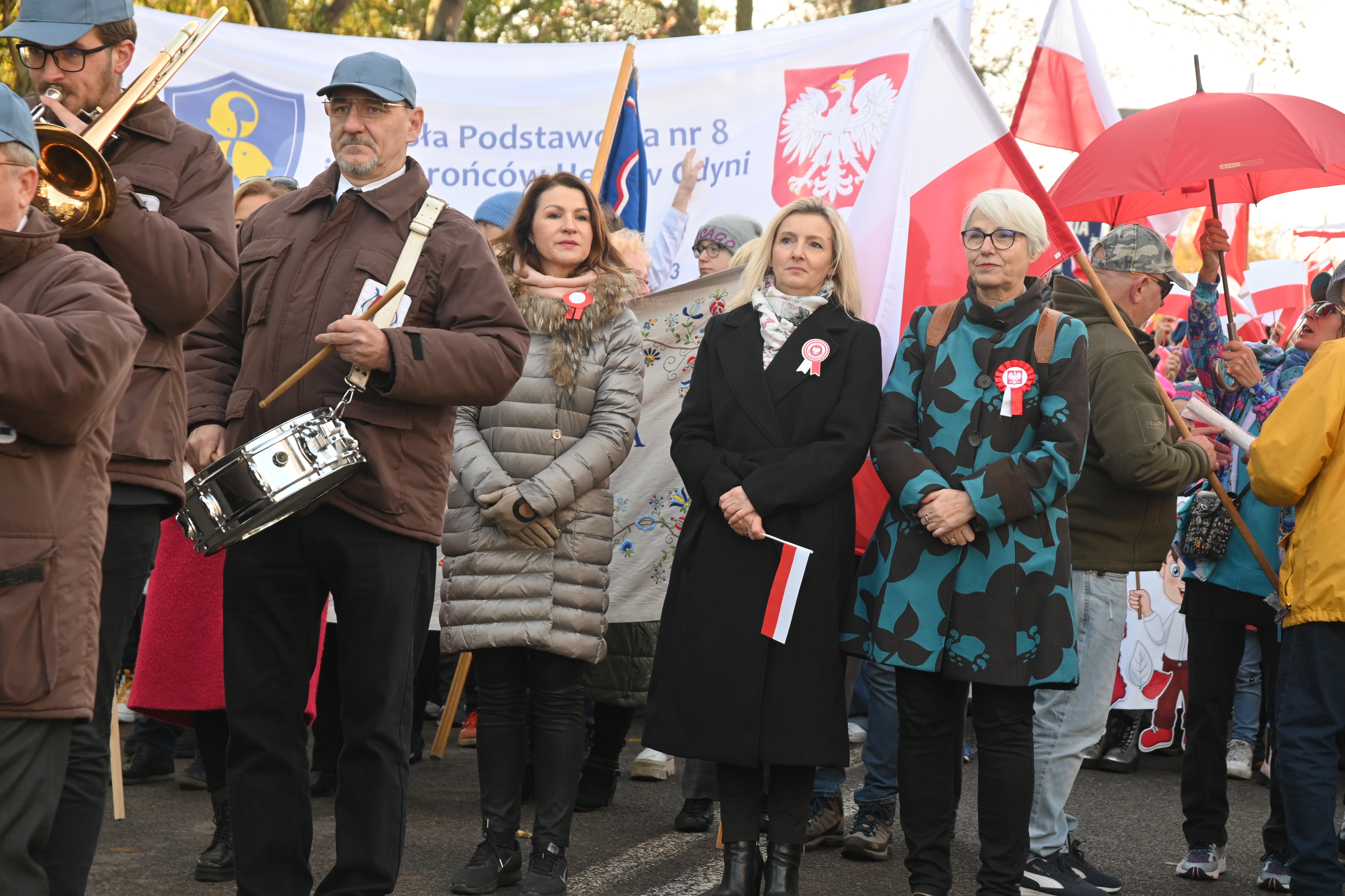 10 listopada ulicami Orłowa po raz kolejny przeszła Dzielnicowa Parada Niepodległości. Inicjatywa, która zrodziła się kilka lat temu łączy uczniów orłowskich szkół, seniorów i mieszkańców. Inicjatorem wydarzenia jest społeczność szkolna, uczniowie i grono pedagogiczne Szkoły Podstawowej nr 8. W paradzie wzięli udział również uczniowie pozostałych orłowskich placówek oświatowych – m.in. Szkoły Podstawowej nr 11, Liceum Ogólnokształcącego IX, Technikum Ekonomicznego i Zespołu Szkół Plastycznych. Niepodległość świętowali również seniorzy z orłowskiego Klubu Seniora oraz przewodnicząca Rady Miasta Gdyni Joanna Zielińska.Niepodległość świętowała przewodnicząca Rady Miasta Joanna Zielińska (pierwsza od lewej) Agnieszka Zegarlicka, wicedyrektor SP nr 8 oraz Joanna Zarzycka, dyrektor SP nr 11// fot. Dominika Sobiech Narodowe Święto Niepodległości to ważne wydarzenie. W Gdyni odchodzimy je radośnie, a biało-czerwone barwy pokazują jak ważna jest to dla nas rocznica – mówiła przewodnicząca Rady Miasta Gdyni Joanna Zielińska. Po uroczystym przemarszu, przy Domku Żeromskiego, odbył się program artystyczny przygotowany przez uczniów szkół uczestniczących w wydarzeniu. Wspólna parada dla wszystkich gdynian startuje w sobotę, 11 listopada o godz. 12.00 z al. Marsz. Piłsudskiego (okolice pomnika marszałka Józefa Piłsudskiego w Gdyni). Galeria zdjęć Pobierz galerię W paradzie wzięli udział również uczniowie orłowskich szkół // fot. Dominika Sobiech Pobierz zdjęcie Niepodległość świętowali również przedstawiciele orłowskiego Klubu Seniora // fot. Dominika Sobiech Pobierz zdjęcie 10 listopada po raz kolejny przez Orłowo przeszła Dzielnicowa Parada Niepodległości // fot. Dominika Sobiech Pobierz zdjęcie W paradzie wzięli udział również uczniowie orłowskich szkół – m.in. SP nr 11, IX LO, Technikum Ekonomicznego i Zespołu Szkół Plastycznych fot. Dominika Sobiech Pobierz zdjęcie W paradzie wzięli udział również uczniowie orłowskich szkół – m.in. SP nr 11, IX LO, Technikum Ekonomicznego i Zespołu Szkół Plastycznych fot. Dominika Sobiech Pobierz zdjęcie Warunki pobierania Wszelkie prawa do zdjęć lub grafik prezentowanych w ramach portalu, należą do Prowadzącego portal lub do podmiotów z nim współpracujących i podlegają ochronie prawnej. Prowadzący portal zezwala na kopiowanie i przedstawianie utworów jedynie w celach niekomercyjnych oraz pod warunkiem zachowania go w oryginalnej postaci i zachowaniem kontekstu tematu, do którego zostało wykorzystaneprzez redakcję gdynia.pl. Opublikowane materiały powinny zawsze zawierać źródło, czyli adres strony www.gdynia.pl. Na publikowanie utworów w innych celach wymagana jest zgoda właściciela strony czyli Prowadzącego portal. Opublikowano: 10.11.2023 12:30 Autor: Dominika Sobiech (dominika.sobiech@gdynia.pl) Zmodyfikowano: 10.11.2023 12:51 Zmodyfikował: Małgorzata Omachel - Kwidzińska