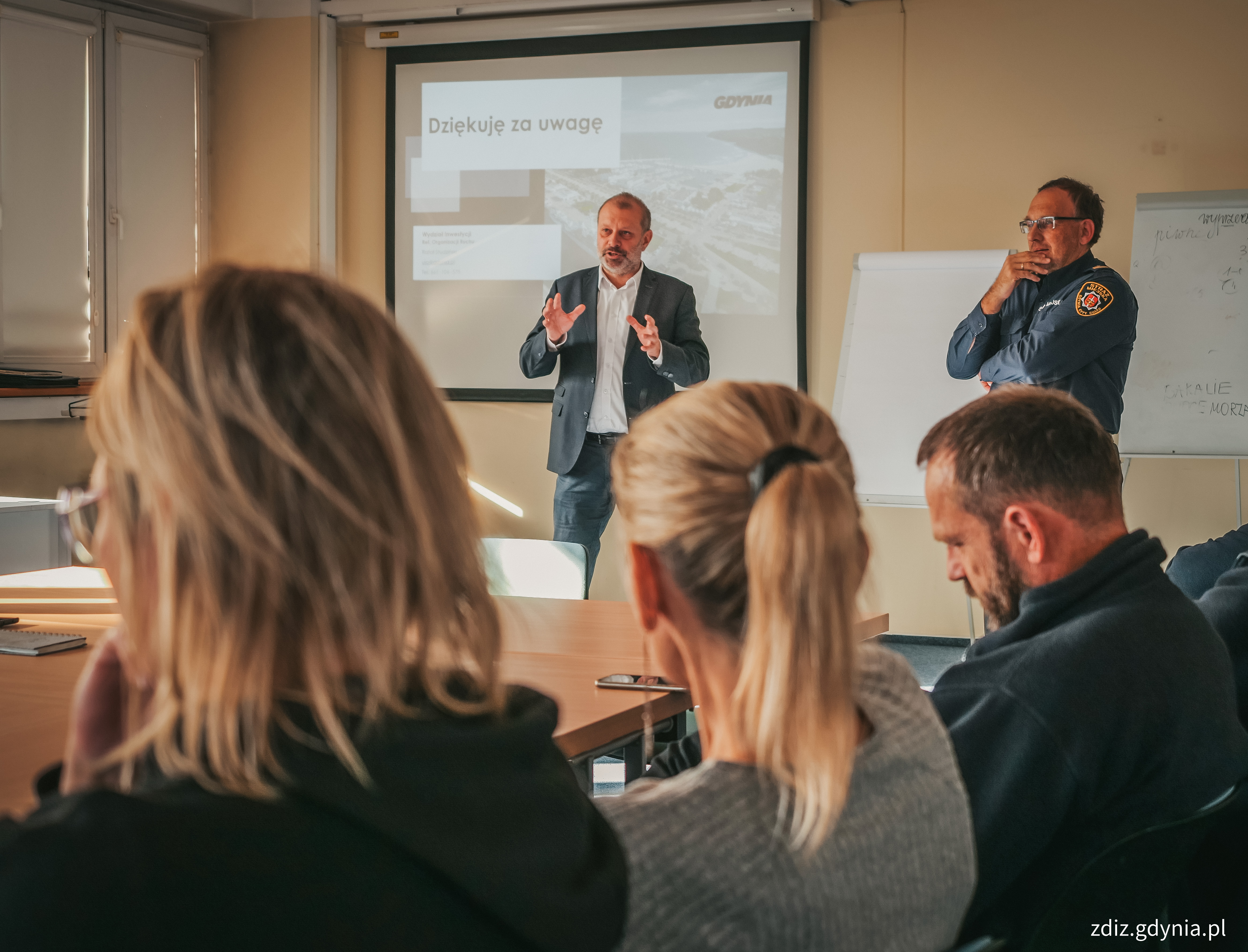 Kilka dni temu odbyło się spotkanie przedstawicieli Straży Miejskiej, Zarządu Dróg i Zieleni w Gdyni i Wydziału Inwestycji Urzędu Miasta. Jego celem było omówienie najczęstszych problemów występujących w mieście dotyczących zieleni czy oznakowania oraz jeszcze lepsza współpraca w zakresie utrzymania porządku i bezpieczeństwa w mieście. Celem spotkania, które odbyło się kilka dni temu była przede wszystkim wymiana spostrzeżeń, doświadczeń oraz wyjaśnienie zakresu kompetencji poszczególnych referatów i jednostek w zakresie realizowanych zadań. Wszystko po to, aby usprawnić współpracę na linii: jednostka – Straż Miejska. Takie spotkania będą kontynuowane – mówi Dawid Czechowski, zastępca dyrektora Zarządu Dróg i Zieleni w Gdyni. Od lewej: Dawid Czechowski, zastępca dyrektora Zarządu Dróg i Zieleni w Gdyni oraz Andrzej Bień komendant Straży Miejskiej (fot. M. Mielewski)Sytuacje zagrażające bezpieczeństwu czy naruszające porządek w mieście były omawiane na konkretnych przykładach, sprawy dotyczyły zarówno oznakowania, zieleni czy Stref Płatnego Parkowania. Udział w dyskusji wzięli pracownicy ZDiZ odpowiedzialni za poszczególne zakresy działań. W kontekście zieleni, głównym problemem, który był omawiany podczas spotkania była roślinność zasłaniająca oznakowanie. Podczas spotkania wyjaśniono również niejasności i ograniczenia przepisów dotyczące oznakowania dróg i miejsc postojowych. Innym poruszonym tematem było oczyszczanie miasta, głównie w kontekście nielegalnych wysypisk. Kierownictwo ZDiZ, Wydziału Inwestycji oraz SM spotyka się regularnie omawiając bieżące sprawy. Ponieważ część z nich można omówić i rozwiązać w trakcie bieżącej współpracy pomiędzy pracownikami naszych jednostek, warto, aby osoby, które taką kooperację mogą realizować poznały się, zrozumiały perspektywę widzenia problemu z innej strony i dzięki temu miały pełniejszy obraz sytuacji. Zaowocuje to lepszym dopasowaniem wdrożenia konkretnych rozwiązań dla danego problemu – mówi Andrzej Bień, komendant Straży Miejskiej w Gdyni. Opublikowano: 25.10.2024 09:06 Autor: Magdalena Wojtkiewicz (m.wojtkiewicz@zdiz.gdynia.pl) Zmodyfikowano: 25.10.2024 09:48 Zmodyfikował: Małgorzata Omachel - Kwidzińska