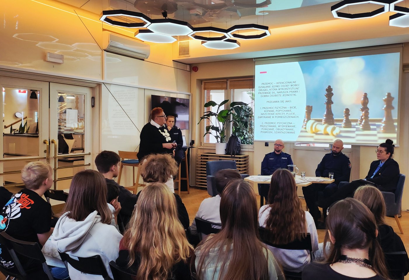 Za nami kolejna już z cyklu debata z mieszkańcami, podczas której gdyńska policja wraz zaproszonymi gośćmi poruszyła najważniejsze problemy społeczne. Celem spotkania jest rozpoznanie i określenie potrzeb związanych z zagrożeniami bezpieczeństwa mieszkańców. Tym razem, tematem przewodnim była mowa nienawiści i konsekwencje z tym związane. To bardzo ważne, żeby takie spotkania odbywały się w naszym mieście. Poprzednie, skierowane do seniorów, było poświęcone oszustwom na tak zwanego „wnuczka” i zgromadziło sporo słuchaczy, którzy mam nadzieję, przekazali dobre praktyki swoim znajomym i sąsiadom w podobnym wieku. Tym razem, na debatę oprócz dorosłych mieszkańców, zaproszono uczniów z gdyńskich podstawówek. W związku z rosnącym problemem, jakim jest hejt, jest to niezwykle istotne, żeby młodzi ludzie zdali sobie sprawę, że to nie tylko żarty w internecie, ale realny i groźny problem, który może przynieść poważne konsekwencje. – mówi wiceprezydentka Gdyni Oktawia Gorzeńska. Wydarzenie przygotowała Komenda Miejska Policji w Gdyni, której bardzo zależy, żeby młodzi mieszkańcy mogli wysłuchać ekspertów, poszerzyć swoją wiedzę i otrzymać odpowiedzi na nurtujące ich pytania. A przede wszystkim nie być obojętnym, bo jak podkreśla policja, milczenie sprawia, że sprawcy czują się bezkarni. Obecnie wszyscy jesteśmy świadkami rosnącej brutalizacji, wulgaryzacji w przestrzeni publicznej i internecie. Wymianę argumentów merytorycznych zastępuje fala hejtu, której celem jest personalny atak na wypowiadającego się człowieka. Nasz szczególny niepokój budzą rozmiary tego zjawiska wśród młodzieży, gdzie przemoc rówieśnicza i hejt potrafią doprowadzić do prawdziwej tragedii i podejmowania przez młodych ludzi prób samobójczych. – mówi asp. Krzysztof Czarnecki z zespołu prasowego Komendy Miejskiej Policji w Gdyni. I jak podkreśla, policja stara się temu przeciwdziałać poprzez edukację i organizację debat społecznych. Gdzie zapraszani przez nas prelegenci będą autorytetami w swoich dziedzinach, wypowiadają się między innymi na temat mowy nienawiści, hejtu i przestępstw motywowanych nienawiścią, a także odpowiedzialności prawnej nieletnich. – dodaje. Taka prewencja jest istotna zwłaszcza, że wiek kiedy dzieci zaczyna interesować mowa nienawiści jest coraz niższy. Wszechobecny hejt, przemoc i agresja, pojawia się już w najmłodszych klasach. Mówimy tutaj już o czwartej klasie, co jest niepokojącym zjawiskiem, ponieważ widzimy, że ten wiek się obniża. Dzieci hejtują siebie nie tylko na lekcjach, nie tylko w szkole, ale co najtrudniejsze i najgorsze w sieci. – mówi Anna Blokus-Szkodzińska, wiceprezes Fundacji Pozytywni.pl. Co jest poważnym problemem, ponieważ rodzice nie mają pojęcia, co ich dzieci robią internecie. My, dorośli, często nie mamy dostępu do grup, które młodzi tworzą i nie mamy pojęcia o tym, ile gier i zabaw jest w internecie, w czasie których hejtuje się dzieci wprost. – podkreśla. Debacie przyglądała się także Martyna Regent z Rady do spraw Mężczyzn. Staramy się jako Rada do spraw Mężczyzn walczyć z takim poglądem, że przemoc jest jakąś cechą przynależną do płci. Ta manosfera, która dominuje wśród młodzieży, jako zjawisko bardzo interesujące młodych mężczyzn, powinna zostać jakoś zdekonstruowana pod tym względem, że przemoc wobec słabszego nie wiąże się z pojęciem męstwa. Wręcz przeciwnie. Męstwo to jest przeciwstawienie się tej przemocy. Umiejętność, żeby oddzielić się od tej grupy, która jest sprawcą przemocy i stanąć po stronie słabszego. Wydaje się, że młodzież była zupełnie zaskoczona takim podejściem. Dla nich odwaga wiąże się trochę z popularnością też. Z tym, żeby robić rzeczy ryzykowne, dopuszczać się takich aktów, które będą w internecie cieszyć się popularnością, bez takiej oceny etycznej tego, czego się dokonuje. – mówi Martyna Regent, członkini Rady do spraw Mężczyzn. Podczas debaty przedstawiono również Krajową Mapę Zagrożeń Bezpieczeństwa, aplikację Moja Komenda i zaprezentowano program Dzielnicowy Bliżej Nas. Galeria zdjęć Pobierz galerię Debata o mowie nienawiści i hejcie w Konsulacie Kultury w Gdyni (fot. Dorota Patzer) Pobierz zdjęcie Debata o mowie nienawiści i hejcie w Konsulacie Kultury w Gdyni (fot. Dorota Patzer) Pobierz zdjęcie Warunki pobierania Wszelkie prawa do zdjęć lub grafik prezentowanych w ramach portalu, należą do Prowadzącego portal lub do podmiotów z nim współpracujących i podlegają ochronie prawnej. Prowadzący portal zezwala na kopiowanie i przedstawianie utworów jedynie w celach niekomercyjnych oraz pod warunkiem zachowania go w oryginalnej postaci i zachowaniem kontekstu tematu, do którego zostało wykorzystaneprzez redakcję gdynia.pl. Opublikowane materiały powinny zawsze zawierać źródło, czyli adres strony www.gdynia.pl. Na publikowanie utworów w innych celach wymagana jest zgoda właściciela strony czyli Prowadzącego portal. Opublikowano: 25.11.2025 11:55 Autor: Dorota Patzer (dorota.patzer@gdynia.pl) Zmodyfikowano: 25.11.2025 11:55 Zmodyfikował: Małgorzata Omachel - Kwidzińska