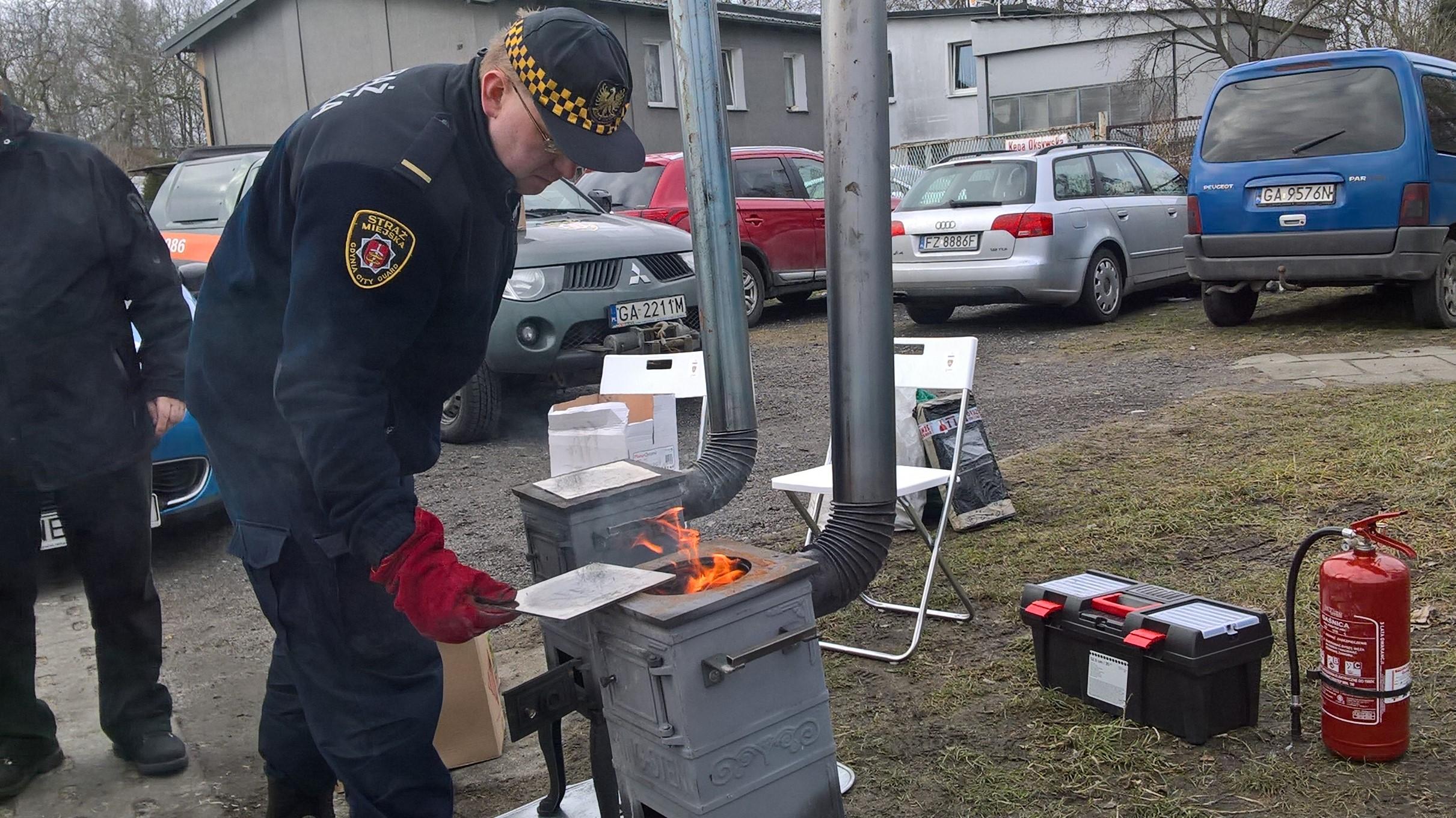 Najpierw do pieca włożyć węgiel czy rozpałkę? Wszelkie wątpliwości rozwiewa gdyńska Straż Miejska. Funkcjonariusze Ekopatrolu prowadzą pokazy odgórnej metody rozpalania w piecu. Jeden z nich odbył się w sobotę na Oksywiu. W ten sposób strażnicy uczą mieszkańców, jak bezpiecznie i ekologicznie korzystać z domowych palenisk. Kolejne warsztaty 3 lutego na Grabówku, a 7 lutego w Gdańsku.W sobotę, 27 stycznia, strażnicy miejscy z Ekopatrolu pokazywali mieszkańcom, jak prawidłowo palić w domowych paleniskach. Warsztaty z odgórnej metody rozpalania w piecu odbyły się na Oksywiu na placu przy skrzyżowaniu ul. Dickmana i Bosmańskiej. – Zainteresowanie mieszkańców jest spore. Przed rozpaleniem pieca trochę nas krytykują. Mówią, że to niemożliwe, że taka metoda się nie sprawdza. Od 40 lat palą klasycznie i jest dobrze. Wtedy zawsze mówię: "Proszę poczekać, zapraszamy na pokaz, zaraz udowodnię, że jest inaczej". I faktycznie już po rozpaleniu, kiedy widać różnicę w zadymieniu, wszyscy przyznają rację i mówią, że muszą tego spróbować u siebie w piecu – opowiada Leonard Wawrzyniak ze Straży Miejskiej w Gdyni. Takie praktyczne pokazy chwalą sami mieszkańcy. Przyznają, że warto przyjść i spojrzeć, jak to działa.– Wiedza jest potrzebna. Można zobaczyć, że jest z tego oszczędność. Gdyby tak tutaj postać trzy godziny, to nagle widać, że w jednym piecyku praktycznie już ognia nie ma, a w drugim cały czas się pali – mówi pan Dariusz, uczestnik pokazu.Inny mieszkaniec dodaje:– Trzeba zobaczyć proporcje. W ulotce ich nie ma, a tutaj można spojrzeć, ile węgla wsypać, a ile rozpałki i to wszystko wyjaśnia – mówi pan Robert, uczestnik pokazu.Kolejne pokazy zaplanowano 3 lutego na Grabówku. Pierwszy rozpocznie się o godz. 10.00 przy skrzyżowaniu ul. Marii Curie-Skłodowskiej i Mrongowiusza. Drugi – o godz. 12.00 przy skrzyżowaniu ul. Sambora i Łyskowskiego. Oba pokazy są organizowane we współpracy z dr Jarosławem Kłodzińskim, radnym Gdyni. Natomiast 7 lutego gdyńscy strażnicy miejscy pojadą na specjalny pokaz do Gdańska. Zostali zaproszeni na konferencję Wojewódzkiego Funduszu Ochrony Środowiska i Gospodarki Wodnej, która odbywa się pod hasłem „Ograniczenie niskiej emisji na Pomorzu”. Mają tam pokazać, jak można takie warsztaty przeprowadzać i dać przykład innym miastom, że to pomysł warty naśladowania.Strażnicy podczas pokazów korzystają z dwóch pieców typu koza. W jednym prezentują prawidłową metodę palenia, a w drugim niewłaściwą. W taki sposób uczestnicy mogą zobaczyć na własne oczy różnicę w spalaniu. Statystyki pokazują, że taka wiedza jest potrzebna. – W zeszłym roku Straż Miejska w Gdyni miała 1700 interwencji dotyczących niewłaściwego użytkowania pieców. Najczęściej zgłaszano, że sąsiad spala odpady, bo wydobywa się gęsty, ciemny dym. Na miejscu często okazywało się jednak, że tak wcale nie jest. Ludzie po prostu źle palili w piecach i w tym tkwił problem. Często wynikało to ze złej jakości paliwa, czy złego stanu instalacji. I dlatego, jako Straż Miejska, chcemy edukować mieszkańców, w jaki sposób palić, aby nie było to uciążliwe dla sąsiadów i nie zanieczyszczało atmosfery – mówi Leonard Wawrzyniak ze Straży Miejskiej w Gdyni.Bezpieczne i prawidłowe korzystanie z pieca, nie jest skomplikowane. To prosta metoda. – Polega ona na tym, że najpierw do pieca trafia paliwo, czyli węgiel, a potem na to kładzie się rozpałkę, czyli drewno. Rozpałka powoli spala paliwo, a dzięki temu proces palenia jest dłuższy, a mieszkaniec na tym oszczędza – tłumaczy Leonard Wawrzyniak ze Straży Miejskiej w Gdyni. Na ogół palimy odwrotnie, najpierw kładzie się podpałkę, a potem paliwo. Taki sposób jest nieekonomiczny. Powoduje dymienie, czym zanieczyszcza powietrze, a dodatkowo węgiel szybciej się wtedy wypala. – Przy metodzie palenia od góry, czyli gdy węgiel jest na dole, a rozpałka kładziona na niego, to spalanie jest czystsze, a przy okazji udaje się w ten sposób zaoszczędzić około 30 procent paliwa. Emisja spalin jest tu też mniejsza i to widać gołym okiem. Przy tej metodzie prawie nie widać, że coś z tego komina się wydobywa. Czyli i użytkownik pieca jest zadowolony, bo zużyje mniej węgla, ale też inni mieszkańcy na tym korzystają, bo mogą oddychać czystszym powietrzem – podkreśla Hanna Górecka-Banasik z samodzielnego Referatu ds. Energetyki. Poprawne palenie w piecu jest też ważne z innego powodu. Nieprawidłowe użytkowanie może prowadzić do wydzielania się śmiertelnie niebezpiecznego tlenku węgla. W poprzednim sezonie grzewczym strażacy mieli kilkadziesiąt interwencji związanych z czadem. Na szczęście nie było ofiar śmiertelnych, ale 16 osób zostało poszkodowanych. Galeria zdjęć Pobierz galerię Strażnicy miejscy pokazują i tłumaczą, jak prawidłowo i ekonomicznie palić w piecu // fot. materiały prasowe Pobierz zdjęcie Strażnicy miejscy pokazują i tłumaczą, jak prawidłowo i ekonomicznie palić w piecu // fot. materiały prasowe Pobierz zdjęcie Strażnicy miejscy pokazują i tłumaczą, jak prawidłowo i ekonomicznie palić w piecu // fot. materiały prasowe Pobierz zdjęcie Strażnicy miejscy pokazują i tłumaczą, jak prawidłowo i ekonomicznie palić w piecu // fot. materiały prasowe Pobierz zdjęcie Strażnicy miejscy pokazują i tłumaczą, jak prawidłowo i ekonomicznie palić w piecu // fot. materiały prasowe Pobierz zdjęcie Strażnicy miejscy pokazują i tłumaczą, jak prawidłowo i ekonomicznie palić w piecu // fot. materiały prasowe Pobierz zdjęcie Strażnicy miejscy pokazują i tłumaczą, jak prawidłowo i ekonomicznie palić w piecu // fot. materiały prasowe Pobierz zdjęcie Strażnicy miejscy pokazują i tłumaczą, jak prawidłowo i ekonomicznie palić w piecu // fot. Magdalena Czernek Pobierz zdjęcie Warun