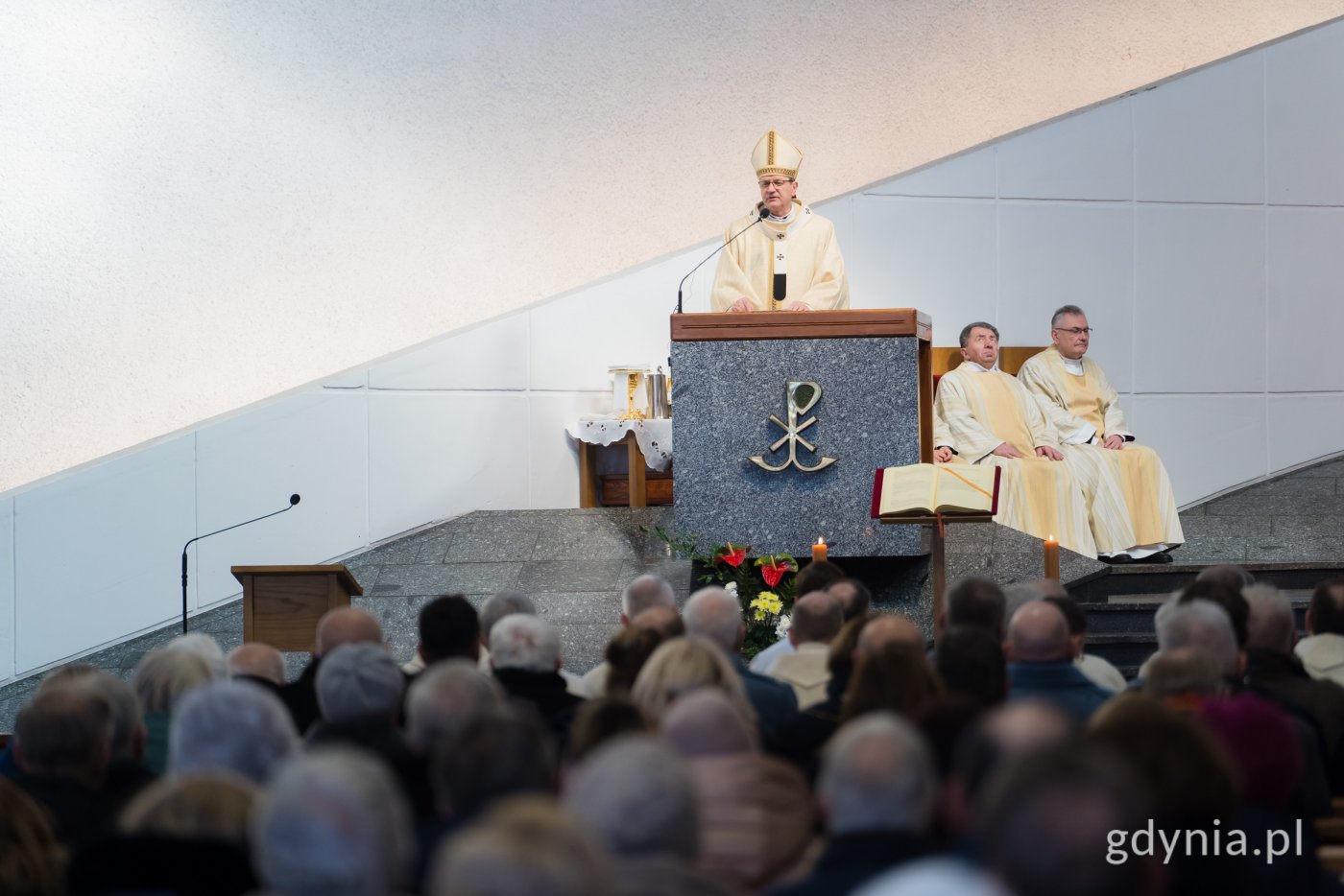 10 lutego 2026 roku Gdynia hucznie świętowała swoje 100-lecie. Urodzinowe wydarzenia mają różnorodny charakter – od oficjalnych uroczystości po wspólne koncerty, potańcówki czy też spotkania, bo hasłem przewodnim tegorocznych urodzin jest wspólnotowość. Zgodnie z tradycją Gdynianki i Gdynianie spotykali się również na mszy św. za Gdynię. 15 lutego w Parafii Najświętszej Maryi Panny Królowej Polski – Sanktuarium Bożego Miłosierdzia w Gdyni eucharystię poprowadził Metropolita Gdański arcybiskup Tadeusz Wojda. Na jego ręce, proboszcz parafii NMP, ks. Jan Kowalski złożył „wdzięczność za duchowe przewodnictwo oraz modlitwę za nasze miasto i jego mieszkańców”. Tuż przed rozpoczęciem mszy Sztandar Honorowy wprowadziła Marynarka Wojenna, pełniąca wojskową asystę honorową. O oprawę muzyczną zadbał Akademicki Chór Uniwersytetu Morskiego w Gdyni. Na początku eucharystii proboszcz Jan Kowalski podziękował samorządowi i obecnemu na mszy wiceprezydentowi Rafałowi Geremkowi za organizację wydarzeń stulecia przez miasto. Podziękował za przybycie i udział w mszy proboszczom gdyńskich parafii. Powitał także licznie przybyłych gości. Serdecznie witam przedstawicieli Sejmu i Senatu, witam także byłe i obecne władze samorządowe, dziękując za współtworzenie życia publicznego Gdyni. Podziękowania należą się również środowiskom oświatowym, kształtujących młodych Gdynian. Z szacunkiem witam Marynarkę Wojenną, przedstawicieli służb mundurowych i instytucji państwowych, za służbę dla ojczyzny i Gdyni. Witam przedstawicieli świata kultury, muzealnictwa, organizacji patriotycznych, kombatanckich i regionalnych, w tym pielęgnujących dziedzictwo kaszubsko-pomorskie, a także przedstawicieli związków zawodowych, NSZZ „Solidarność”, dziękując jak zawsze za świadectwo troski o godność pracy. W sposób szczególny witam mieszkańców Gdyni, którzy tworzą żywą historię naszego miasta – wymieniał proboszcz. Podczas wygłaszanej homilii abp Tadeusz Wojda, wielokrotnie wspominał, że kościół odcisnął piętno i dał świadectwo swojego zaangażowania, w tym w budowaniu obiektów w przestrzeni miejskiej, jak budowa krzyża na Kamiennej Górze, czy działalność duszpasterstwa Stella Maris, które wspiera ludzi morza. Wspomniał także kluczowe postaci jak księdza Hilarego Jastaka – Króla Kaszubów, naczelnego kapelana „Solidarność”, czy papieża Jana Pawła II, który odwiedził Gdynię 11 czerwca 1987 roku, które dawały mieszkańcom siły w trudnych czasach.W pięknej homilii wygłoszonej przy okazji wizyty mówił o ludziach, którzy związali z morzem swoje życie. O solidarności, która rodzi się między ludźmi pracującymi na morzu, jak również o odpowiedzialności, jaka na nas spoczywa. To dzięki tym i podobnym działaniom w ciemne noce wojny, komunizmu, ideologii i innych trudności, przez wieki pali się światło, którym jest wiara i nadzieja – podkreślał przewodniczący Konferencji Episkopatu Polski. Podczas kazania wielokrotnie powtarzał o historii Gdyni związanej nie tylko z morzem, ale także z wiarą i kościołem. Kiedy patrzymy na złożoną historię Gdyni, możemy powiedzieć, że to miasto ze swoimi symbolami jak port i architektura ma swój fundament. Jednak prawdziwym fundamentem nie jest beton ani stał, lecz człowiek zakorzeniony w wierze. Słowo Boże przypomina, że fundament trzeba nieustannie umacniać, bo w przeciwnym razie rozwój staje się tylko ekonomią, sukces tylko statystyką, a miasto tylko przestrzenią bez duszy. Sto lat miasta, które dziś świętujemy, w historii to może i dużo, ale w perspektywie Boga to początek. A skoro początek, to najważniejsze pytanie jubileuszu brzmi - nie jaka była Gdynia, lecz jaką będzie Gdynia. Jest to pytanie o przyszłość tego miasta. Jaką Gdynię zostawimy następnym pokoleniom? – zadawał pytanie abp Wojda. Na koniec celebracji wiceprezydent Gdyni Rafał Geremek odczytał dziękczynny list do mieszkańców. Spotykamy się dziś w szczególnym momencie, kiedy świętujemy sto lat miasta, które dla wielu z nas jest domem, miejscem pracy, wychowania dzieci i realizacji marzeń. Sto lat temu decyzją władz odrodzonej Rzeczypospolitej niewielka, kaszubska wieś zaczęła swoją drogę ku nowoczesności. Pragnę wyrazić wdzięczność wszystkim pokoleniom mieszkańców, które budowały to miasto swoją pracą, talentem i odwagą. To dzięki nim Gdynia stała się symbolem gospodarczego rozwoju II Rzeczypospolitej, oknem na świat i dowodem na to, że wspólny wysiłek i wiara w sukces potrafi zmieniać rzeczywistość. Dziękuję wszystkim, którzy współtworzą dzisiejszą Gdynię – przedsiębiorcom, organizacjom społecznym, służbom miejskim, radnym, urzędnikom, a przede wszystkim Wam, mieszkańcom. To wasze zaangażowanie sprawia, że Gdynia pozostaje miejscem, z którego możemy być dumni - mówił wiceprezydent Gdyni, Rafał Geremek. Tego dnia w Gdyni, ale także w kościołach w całym kraju zbierano datki do puszek w odpowiedzi na apel Caritas. Pieniądze były zbierane na udręczoną wojną i mrozami Ukrainę. Galeria zdjęć Pobierz galerię Uroczysta msza święta z okazji 100-lecia Gdyni (fot. Paweł Budziński) Pobierz zdjęcie Uroczysta msza święta z okazji 100-lecia Gdyni (fot. Paweł Budziński) Pobierz zdjęcie Uroczysta msza święta z okazji 100-lecia Gdyni (fot. Paweł Budziński) Pobierz zdjęcie Marynarka Wojenna wprowadziła Sztandar Honorowy (fot. Paweł Budziński) Pobierz zdjęcie Nabożeństwo odprawił Metropolita Gdański Abp Tadeusz Wojda (fot. Paweł Budziński) Pobierz zdjęcie W mszy uczestniczył wicewojewoda pomorski, Emil Rojek, wiceprezydent Gdyni Rafał Geremek, radni: Ireneusz Trojanowicz, Ewa Krym i Beata Horała (fot. Paweł Budziński) Pobierz zdjęcie Uroczysta msza święta z okazji 100-lecia Gdyni (Fot. Paweł Budziński) Pobierz zdjęc