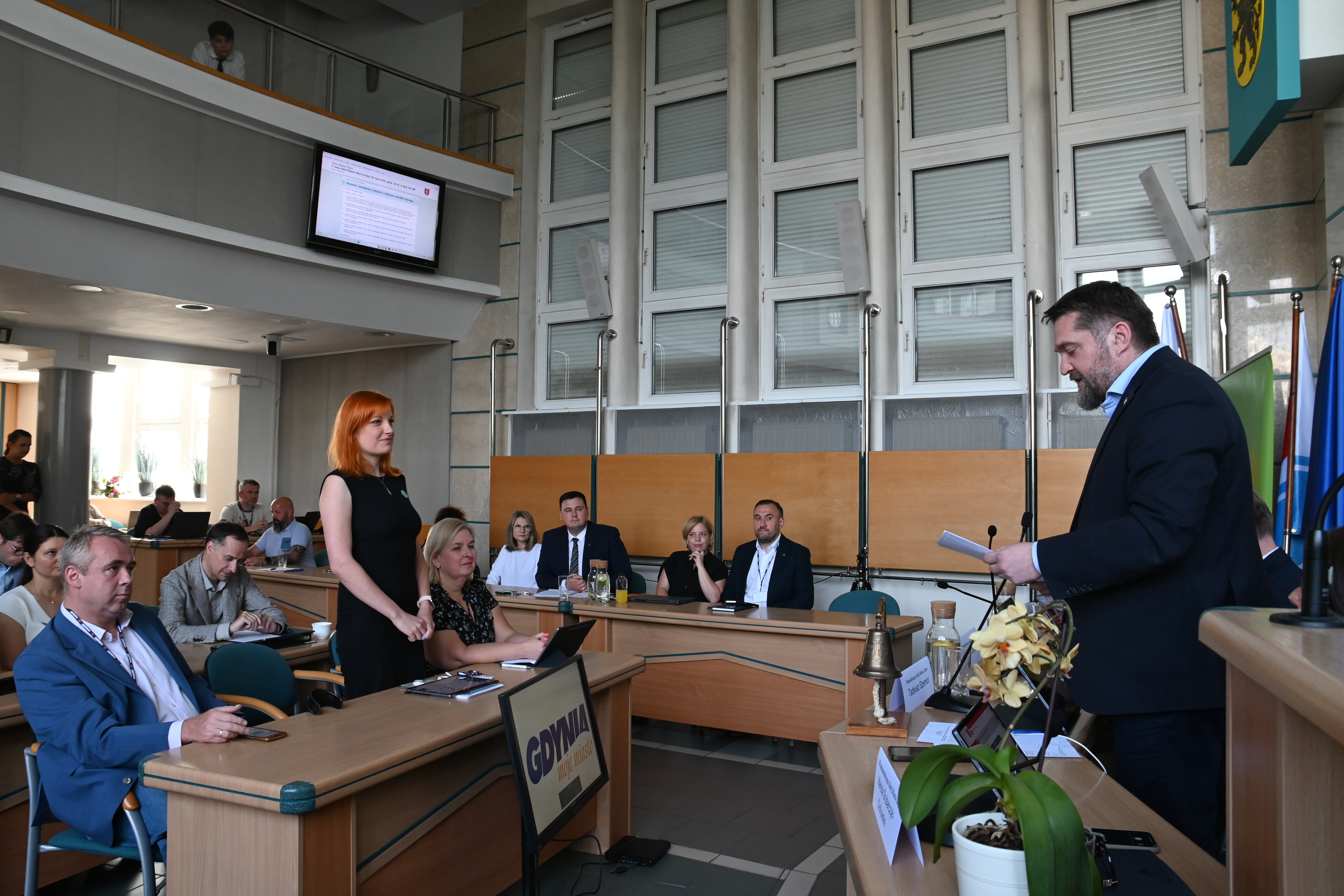 Honorata Krupka została nowym Skarbnikiem Miasta Gdyni. Ponadto radni miejscy dokonali zmian w składach komisji i uzupełnili szeregi radnych o Natalię Kłopotek-Główczewską, która przyjęła mandat w miejsce Bartłomieja Austena, obecnego wiceprezydenta Gdyni. Odwołano także ze składu Michała Gucia, który na początku miesiąca podjął pracę w Ministerstwie Rodziny, Pracy i Polityki Społecznej. Sesję rozpoczęło ślubowanie nowo powołanej radnej z klubu Gdyński Dialog, Natalii Kłopotek-Główczewskiej. Ślubowanie Natalii Kłopotek-Główczewskiej// fot. Małgorzata Kaliszewska Powołanie Skarbnika Miasta Gdyni Najważniejszym punktem posiedzenia było jednak powołanie nowej Skarbnik Miasta Gdyni. Za finanse miasta będzie odpowiadała Honorata Krupka. Od wielu lat związana z samorządem w gminie Krzywiń w Wielkopolsce. Najpierw była tam skarbnikiem, później zastępcą burmistrza. Honorata Krupka wygrała przeprowadzony w lipcu konkurs, pokonując kilkunastu innych kandydatów. Za finanse miasta będzie odpowiadała Honorata Krupka// fot. Małgorzata Kaliszewska Zmiany personalne w komisjach Radni podjęli także szereg decyzji w związku ze zmianami w składach komisji działających w radzie miasta. W związku z odwołaniem Michała Gucia, który na początku lipca objął stanowisko zastępcy dyrektora Departamentu Polityki Demograficznej w Ministerstwie Rodziny, Pracy i Polityki Społecznej, wykreślono go z dwóch komisji tj. Komisji Rodziny, Pomocy Społecznej i Zdrowia oraz Komisji Samorządności Lokalnej i Bezpieczeństwa. V Sesja Rady Miasta// fot. Małgorzata KaliszewskaPonadto radni odwołali radną Emilię Rogałę ze składu Komisji Gospodarki Komunalnej, a w to miejsce powołali radnego Łukasza Piesiewicza. A następnie powołali Emilię Rogałę do Komisji Planowania Przestrzennego i Strategii. Natalię Kłopotek-Główczewską powołano do Komisji Kultury oraz Komisji Planowania Przestrzennego i Strategii. Rozpoczynamy dyskusję o dostępności alkoholu W porządku obrad znalazł się także punkt poświęcony zmianie Uchwały nr XLV/1313/18 z dnia 29 sierpnia 2018 roku w sprawie określenia maksymalnej liczby zezwoleń na sprzedaż napojów alkoholowych przeznaczonych do spożycia spożycia w miejscu sprzedaży – z obecnych 250 do 300. Chodziło o alkohol do 18%, czyli wino. Radni przegłosowali wniosek przyjmując go jednogłośnie. Według informacji, które wybrzmiały podczas sesji wniosek, był konsultowany z Dowódcą Garnizonu Gdynia oraz radami dzielnic. 8 dzielnic zaakceptowało wniosek, 12 nie wypowiedziało się, 1 była przeciwko. Przy czym radni opiniowali go w trakcie konstytuowania się rad, co mogło mieć wpływ na ich responsywność. To przedsiębiorcy wnosili o zwiększenie liczby pozwoleń. Dla porównania w Gdańsku jest ich 900, a w Sopocie 245.Jak zauważył radny Łukasz Piesiewicz, obecnie w Gdyni mamy 450 wydanych pozwoleń na sprzedaż alkoholu w mieście, czyli tyle, ile jest w całej Szwecji. 10% gmin w Polsce wprowadza ciszę nocną alkoholową. Radni rozważą po wakacjach ograniczenie dostępności alkoholu w związku z tym, że 5% zmaga się z uzależnieniem od alkoholu. Radni byli zgodni co do tego, aby ograniczyć liczbę punktów sprzedaży trunków na wynos. Pamięć o Powstańcach Warszawskich Ponadto na wniosek wiceprzewodniczącego rady Jakuba Ubycha Rada Miasta Gdyni przyjęła stanowisko w sprawie obchodów 80. Rocznicy Wybuchu Powstania Warszawskiego. Jednogłośnie przyjęto wolę oddania hołdu żołnierzom oraz mieszkańcom cywilnym, którzy podjęli nierówną walkę z okupantem. „Naszym obowiązkiem jest pamięć o ofierze krwi”. Opublikowano: 30.07.2024 19:05 Autor: Małgorzata Kaliszewska (malgorzata.kaliszewska@gdynia.pl) Zmodyfikowano: 31.07.2024 15:59 Zmodyfikował: Karolina Szypelt