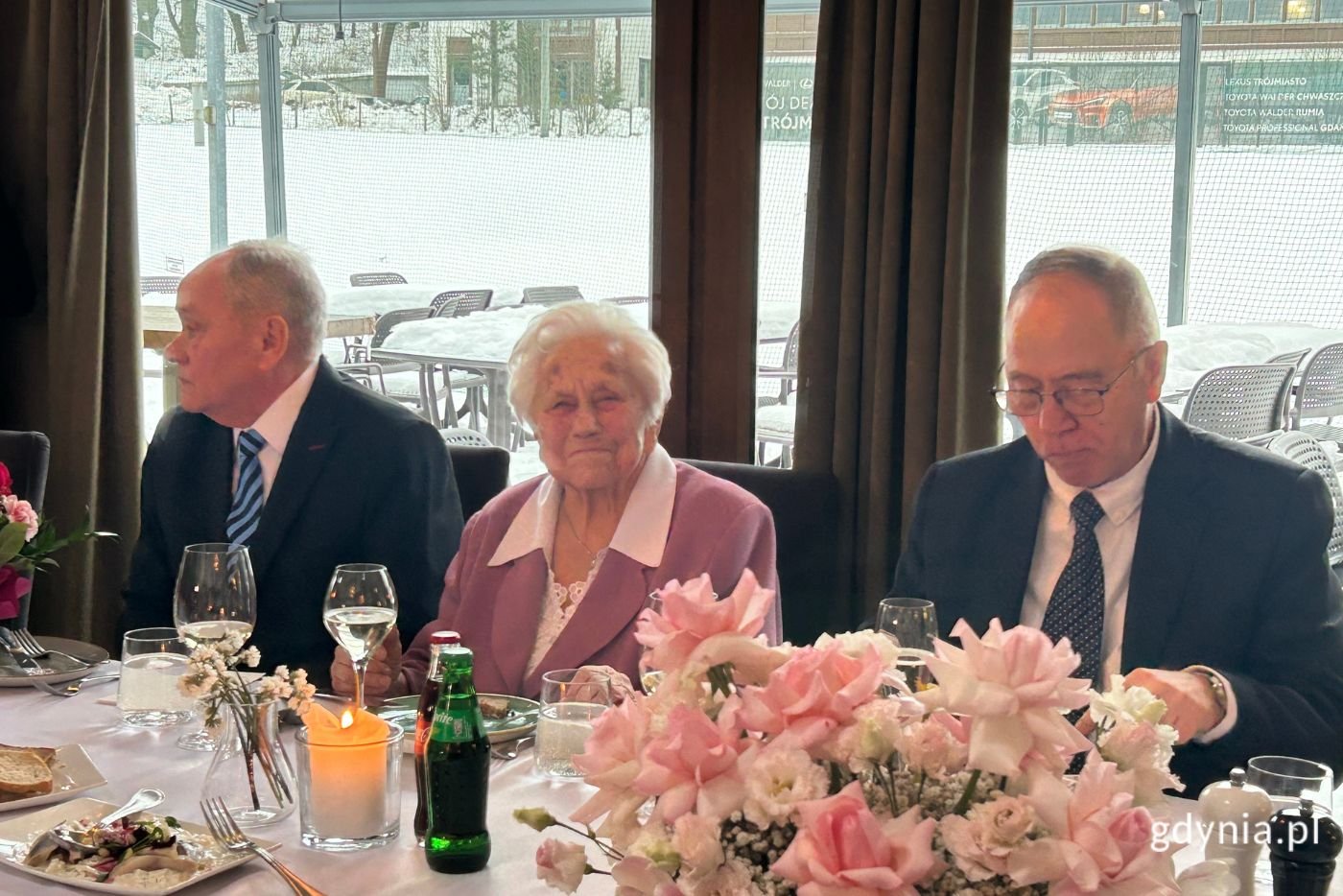 Pani Halina Jasiak dołączyła do grona gdyńskich stulatków. W dniu wyjątkowych urodzin jubilatkę odwiedziła prezydent Gdyni Aleksandra Kosiorek – złożyła najserdeczniejsze życzenia, wręczyła bukiet kwiatów i drobny upominek. Pani Halina Jasiak jest równolatką Gdyni, urodziła się 7 lutego, czyli trzy dni przed nadaniem praw miejskich naszemu miastu. W dniu urodzin jubilatkę odwiedziła prezydent Gdyni Aleksandra Kosiorek. Złożyła najserdeczniejsze życzenia, wręczyła bukiet kwiatów, a także upominek. Dzisiaj wyjątkowy jubileusz, setne urodziny pani Haliny, która w Gdyni mieszka od 1931 roku. To jest niezmiernie symboliczny dzień, bo tak blisko urodzin naszej kochanej Gdyni – mówi Aleksandra Kosiorek, prezydent Gdyni. – Przyjechałam złożyć pani Halinie najlepsze życzenia od wszystkich mieszkańców. Miałam również okazję posłuchać o tym, jak Gdynia rozwijała się przez te wszystkie lata. Życzę pani Halinie kolejnych stu lat w najlepszym zdrowiu. Wideo i montaż: Sławomir OkońPani Halina urodziła się 7 lutego 1926 roku w Nowym Kromplewicach. W 1931 roku wraz z rodzicami przeprowadziła się do Gdyni i zamieszkała na Grabówku. W 1945 roku, w wyniku bombardowania, spłonął dom rodzinny pani Haliny. W czerwcu 1946 roku wyszła za mąż za Jerzego Jasiaka – rzeczoznawcę bawełny. Małżeństwo doczekało się trzech synów: dwóch urodzonych w latach 1947 i 1949 oraz trzeciego, urodzonego w 1955 roku w Kairze, gdzie mieszkali całą rodziną, bowiem mąż pracował w placówce handlowej Polcargo. Pani Halina w latach 1960-1982 pracowała w zakładach mięsnych. W 1965 r. przeprowadziła się z Oksywia na Witomino, gdzie mieszka do dziś. Doczekała się sześciorga wnucząt, siedmiorga prawnucząt oraz dwojga praprawnucząt. Pani Halinie serdecznie gratulujemy wyjątkowego jubileuszu i życzymy wielu pięknych chwil w zdrowiu. Galeria zdjęć Pobierz galerię Pani Halina świętowała 100. urodziny w gronie najbliższych (fot. Sławomir Okoń) Pobierz zdjęcie Na zdjęciu: pani Halina wraz z synami (fot. Magdalena Starnawska) Pobierz zdjęcie Warunki pobierania Wszelkie prawa do zdjęć lub grafik prezentowanych w ramach portalu, należą do Prowadzącego portal lub do podmiotów z nim współpracujących i podlegają ochronie prawnej. Prowadzący portal zezwala na kopiowanie i przedstawianie utworów jedynie w celach niekomercyjnych oraz pod warunkiem zachowania go w oryginalnej postaci i zachowaniem kontekstu tematu, do którego zostało wykorzystaneprzez redakcję gdynia.pl. Opublikowane materiały powinny zawsze zawierać źródło, czyli adres strony www.gdynia.pl. Na publikowanie utworów w innych celach wymagana jest zgoda właściciela strony czyli Prowadzącego portal. Opublikowano: 08.02.2026 13:46 Autor: Magdalena Starnawska (magdalena.starnawska@gdynia.pl) Zmodyfikowano: 08.02.2026 16:28 Zmodyfikował: Aleksandra Dylejko