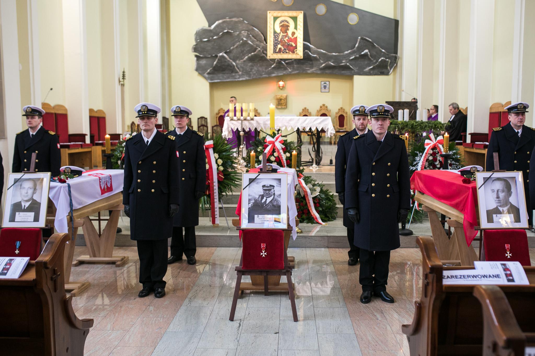 W Kwaterze Pamięci na Cmentarzu Marynarki Wojennej w Gdyni pochowano w sobotę kadm Stanisława Mieszkowskiego, kadm Jerzego Staniewicza oraz kmdr. Zbigniewa Przybyszewskiego, ofiary zbrodni stalinowskiej. Obecny na pogrzebie prezydent Andrzej Duda podkreślał, że byli oni wierni Polsce do końca i za tę wierność zapłacili najwyższą cenę.16 grudnia mija 65 lat od śmierci trzech bohaterskich obrońców wybrzeża z września 1939 r. Skazani na śmierć przez stalinowskie władze oficerowie Marynarki Wojennej, po latach zapomnienia, doczekali się godnego pochówku. Prezydent, senatorowie, posłowie Uroczystości pogrzebowe oficerów MW miały charakter państwowy. Poza Prezydentem RP, obecni byli również dowódcy sił zbrojnych, przedstawiciele Sejmu i Senatu oraz władz samorządowych. Wśród uczestników uroczystości były także władze Instytutu Pamięci Narodowej na czele z prezesem IPN Jarosławem Szarkiem, który w 2013 r. wspólnie z zespołem odkrył szczątki oficerów na "Łączce" przy Cmentarzu Wojskowym na Powązkach.- 65 lat temu mieli jeszcze trzy godziny życia, nim kula roztrzaskała im głowy. Kula kata, nie było plutonu egzekucyjnego. Komandor Staniewicz został zamordowany 4 dni wcześniej. 16 grudnia 1952 roku, kolejny polski grudzień, tutaj na wybrzeżu pamiętacie też o innych grudniach- mówił podczas mszy prezes IPN Jarosław Szarek. „Chcieli zabić pamięć o nich” - Nie ma bardziej wyrafinowanego okrucieństwa i poniżenia godności człowieka niż zakazanie godnego pochówku jego ciała. Temu miał służyć zakaz wydawania ciał zamordowanych oficerów rodzinom. Wmawiali sobie i innym – nie ma ciała, a więc nie ma zbrodni. Myśleli, że w ten sposób zabiją o nich pamięć, mylili się- mówił podczas homilii biskup Józef Guzdek.Kmdr Stanisław Mieszkowski, kmdr Jerzy Staniewicz oraz komandor Zbigniew Przybyszewski bronili polskiego Wybrzeża podczas kampanii wrześniowej w 1939 roku. Służyli w Marynarce Wojennej także po II wojnie światowej. W latach 50-tych w komunistycznej Polsce zostali aresztowani pod zarzutem szpiegostwa. Przetrzymywano ich w więzieniu, gdzie torturami wymuszano od nich nieprawdziwe zeznania. W 1952 roku, po sfingowanym procesie i niesłusznym oskarżeniu o udział w spisku przeciwko państwu, zostali skazani na śmierć. Wyrok wykonano w grudniu tego samego roku. Zginęli od strzału w tył głowy w więzieniu przy ul. Rakowieckiej w Warszawie. Dziesiątki wieńców Po nabożeństwie uczestnicy ceremonii przeszli w kondukcie pogrzebowym ulicami miasta na cmentarz Marynarki Wojennej. W zamyśleniu i zadumie, przy akompaniamencie orkiestry reprezentacyjnej MW szli m.in. mieszkańcy Oksywia.- Jestem tu, bo to dla mnie wielki dzień, po tylu latach tu wracają, w końcu spoczną w należny im sposób. Komuna to było wielkie zło, ja jak dziś słucham o tym, co wyprawiano z tymi biednymi ludźmi w ubeckich katowniach, to mi się to w głowie nie mieści, po prostu tego nie rozumiem- mówił Janusz Marchlewski, mieszkaniec Oksywia. "Byli wierni do końca" W uroczystościach pogrzebowych na cmentarzu wziął udział Prezydent RP Andrzej Duda. W specjalnym przemówieniu podkreślał że pochowani dziś oficerowie byli niezłomni.- Wierni do końca słowom tej przysięgi - "Morze nasze morze wiernie ciebie będziem strzec". I można powiedzieć, że właśnie za to zobowiązanie oddali życie. Zginęli jako żołnierze niezłomni, którzy nigdy nie skończyli służby dla ojczyzny- przemawiał prezydent Andrzej Duda.Podczas uroczytości pogrzebowych odczytano decyzje o pośmiertnym awansie dla Jana Staniewicza na stopień kontradmirała. Decyzję przekazano na ręce bliskich uczestniczących w uroczystościach. Proces Komandorów Pochowani dziś oficerowie to ofiary tzw. "spisku komandorów", czyli rzekomej zmowy oficerów, wymyślonej przez ówczesne władze i wykorzystanej przez nie do pozbycia się z szeregów floty przedwojennych dowódców. W sfingowanym procesie kilku z nich skazano na śmierć, a w przypadku trzech - Stanisława Mieszkowskiego, Zbigniewa Przybyszewskiego i Jerzego Staniewicza - "wyroki" wykonano.W 1956 r., po śmierci Stalina i Bieruta, nadszedł okres odwilży politycznej i ruszyły procesy rehabilitacyjne pomordowanych oficerów. 24 kwietnia 1956 roku Naczelny Sąd Wojskowy w swym orzeczeniu stwierdził, że wydane wyroki były niewłaściwe, gdyż oficerowie byli w świetle prawa niewinni. Choć rodziny otrzymały listy od prokuratora generalnego informujące o rehabilitacji skazanych, to wciąż nie wiedziały, gdzie znajdują się ciała ich bliskich. Odnalezieni na „Łączce” Dopiero w 2013 roku na "Łączce" przy Cmentarzu Wojskowym na Powązkach IPN odnalazł ich zbiorową mogiłę. Zapadła decyzja, że szczątki oficerów zostaną przeniesione na Wybrzeże. Nad całością prac związanych ze sprowadzeniem marynarzy do Gdyni oraz budową Kwatery Pamięci, czuwał – działający pod patronatem Prezydenta RP – Komitet Organizacyjny, w skład którego weszli przedstawiciele rodzin zamordowanych oficerów, a także Biura Bezpieczeństwa Narodowego, Urzędu Miasta Gdyni, Instytutu Pamięci Narodowej, Ministerstwa Obrony Narodowej – w tym Marynarki Wojennej RP, Ministerstwa Kultury i Dziedzictwa Narodowego, Ministerstwa Spraw Zagranicznych oraz Urzędu ds. Kombatantów i Osób Represjonowanych. Galeria zdjęć Pobierz galerię Pogrzeb oficerów MW, fot. Karol Stańczak Pobierz zdjęcie Pogrzeb oficerów MW, fot. Karol Stańczak Pobierz zdjęcie Pogrzeb oficerów MW, fot. Karol Stańczak Pobierz zdjęcie Pogrzeb oficerów MW, fot. Karol Stańczak Pobierz zdjęcie Pogrzeb oficerów MW, fot. Karol Stańczak Pobierz zdjęcie Pogrzeb oficerów MW, fot. Karol Stańczak Pobierz zdjęcie Pogrzeb oficerów MW, fot. Karol Stańczak Pobierz zdjęcie Pogrzeb oficerów MW, fot. Karol Stańczak Pobierz zdjęcie Pogrzeb oficerów MW, fot. Karol Stańczak Pobierz zdjęcie Pogrzeb oficer