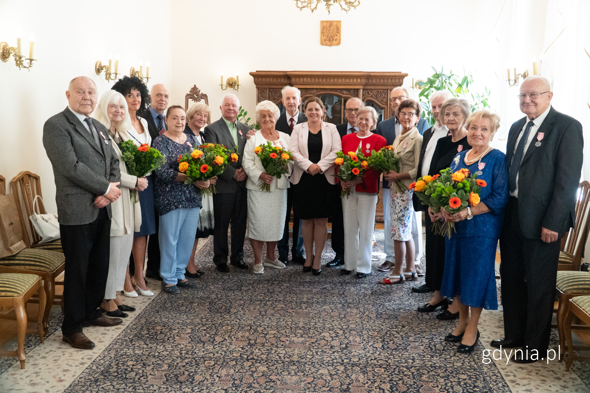 Wierzą w miłość na zawsze, a nie na chwilę. Wspólnie idą przez życie. Gdyńskie pary, które przeżyły razem co najmniej pół wieku, Aleksandra Kosiorek, prezydent Gdyni, uhonorowała dziś Medalami za Długoletnie Pożycie Małżeńskie. Uroczystości wręczenia Medali za Długoletnie Pożycie Małżeńskie to już tradycja. Kilka razy w roku gdyńscy małżonkowie z co najmmniej 50-letnim stażem spotykają się w Urzędzie Stanu Cywilnego w Gdyni. W poniedziałek, 15 września, kolejne pary odebrały odznaczenia z rąk prezydent Gdyni Aleksandry Kosiorek. Były kwiaty, łzy wzruszenia i uśmiechy pełnych dumy bliskich. W imieniu Prezydenta Rzeczpospolitej Polskiej, Prezydenta Miasta Gdyni, ale również w imieniu wszystkich mieszkańców naszego miasta, składam Państwu najserdeczniejsze gratulacje i życzenia, aby ta droga, która trwa już tak długo, trwała kolejne lata w takim zdrowiu i szczęściu, w jakim dziś Państwa widzę – mówiła do jubilatów Aleksandra Kosiorek, prezydent Gdyni. – Równocześnie dziękuję za to, że są Państwo wzorem do naśladowania. To jest niezwykle ważne dla ludzi młodszych, młodego pokolenia, aby obserwować, że związek małżeński to nie zawsze, najłatwiejsza droga, ale to wartość, którą należy pielęgnować w imię miłości. O godz. 13:00 medale odebrali: Izabela i Bogdan Badowscy, Renata i Stefan Cygertowie, Grażyna i Marek Hedrychowie, Regina i Janusz Kijankowie, Urszula i Jan Kornaccy, Bogumiła i Bogdan Lademannowie, Małgorzata i Wojciech Leszczyńscy, Krystyna i Jerzy Żemczykowscy. Jubilaci z godz. 13.00 wraz z prezydent Aleksandrą Kosiorek i Innocentą Nycz, kierownikiem USC w Gdyni (fot. Michał Sałata) O godz. 14:00 medale odebrali: Halina i Roman Dubielowie, Maria i Leszek Lewandowscy, Anna i Ryszard Millerowie, Krystyna i Jerzy Misztalowie, Barbara i Zbigniew Mrozowscy, Renata i Jerzy Oczosiowie, Wanda i Jerzy Pakurowie, Anna i Marian Plaskatowie. Jubilaci z godz. 14.00 wraz z prezydent Aleksandrą Kosiorek i Innocentą Nycz, kierownikiem USC w Gdyni (fot. Michał Sałata) O godz. 15:00 medale odebrali: Maria i Jan Siemianowscy, Danuta i Maciej Sokólscy, Elżbieta i Witold Staniszewscy, Anna i Marek Stirmerowie, Alicja i Józef Sworczukowie, Stefania i Władysław Tureccy , Alicja i Jan Wanatowie, Barbara i Jan Wojtowiczowie. Jubilaci z godz. 15.00 wraz z prezydent Aleksandrą Kosiorek i Innocentą Nycz, kierownikiem USC w Gdyni (fot. Michał Sałata)Jubileusz uświetnił krótki koncert uczennicy Szkoły Muzycznej w Gdyni, Kaliny Twarowskiej przy akompaniamencie Macieja Gałązki.Wszystkim parom serdecznie gratulujemy jubileuszu i życzymy wielu wspólnych, pięknych lat w zdrowiu i szczęściu. Medal za Długoletnie Pożycie Małżeńskie Medal za Długoletnie Pożycie Małżeńskie nadaje Prezydent Rzeczypospolitej Polskiej. Odznaczeni nim mogą być małżonkowie, którzy przeżyli co najmniej 50 lat w jednym związku małżeńskim. Zgłoszenia jubileuszu wraz z wnioskiem o nadanie medali dokonują zainteresowani. Procedura i wniosek znajdują się w Biuletynie Informacji Publicznej. Galeria zdjęć Pobierz galerię Medale wręcza Aleksandra Kosiorek, prezydent miasta (fot. Michał Sałata) Pobierz zdjęcie Medale otrzymują gdynianie, którzy przeżyli razem co najmniej pół wieku (fot. Michał Sałata) Pobierz zdjęcie W uroczystości mogą uczestniczyć bliscy (fot. Michał Sałata) Pobierz zdjęcie Medale wręcza Aleksandra Kosiorek, prezydent miasta (fot. Michał Sałata) Pobierz zdjęcie Wszystkie pary otrzymują piękne kwiaty (fot. Michał Sałata) Pobierz zdjęcie Medale otrzymują gdynianie, którzy przeżyli razem co najmniej pół wieku (fot. Michał Sałata) Pobierz zdjęcie Medale wręcza Aleksandra Kosiorek, prezydent miasta (fot. Michał Sałata) Pobierz zdjęcie Każda z par otrzymuje również pamiątkowy dyplom (fot. Michał Sałata) Pobierz zdjęcie Medale otrzymują gdynianie, którzy przeżyli razem co najmniej pół wieku razem (fot. Michał Sałata) Pobierz zdjęcie Medale otrzymują gdynianie, którzy razem przeżyli co najmniej pół wieku (fot. Michał Sałata) Pobierz zdjęcie Warunki pobierania Wszelkie prawa do zdjęć lub grafik prezentowanych w ramach portalu, należą do Prowadzącego portal lub do podmiotów z nim współpracujących i podlegają ochronie prawnej. Prowadzący portal zezwala na kopiowanie i przedstawianie utworów jedynie w celach niekomercyjnych oraz pod warunkiem zachowania go w oryginalnej postaci i zachowaniem kontekstu tematu, do którego zostało wykorzystaneprzez redakcję gdynia.pl. Opublikowane materiały powinny zawsze zawierać źródło, czyli adres strony www.gdynia.pl. Na publikowanie utworów w innych celach wymagana jest zgoda właściciela strony czyli Prowadzącego portal. Opublikowano: 15.09.2025 15:47 Autor: Aneta Marczak (aneta.marczak@gdynia.pl) Zmodyfikowano: 16.09.2025 12:15 Zmodyfikował: Paweł Jałoszewski