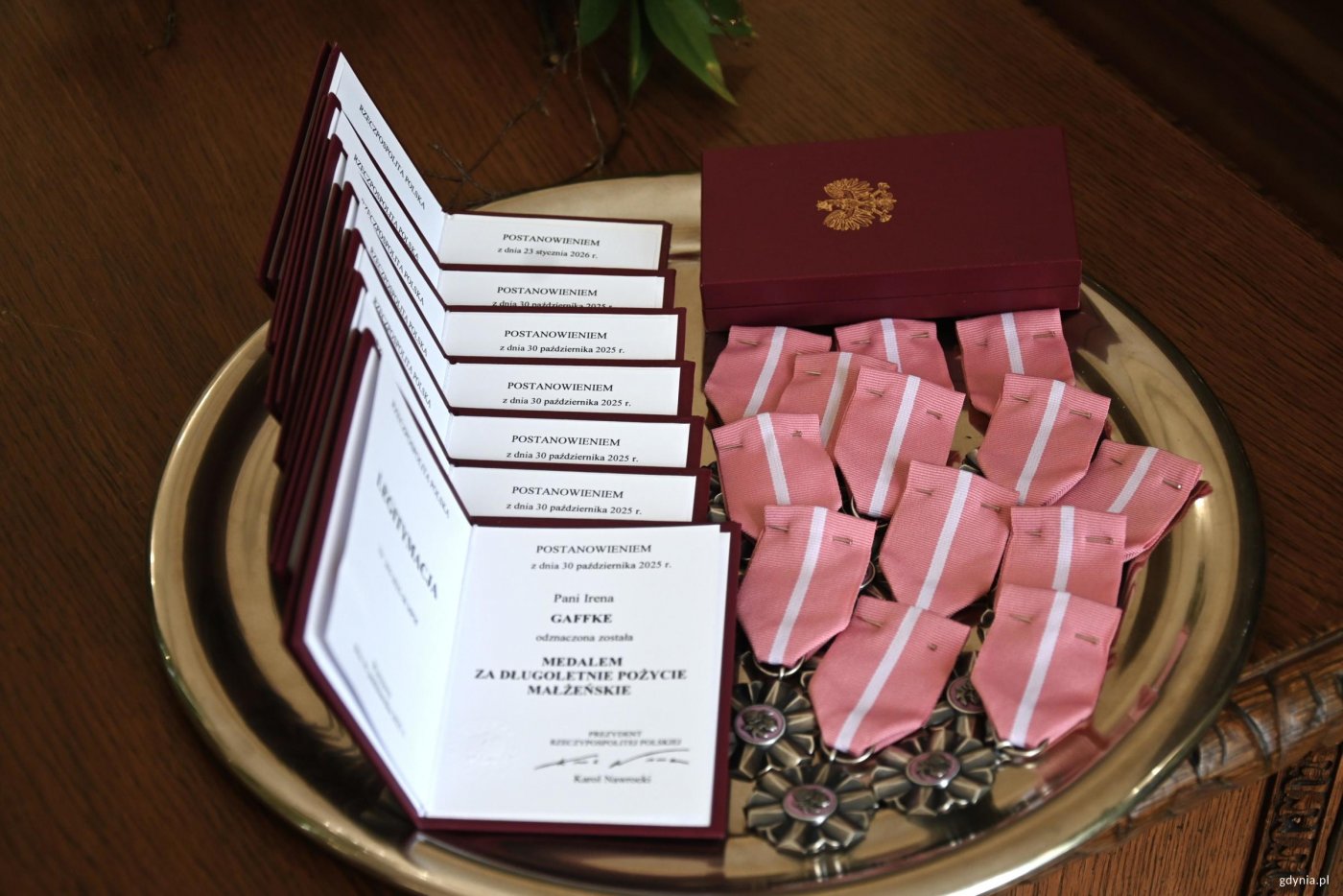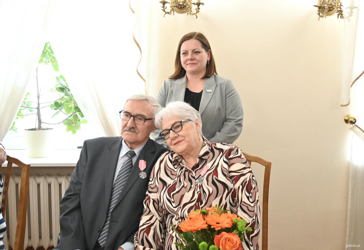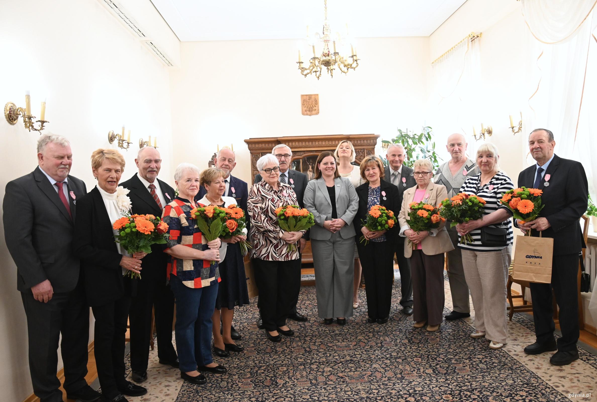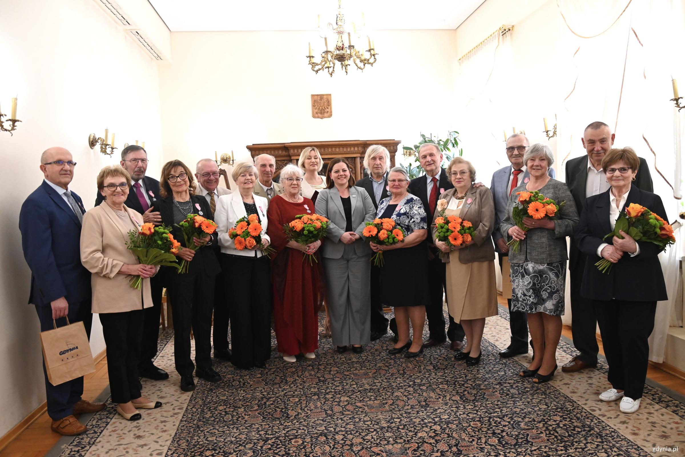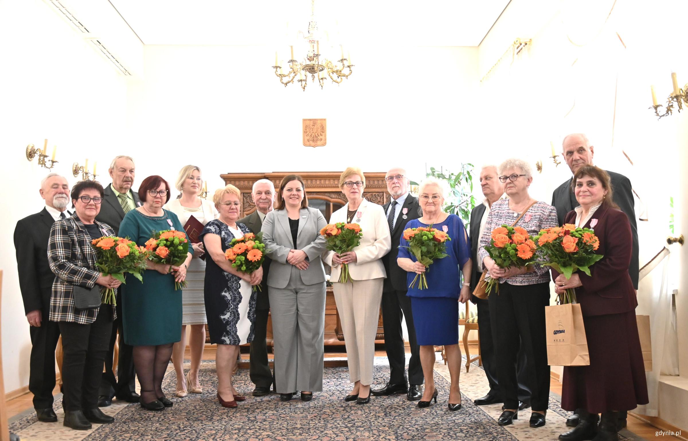 Kolejne gdyńskie pary otrzymały Medale za Długoletnie Pożycie Małżeńskie. Wręczała je – w imieniu prezydenta RP – Aleksandra Kosiorek, prezydent Gdyni. Po raz pierwszy w tym roku w Urzędzie Stanu Cywilnego spotkali się małżonkowie z bardzo długim stażem. Były łzy wzruszenia, kwiaty i podziw w oczach najbliższych: dzieci, wnuków, prawnuków, którzy licznie przybyli, aby towarzyszyć jubilatom w tej wyjątkowej uroczystości. W imieniu prezydenta Polski, swoim i mieszkańców Gdyni chciałabym Państwu złożyć najserdeczniejsze gratulacje – mówiła prezydent Gdyni Aleksandra Kosiorek. – Jeżeli dwie osoby prawdziwie się kochają, potrafią przejść każdy trudny zakręt na życiowej drodze. O godz. 13:00 medale odebrali: Irena i Jerzy Gaffkowie, Urszula i Ryszard Gburscy, Irena i Bogusław Gwozdeccy, Bożena i Ryszard Jarmoszka, Elżbieta Kleniewska, w imieniu swoim i męża Grzegorza, Teresa i Stanisław Szlasowie, Ewa i Krzysztof Wardeńscy. Jubilaci z godz. 13:00 z prezydent Aleksandrą Kosiorek i Agatą Lipińską, zastępcą kierownika USC w Gdyni (fot. Aneta Marczak) O godz. 14:00 medale odebrali: Jolanta i Kazimierz Machollowie, Krystyna i Bogumił Macierzyńscy, Barbara i Jan Marjanowscy, Małgorzata i Piotr Millerowie, Władysława i Bogdan Mirkowscy, Grażyna i Stanisław Podczascy, Bożena i Mieczysław Radkowie, Janina i Andrzej Saternusowie. Jubilaci z godz. 14:00 z prezydent Aleksandrą Kosiorek i Agatą Lipińską, zastępcą kierownika USC w Gdyni (fot. Aneta Marczak) O godz. 15:00 medale odebrali: Elżbieta i Roman Blockowie, Irena i Tadeusz Donorowiczowie, Leszek Fabjański w imieniu swoim i żony Ludwiki, Maria i Adam Hanowiczowie, Wiesława i Ryszard Łępowie, Wanda i Andrzej Łozińscy, Irena Nowacka w imieniu swoim i męża Jerzego, Ewa i Roman Pilorzowie. Jubilaci z godz. 15:00 z prezydent Aleksandrą Kosiorek i Agatą Lipińską, zastępcą kierownika USC w Gdyni (fot. Aneta Marczak) Uroczystość prowadziła Agata Lipińska, zastępca kierownika Urzędu Stanu Cywilnego w Gdyni.Jubileusz uświetnił krótki koncert uczennicy Szkoły Muzycznej w Gdyni Kaliny Twarowskiej przy akompaniamencie Macieja Gałązki. Galeria zdjęć Pobierz galerię Medale otrzymują małżonkowie, którzy przeżyli razem co najmniej pół wieku (fot. Aneta Marczak) Pobierz zdjęcie Medale wręczała Aleskandra Kosiorek, prezydent Gdyni, w tle Agata Lipińska, zastępca kierownika Urzędu Stanu Cywilnego (fot. Aneta Marczak) Pobierz zdjęcie Jedna z nagrodzonych par (fot. Aneta Marczak) Pobierz zdjęcie Jubilaci, ich najbliżsi z Aleksandrą Kosiorek, prezydent Gdyni (fot. Aneta Marczak) Pobierz zdjęcie Aleksandra Kosiorek, prezydent Gdyni i przedstawicielki USC z jedną z par (fot. Aneta Marczak) Pobierz zdjęcie Jeden z jubilatów z prezydent Gdyni Aleksandrą Kosiorek (fot. Aneta Marczak) Pobierz zdjęcie Aleksandra Kosiorek, prezydent Gdyni i Agata Lipińska, zastępca kierownika Urzędu Stanu Cywilnego w trakcie uroczystości (fot. Aneta Marczak) Pobierz zdjęcie Aleksandra Kosiorek, prezydnet Gdyni w trakcie wręczania medali (fot. Aneta Marczak) Pobierz zdjęcie Jeden z jubilatów z Aleksandrą Kosiorek (fot. Aneta Marczak) Pobierz zdjęcie Moment oznaczania jubilatów (fot. Aneta Marczak) Pobierz zdjęcie Moment oznaczania jubilatów (fot. Aneta Marczak) Pobierz zdjęcie Jedna z par z prezydent Aleksadrą Kosiorek (fot. Aneta Marczak) Pobierz zdjęcie Jedna z par z prezydent Aleksadrą Kosiorek (fot. Aneta Marczak) Pobierz zdjęcie Jubilaci otrzymują medale (fot. Aneta Marczak) Pobierz zdjęcie Wszystkie panie otrzymują kwiaty (fot. Aneta Marczak) Pobierz zdjęcie Warunki pobierania Wszelkie prawa do zdjęć lub grafik prezentowanych w ramach portalu, należą do Prowadzącego portal lub do podmiotów z nim współpracujących i podlegają ochronie prawnej. Prowadzący portal zezwala na kopiowanie i przedstawianie utworów jedynie w celach niekomercyjnych oraz pod warunkiem zachowania go w oryginalnej postaci i zachowaniem kontekstu tematu, do którego zostało wykorzystaneprzez redakcję gdynia.pl. Opublikowane materiały powinny zawsze zawierać źródło, czyli adres strony www.gdynia.pl. Na publikowanie utworów w innych celach wymagana jest zgoda właściciela strony czyli Prowadzącego portal. Opublikowano: 13.04.2026 09:30 Autor: Aneta Marczak (aneta.marczak@gdynia.pl) Zmodyfikowano: 14.04.2026 09:06 Zmodyfikował: Aleksandra Dylejko