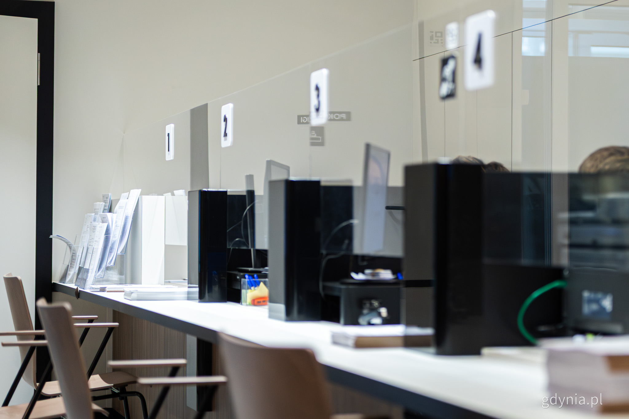 Sala Obsługi Mieszkańców w głównym budynku Urzędu Miasta Gdyni (przy Al. Piłsudskiego 52/54) jest już otwarta dla mieszkańców po remoncie. Od poniedziałku, 26 stycznia wszystkie podstawowe sprawy urzędowe można załatwić w jednym miejscu i na jednej kondygnacji, a główna sala stała się dostępna dla osób z niepełnosprawnościami. Sala otwarta i pełna mieszkańców Bardziej dostępna, nowoczesna i intuicyjna Sprawy załatwisz w urzędzie i punktach terenowych Sala otwarta i pełna mieszkańców Zdjęcia i montaż: Przemysław DopkePierwsi mieszkańcy, którzy skorzystali z wyremontowanej i przebudowanej Sali Obsługi Mieszkańców, pojawili się już około godziny 7:00. W poniedziałkowy poranek przywitała ich prezydent Gdyni Aleksandra Kosiorek, która pierwszym osobom wręczyła symboliczny upominek i pytała Gdynian o odczucia związane z nową przestrzenią. Otworzyliśmy Salę Obsługi Mieszkańców po dużym, trwającym kilka miesięcy remoncie. Wszystkie usługi, wszystkie sprawy do załatwienia są dzisiaj już umiejscowione na jednym poziomie. Nie ma chociażby takiego problemu, jak dawniej w sprawach związanych z prawem jazdy, gdy trzeba było dostać się na półpiętro. To był kłopot dla osób z niepełnosprawnościami. Dzisiaj te problemy są rozwiązane – mówi prezydent Gdyni Aleksandra Kosiorek. Od poniedziałku (26 stycznia) tym samym obsługa mieszkańców w pełnym zakresie wróciła do Sali Obsługi Mieszkańców w głównej siedzibie Urzędu Miasta Gdyni przy Alei Marsz. J. Piłsudskiego 52/54 – swoje działanie zakończyło tymczasowe biuro przy ul. 3 Maja, które funkcjonowało na czas prowadzonych prac. Bardziej dostępna, nowoczesna i intuicyjna Główna sala przeszła zmianę wystroju i poprawiła swoją dostępność (fot. Kamil Złoch)Przypomnijmy, że kilkumiesięczny remont był spowodowany przede wszystkim koniecznością poprawy dostępności sali dla osób z niepełnosprawnościami. Miasto pozyskało zewnętrzne dofinansowanie z Państwowego Funduszu Rehabilitacji Osób Niepełnosprawnych w wysokości ponad 365 tysięcy złotych, co pozwoliło m.in. na przystosowanie drzwi i toalet, stworzenie fakturowych oznaczeń powierzchni, nowych balustrad czy specjalnych tabliczek z oznakowaniem w alfabecie Braille’a.Modernizacja głównej sali nadała jej też nowoczesny, ujednolicony wygląd i możliwość bardziej intuicyjnego odnalezienia konkretnych stanowisk. Postawiono także na usunięcie obsługi z półpięter, które były kłopotliwe dla osób mających problemy z poruszaniem się.Stanowiska obsługi są teraz lepiej oznakowane i łatwiejsze do znalezienia (fot. Kamil Złoch) Sprawy załatwisz w urzędzie i punktach terenowych Do odnowionej Sali Obsługi Mieszkańców Urzędu Miasta Gdyni (Al. Marsz. Piłsudskiego 52/54) wróciła obsługa spraw z zakresu Wydziału Spraw Obywatelskich (m.in. meldunki, dowody osobiste, rejestracja pojazdów, prawa jazdy) oraz stanowiska kasowe. Przypominamy, że jednocześnie urzędowe sprawy można też załatwiać przez platformę Cyfrowy Urząd Miasta Gdyni (na stronie cyfrowyurzad.um.gdynia.pl) oraz w punktach terenowych urzędu: w Biurze Obsługi Mieszkańca w Centrum Riviera (ul. Górskiego 2); w punkcie terenowym Urzędu Miasta w Chwarznie-Wiczlinie (ul. Tęczowa 37). W przygotowaniu jest zapowiadany wcześniej, kolejny punkt terenowy urzędu dla mieszkańców północnych dzielnic – na Obłużu, przy ul. Unruga. Opublikowano: 26.01.2026 15:30 Autor: Kamil Złoch (kamil.zloch@gdynia.pl) Zmodyfikowano: 26.01.2026 16:09 Zmodyfikował: Kamil Złoch