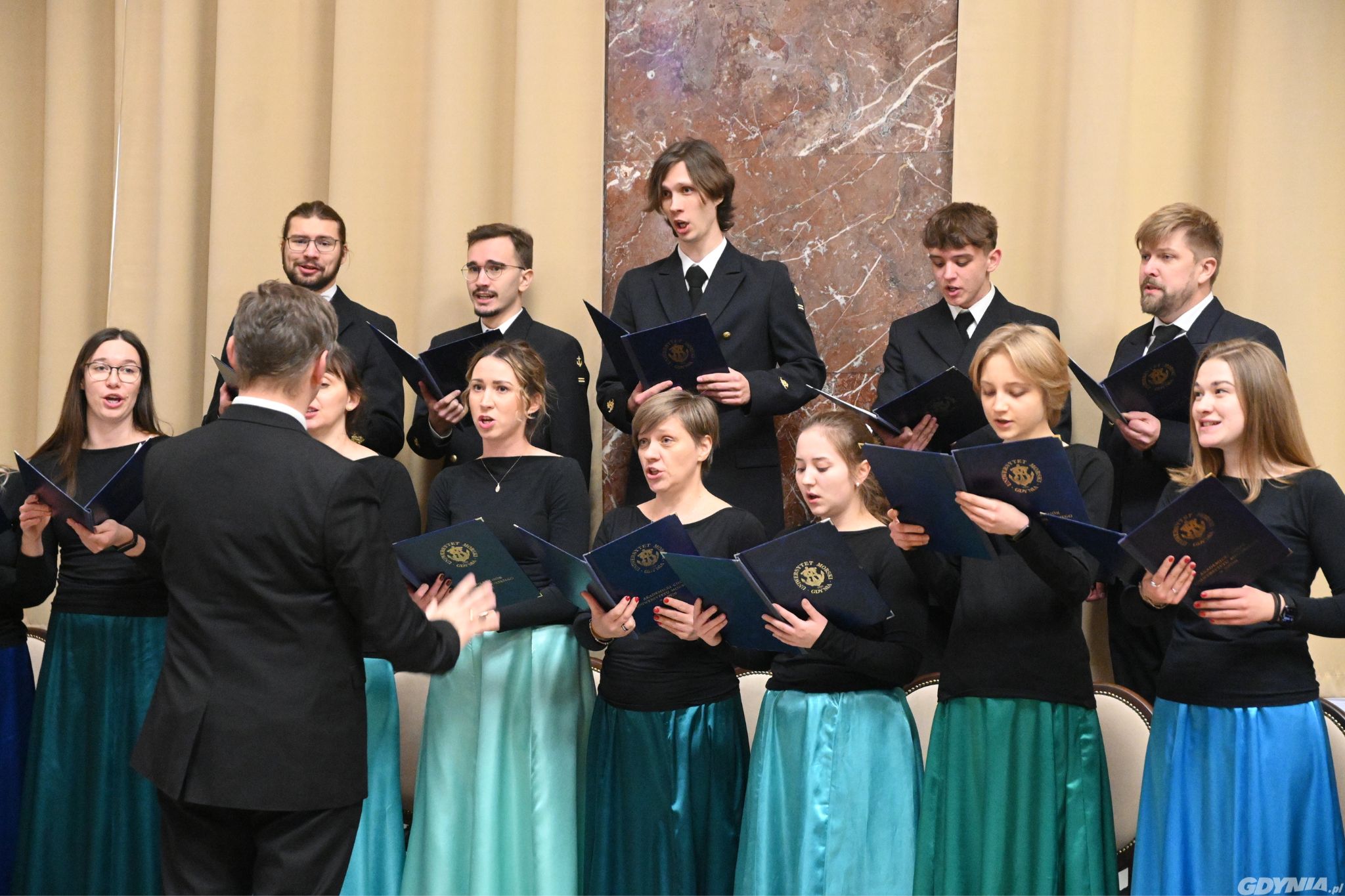 Uczelnia świętuje 103. rocznicę działalności. To wyjatkowy dzień dla społeczności Uniwersytetu Morskiego w Gdyni, który jest największą tego typu uczelnią w kraju. To uczelnia, która związana jest z naszym miastem i kształci studentów na wielu flagowych kierunkach. Z okazji 103. rocznicy działalności uczelni odbyły się oficjalne uroczystości. Jest to uczelnia, która zawsze była uczelnią typowo gdyńską. Dla wielu turystów Uniwersytet Morski na pewno kojarzy się z Darem Młodzieży, który jest jednostką flagową. Ale uniwersytet jest silną jednostką, dlatego, że kształci studentów na wielu kierunkach – mówiła Joanna Zielińska, przewodnicząca Rady Miasta Gdyni. Uczelnia świętuje 103. rocznicę działalności // fot. Dominika Sobiech Uroczystości odbyły się w piątek, 8 grudnia. O godz. 8.00 na gmachu głównym uczelni przy ul. Morskiej 83 uroczyście podniesiono banderę. Następnie uczestnicy obchodów udali się do kościoła oo. Redemptorystów przy ul. Portowej 2. Tam odbyła się msza św. w intencji studentów, doktorantów, pracowników i absolwentów Uniwersytetu Morskiego w Gdyni. Kolejnym punktem obchodów było uroczyste posiedzenie senatu uczelni. Zorganizowano je w auli im. Tadeusza Meissnera w budynku głównym uniwersytetu. Spotkanie otworzył rektor uczelni – prof. dr hab. inż. kpt. ż. w. Adam Weintrit. 8 grudnia to dzień wyjątkowy dla nas i całego szkolnictwa morskiego w Polsce. Tak jak nasza fregata szkolna Dar Mlodzieży, jest kontynuatorem tradycji żaglowca Lwów, a później Daru Pomorza. Tak my, jako społeczność Uniwersytetu Morskiego w Gdyni, mamy ten przywilej i zaszczyt pielęgnować oraz kontynuować misję, którą rozpoczęli wykładowcy i studenci w Tczewie - mówił podczas uroczystości rektor Uniwersytetu Morskiego w Gdyni. Uroczyste posiedzenie senatu Uniwersytetu Morskiego z okazji święta szkoły // fot. Dominika Sobiech8 grudnia jest szczególnym dniem dla szkolnictwa morskiego w Polsce. Tego dnia, 103 lata temu, uroczyście podniesiono banderę w gmachu Szkoły Morskiej w Tczewie. 10 lat później - po przeniesieniu szkoły do Gdyni – 8 grudnia 1930 roku odbyła się uroczystość poświęcenia nowo wybudowanego gmachu uczelni oraz sztandaru Państwowej Szkoły Morskiej w Gdyni. Dzisiaj święto uczelni. Jest to okazja do złożenia życzeń. Życzeń dalszego, tak dynamicznego rozwoju, ale przede wszystkim, życzeń każdej osobie, która tworzy Uniwersytet Morski. Wielkiej satysfakcji z pracy, którą wykonują. Z tego, że społeczność Uniwersytetu Morskiego buduje innowacyjną i silną Polskę morską – życzył Bartosz Bartoszewicz, wiceprezydent Gdyni ds. jakości życia. W posiedzeniu senatu Uniwersytetu Morskiego z okazji święta szkoły uczestniczyli m.in.: Joanna Zielińska, przewodnicząca Rady Miasta Gdyni oraz Bartosz Bartoszewicz, wiceprezydent Gdyni ds. jakości życia. // fot. Dominika Sobiech Uniwersytet Morski ma 103 lata doświadczenia w kształceniu polskich kadr morskich. W tym czasie uczelnia wykształciła kilkadziesiąt tysięcy absolwentów - kapitanów, oficerów marynarki handlowej, marynarzy, inżynierów, ludzi świata nauki, polityków, przedsiębiorców. Uczelni z ponad stuletnią, a dokładnie z stutrzyletnią tradycją, myślę, że należy życzyć dalszego pielęgnowania, tej fantastycznej tradycji, ale jednocześnie rozwoju, ponieważ nasz uniwersytet w ostatnich latach intensywnie się rozwija. I to także infrastrukturalnie. Na pewno można życzyć, jak największej liczby, jak najzdolniejszych studentów, bo po to uczelnia przede wszystkim funkcjonuje. I oby, tak jak jest zakorzeniona w Gdyni, tak jeszcze bardziej była związana z miastem – podkreślił Bartosz Tobieński, rzecznik prasowy Uniwersytetu Morskiego w Gdyni. Uroczystości uświetniły występy Akademickiego Chóru Uniwersytetu Morskiego. Występ Akademickiego Chóru Uniwersytetu Morskiego // fot. Dominika SobiechUczelnia oferuje studia I i II stopnia na 10 kierunkach i 49 specjalnościach. Można się tam kształcić na Wydziale Elektrycznym, Wydziale Nawigacyjnym, Wydziale Mechanicznym czy Wydziale Zarządzania i Nauk o Jakości. Opublikowano: 08.12.2023 13:00 Autor: Dominika Sobiech (dominika.sobiech@gdynia.pl) Zmodyfikowano: 08.12.2023 15:29 Zmodyfikował: Agnieszka Janowicz