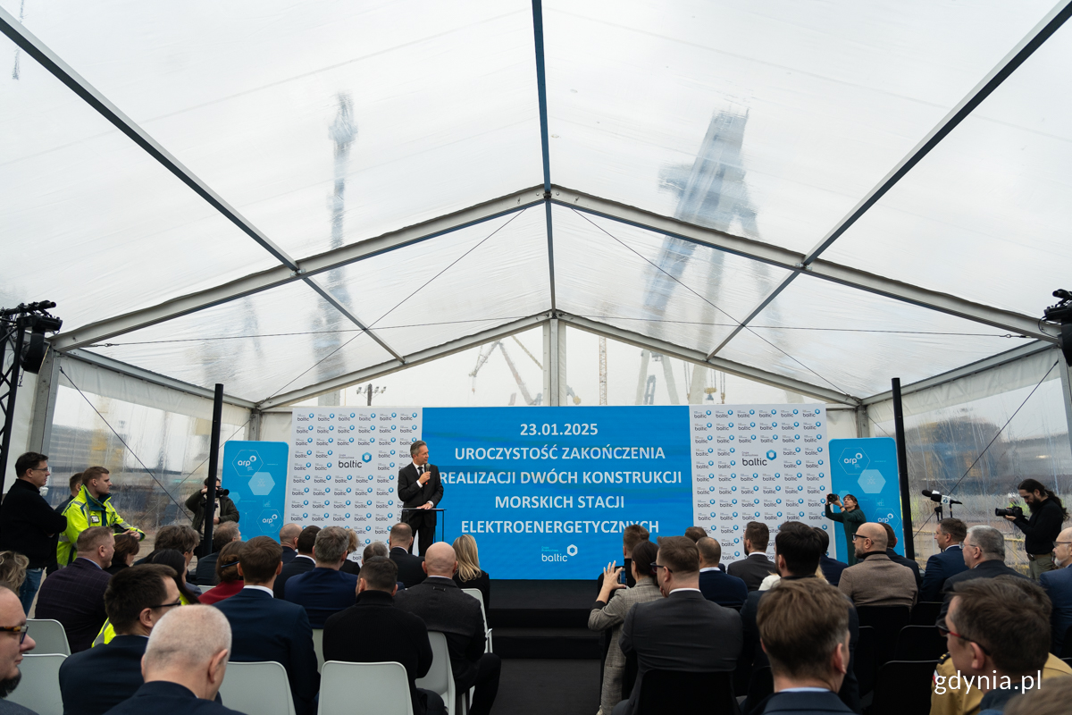 Na Pomorzu zakończono budowę dwóch konstrukcji morskich stacji transformatorowych – kluczowych elementów infrastruktury pierwszej polskiej farmy wiatrowej na Bałtyku, Baltic Power. Stacje te, będące sercem farmy, odegrają kluczową rolę w przesyle energii z turbin do sieci elektroenergetycznej na lądzie. Sama farma wiatrowa, zlokalizowana około 23 km od brzegu, na wysokości Choczewa i Łeby, ma rozpocząć generowanie energii w 2026 roku. Konstrukcje stalowe stacji transformatorowych powstały w zakładach Baltic Operator w Gdańsku, natomiast w zakładzie Energomontaż-Północ Gdynia przeprowadzono ich malowanie, scalanie i końcowy montaż. Każda z dwóch ukończonych konstrukcji stacji elektroenergetycznych waży około 1,3 tys. ton i swoimi rozmiarami – 20 x 30 x 40 metrów – przypomina 4-5 piętrowe bloki. Stacje, nazwano „East” i „West”, a ich budowa trwała dwa lata. To wydarzenie jest historyczne – po raz pierwszy w Polsce realizujemy morską farmę wiatrową, i to w regionie, który od zawsze był kolebką przemysłu ciężkiego, stoczniowego i morskiego. Ponadto projekt realizowany jest przez polską firmę – Grupę Przemysłową Baltic. Chociaż polski przemysł offshore dopiero się rozwija, osiągamy już znaczący "local content" w tym pionierskim projekcie. W tej chwili wartość wskaźnika udziału krajowych firm to ponad 20%. Te doświadczenia będą procentować przy kolejnych inwestycjach” – mówi Kamil Kobyliński, członek zarządy Baltic Power. Kamil Kobyliński, członek zarządy Baltic Power (fot. Natalia Kawalerowicz)Stacje zostaną teraz wysłane do Aalborga w Danii, gdzie otrzymają kompletne wyposażenie elektroenergetyczne, a następnie wrócą na Bałtyk, by zostać zainstalowane w ramach farmy Baltic Power. Korzyści dla Pomorza i współpraca z kluczowymi partnerami Rozwój projektu może przynieść szereg korzyści dla regionu Pomorza, w tym nowe miejsca pracy oraz wzmocnienie lokalnego przemysłu. Gdańsk i Gdynia, gdzie realizowane były kluczowe etapy budowy stacji, odgrywają szczególną rolę w przedsięwzięciu.Uroczystość zakończenia realizacji dwóch konstrukcji morskich stacji elektroenergetycznych poprowadził Adam Kowalski, prezes Grupy Przemysłowej Baltic (fot. Natalia Kawalerowicz) Powstanie stacji to efekt współpracy naszych lokalizacji w Gdańsku i Gdyni oraz zaangażowania polskich firm. W naszej strategii chcemy być liderem przemysłu offshore, współpracując zarówno z większymi, jak i mniejszymi podmiotami. Chcemy integrować polskie firmy z tej branży, które są zbyt małe, aby samodzielnie realizować wielomilionowe projekty offshore ” – mówi Adam Kowalski, prezes Grupy Przemysłowej Baltic. Całe Pomorze będzie brane pod uwagę przy kolejnych projektach lub rozbudowie już realizowane projektu Baltic Power ” – dodaje Kamil Kobyliński. Energia dla 1,5 miliona mieszkańców Farma wiatrowa Baltic Power, realizowana przez Grupę ORLEN i Northland Power, ma składać się z 76 turbin o łącznej mocy 1,2 GW i docelowo ma generować energię dla około 1,5 miliona mieszkańców. Pomorze odgrywa kluczową rolę w projekcie, nie tylko ze względu na zakłady w Gdańsku i w Gdyni, ale także dzięki lokalizacji bazy serwisowej w Łebie oraz budowie stacji elektroenergetycznej w Choczewie. Opublikowano: 23.01.2025 16:10 Autor: Natalia Kawalerowicz (natalia.kawalerowicz@gdynia.pl) Zmodyfikowano: 31.01.2025 08:59 Zmodyfikował: Natalia Kawalerowicz
