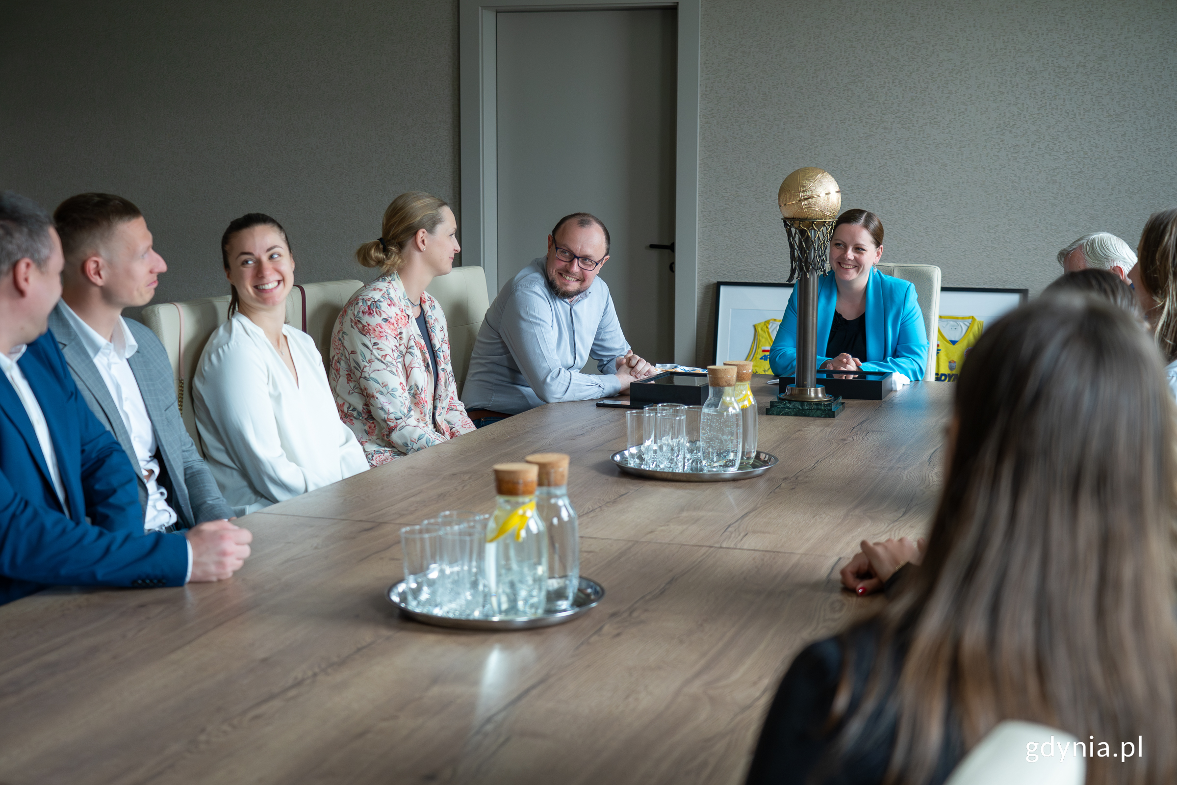 Po imponującym zwycięstwie w finałach Energa Basket Ligi, koszykarki VBW Arka Gdynia spotkały się z prezydent Aleksandrą Kosiorek i dyrektorem zarządzającym Mariuszem Bzdegą. Mistrzynie Polski odebrały gratulacje, a w geście wdzięczności przekazały władzom miasta pamiątkowe medale i koszulki z autografami. Gdynia świętuje razem z nimi, to wspólny triumf całego miasta. To był moment pełen dumy, emocji i wzruszeń. W Urzędzie Miasta Gdyni odbyło się uroczyste spotkanie prezydent Aleksandry Kosiorek oraz dyrektora zarządzającego ds. kultury i sportu Mariusza Bzdęgi z zawodniczkami, kadrą trenerską i zarządem klubu VBW Arka Gdynia, świeżo upieczonymi mistrzyniami Polski w koszykówce kobiet. Gdyńskie koszykarki wróciły na tron po raz czternasty, zdobywając złoty medal Energa Basket Ligi Kobiet. W decydującym meczu finału pokonały PolskaStrefaInwestycji Enea AJP Gorzów Wielkopolsk 87:71, a całej serii dopełniły siłą, zespołowością i nieprzeciętną determinacją. To historyczne zwycięstwo jest zwieńczeniem znakomitego sezonu i powrotem na sam szczyt kobiecej koszykówki w Polsce.Podczas spotkania w gdyńskim magistracie nie zabrakło symbolicznych gestów i sportowych emocji. Reprezentantki VBW Arki Gdynia wręczyły prezydent Aleksandrze Kosiorek oraz dyrektorowi zarządzającemu Mariuszowi Bzdędze pamiątkowe złote medale z fragmentem siatki do kosza z finałowego meczu. Na ręce przedstawicieli władz trafiły także koszulki z autografami drużyny oraz zaprezentowano imponujące trofeum mistrzowskie. Ciężką, złocistą statuetkę, która wzbudziła niemały podziw. Z kolei miasto Gdynia przygotowało dla zawodniczek upominki z lokalnym, gdyńskim akcentem, jako wyraz uznania za reprezentowanie miasta na arenie ogólnopolskiej i promocję jego sportowego ducha. Gratulujemy całemu zespołowi. Wasze zwycięstwo to dowód na to, że Gdynia jest miastem silnych kobiet, pasji i wielkiej determinacji. Jesteśmy z Was bardzo dumni! – mówiła prezydent Aleksandra Kosiorek. W spotkaniu uczestniczyły zawodniczki: Weronika Wesołowska, Agata Gilmajster, Kamila Podgórna, Wiktoria Stasiak, Barbora Wrzesińska (Balintova), Weronika Zalewska, a także członkowie sztabu szkoleniowego i zarządzającego: prezes klubu Bogusław Witkowski, trener i fizjoterapeuta Norbert Wrzesiński, kierownik drużyny Jakub Snopek, oraz dyrektor ds. sportowych Agnieszka Bibrzycka.Na zdjęciu od lewej: Jakub Snopek, Norbert Wrzesiński, Barbora Wrzesińska, Agnieszka Bibrzycka, dyrektor zarządzający Mariusz Bzdęga, prezydent miasta Aleksandra Kosiorek (fot. Natalia Kawalerowicz) Prezes klubu Bogusław Witkowski, podsumowując spotkanie, z dumą opowiedział o sportowych ścieżkach swoich zawodniczek, podkreślając przy tym ogromne znaczenie wsparcia ze strony miasta oraz lokalnych kibiców. Kluczem do zdobycia tytułu mistrzostwa Polski w koszykówce żeńskiej jest zawsze jedna rzecz – drużyna, która jest sobą na co dzień, która jest sobą na treningach, na spotkaniach, w każdej chwili, która jednakowo myśli i dąży konsekwentnie do wyznaczonego celu. Drużyna to znaczy zawodniczki, sztab trenerski, kibice, rodziny, przyjaciele, ci wszyscy, którzy w Gdyni, na Pomorzu, razem chcieli osiągnąć ten sukces – powiedział prezes klubu Bogusław Witkowski. VBW Arka Gdynia po raz kolejny udowodniła, że jej miejsce jest wśród najlepszych. To mistrzostwo pozostanie nie tylko w gablocie trofeów, ale przede wszystkim w sercach gdynian. Galeria zdjęć Pobierz galerię Pamiątkowe koszulki z podpisami gdyńskich złotek (fot. Natalia Kawalerowicz) Pobierz zdjęcie Pamiątkowe medale z fragmentem siatki do kosza z finałowego meczu (fot. Natalia Kawalerowicz) Pobierz zdjęcie Zawodniczki zwycięskiej drużyny VBW Arka Gdynia (fot. Natalia Kawalerowicz) Pobierz zdjęcie Zawodniczki otrzymały od gdyńskiego magistratu torby z upominkami (fot. Natalia Kawalerowicz) Pobierz zdjęcie Prezydent Aleksandra Kosiorek (fot. Natalia Kawalerowicz) Pobierz zdjęcie Na zdjęciu od lewej: Jakub Snopek, Norbert Wrzesiński, Barbora Wrzesińska, Agnieszka Bibrzycka, dyrektor zarządzający Mariusz Bzdęga (fot. Natalia Kawalerowicz) Pobierz zdjęcie Na zdjęciu od lewej: Jakub Snopek, Norbert Wrzesiński, Barbora Wrzesińska (fot. Natalia Kawalerowicz) Pobierz zdjęcie Prezydent Aleksandra Kosiorek i prezes klubu Bogusław Witkowski (fot. Natalia Kawalerowicz) Pobierz zdjęcie Warunki pobierania Wszelkie prawa do zdjęć lub grafik prezentowanych w ramach portalu, należą do Prowadzącego portal lub do podmiotów z nim współpracujących i podlegają ochronie prawnej. Prowadzący portal zezwala na kopiowanie i przedstawianie utworów jedynie w celach niekomercyjnych oraz pod warunkiem zachowania go w oryginalnej postaci i zachowaniem kontekstu tematu, do którego zostało wykorzystaneprzez redakcję gdynia.pl. Opublikowane materiały powinny zawsze zawierać źródło, czyli adres strony www.gdynia.pl. Na publikowanie utworów w innych celach wymagana jest zgoda właściciela strony czyli Prowadzącego portal. Opublikowano: 23.04.2025 13:50 Autor: Natalia Kawalerowicz (natalia.kawalerowicz@gdynia.pl) Zmodyfikowano: 23.04.2025 15:45 Zmodyfikował: Jakub Winiewski