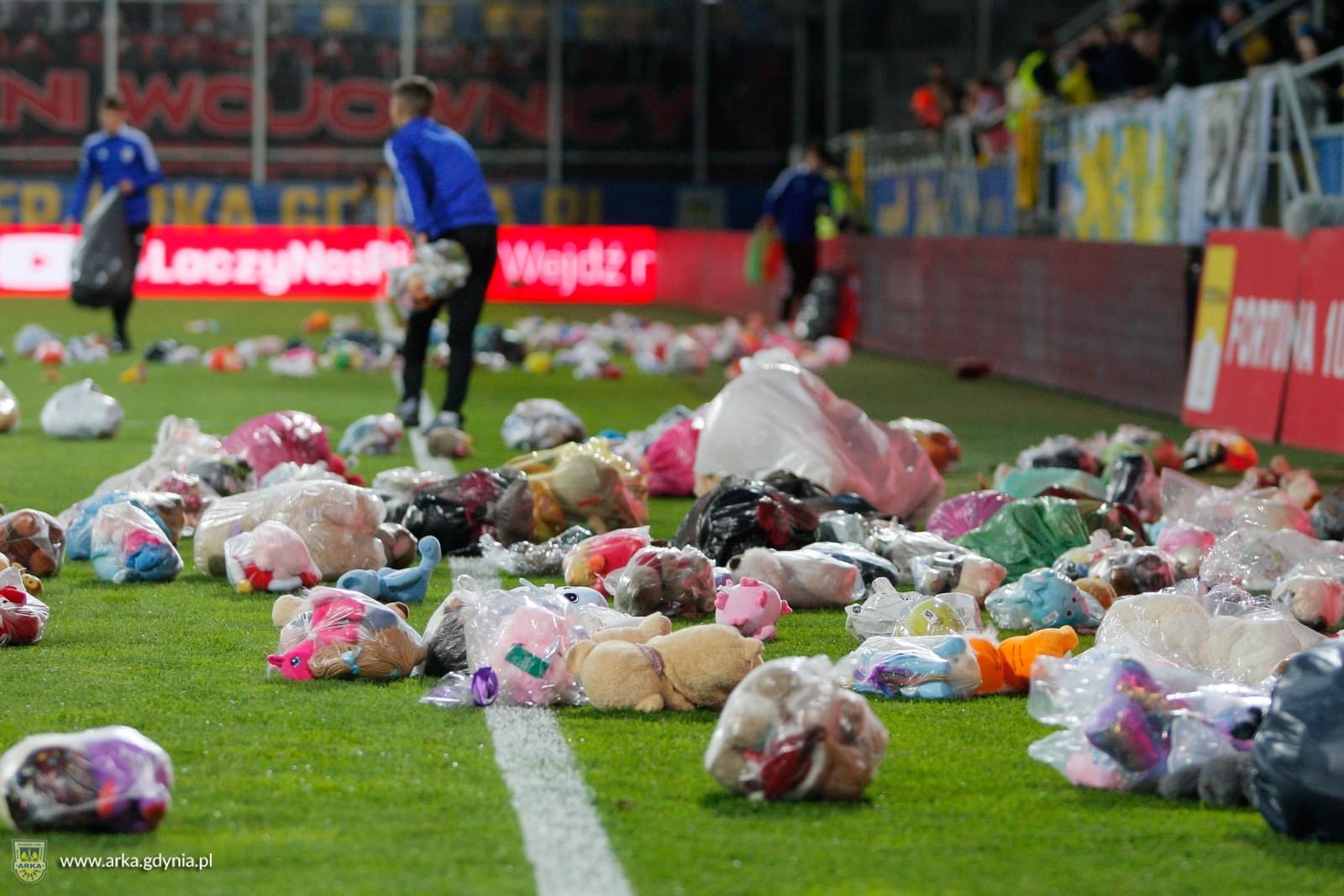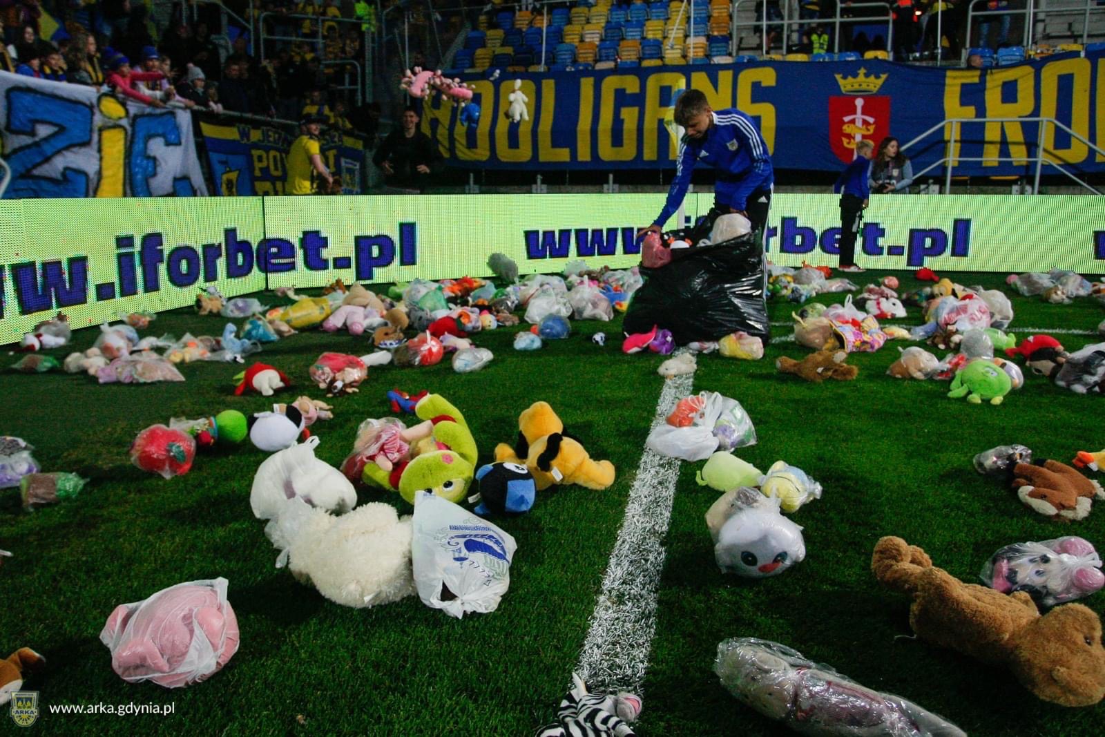 Wzruszenie ściska za gardło, gdy widzi się filmy pokazujące, jak tysiące maskotek lądują na murawie stadionu miejskiego w Gdyni. Wynik akcji charytatywnej kibiców „Podaruj Pluszaka dla Dzieciaka i Zwierzaka”, która odbyła się podczas meczu Arki Gdynia z ŁKS Łódź, przeszedł najśmielsze oczekiwania. Kibice, sympatycy Arki Gdynia, mieszkańcy naszego miasta i nie tylko połączyli siły, by pomóc najsłabszym w piękny, szlachetny sposób. Przypomnijmy: pomysłodawcą akcji jest Marcin Marszałek, gdynianin, stoczniowiec, organizator imprez muzycznych. Opowiedział nam kilka tygodni temu o pomyśle przeprowadzenia akcji charytatywnej, inspirowanym coroczną tradycją w hiszpańskiej Sewilli. Tam bowiem, podczas ostatniego meczu przed wigilią, miejscowa drużyna zachęca kibiców do dzielenia się pluszowymi maskotkami. Te z kolei trafiają potem do dzieci na święta. Akcja charytatywna podczas meczu Ten pomysł Marcin Marszałek, za namową przyjaciół, postanowił zaimplementować właśnie w Gdyni. Okazją stał się mecz 33. kolejki Arka Gdynia - ŁKS Łódź, który odbył się na Stadionie Miejskim w piątek, 26 maja, o godz. 20.30. Plan zakładał, że podczas przerwy meczu kibice rzucą maskotki i pluszowe zabawki, nowe i używane, na murawę boiska. Nowe trafiłyby do Szpitala Dziecięcego Polanki w Gdańsku, Domu Dziecka w Rumi oraz hospicjum dla dzieci Bursztynowa Przystań; używane - do rezydentów Ciapkowa. Marcin Marszałek z narzeczoną Beatą - zorganizowana przez niego akcja odniosła ogromny sukces! Fot. archiwum prywatne Sukces przeszedł najśmielsze oczekiwania! Liczba maskotek, które podczas piątkowego meczu znalazły się na murawie Stadionu Miejskiego w Gdyni, w poniedziałek przekroczyła sumę 4 tysięcy – a liczenie wciąż trwa! Jak przekazał nam Marcin Marszałek, Arkowcom zabrakło worków do zbierania. - Każda z tych placówek, a więc do Szpital Dziecięcy Polanki w Gdańsku, Dom Dziecka w Rumi, hospicjum dla dzieci Bursztynowa Przystań oraz schronisko Ciapkowo, otrzyma taka samą liczbę pluszaków, na dziś wychodzi po tysiąc na każdą z nich – przekazał nam organizator akcji. Dodał, że każda z tych placówek samodzielnie podejmie decyzję, co dalej z pluszakami. Mogą rozdać je swoim podopiecznym w miarę potrzeb, ale mogą też przekazać je na licytację, by zdobyć środki na bieżące funkcjonowanie. Cokolwiek by jednak obdarowane instytucje nie zrobiły z maskotkami, liczy się to, że dzięki dobremu sercu wielu osób uprzyjemnią chwile swoim podopiecznym. Sukces akcji charytatywnej Kibiców Klubu Arka Gdynia „Podaruj Pluszaka dla Dzieciaka i Zwierzaka”! Fot. Arka Gdynia Efekt „wow” i pomoc dzieciom oraz zwierzakom Marcin Marszałek włączył nagrywanie w swoim telefonie, gdy sędzia ogłosił przerwę w meczu. Uwiecznił, jak pierwsze pluszaki wylądowały na murawie, ale z każdą sekundą zabawek przybywało! Po 15 sekundach nagrywania filmu już wiedział, że akcja, która zorganizował wspólnie ze środowiskiem kibiców Arki Gdynia, udała się – i to bardzo! Sukces akcji charytatywnej Kibiców Klubu Arka Gdynia „Podaruj Pluszaka dla Dzieciaka i Zwierzaka”! Fot. Wojciech Szymański/Arka Gdynia - W najśmielszych marzeniach nie przypuszczałem, że zbierzemy aż tyle pluszaków – powiedział w rozmowie z portalem gdynia.pl. – Liczyłem na to, że będzie może z tysiąc maskotek, a tymczasem mamy ich kilka razy więcej. Akcja bardzo się udała! – podkreślił. Wdzięczność i poczucie jedności Co czuł, gdy widział, jak na jego apel odpowiadają kibice, zgromadzeni na trybunach? - Na pewno wzruszenie, bo trudno się nie wzruszyć w takim momencie, ale i poczucie niesamowitej jedności oraz ogromną wdzięczność! Widziałem osoby, których nawet nie znam, a które odpowiedziały na nasz kibicowski apel i przyniosły ze sobą maskotki. W tamtym momencie byliśmy wszyscy razem, zjednoczeni w jakimś celu, by pomóc i to było po prostu piękne – mówi Marcin Marszałek. Pluszaków zebrano tyle, że zabrakło na nie worków! Fot. Arka Gdynia Nie kryje słów podziękowań dla wszystkich, dzięki których piątkowa akcja charytatywna okazała się tak ogromnym sukcesem. - Należy się dla wszystkich wielkie słowo „dziękuję”, no a my działamy dalej – mówi Marszałek. Wszystko wskazuje na to, że akcja zbierania pluszowych maskotek podczas meczów będzie w Gdyni kontynuowana i – jak zapowiada Marcin Marszałek – będzie się rozwijać. Wielki sukces akcji „Podaruj Pluszaka dla Dzieciaka i Zwierzaka”! Fot. Wojciech Szymański/Arka Gdynia Wszyscy razem, by pomóc potrzebującym Informacja o akcji ukazała się na portalu gdynia.pl. Patronatem medialnym objął ją portal trójmiasto.pl oraz Radio Eska. Samo wydarzenie było propagowane na portalu społecznościowym Facebook. Środowisko kibiców Arki udostępniało również informację dalej, dzięki czemu w akcje zbierania pluszaków jeszcze przed meczem zaangażowali się m.in. strażacy z Mieroszyna oraz uczniowie klas 1-3 ze Szkoły Podstawowej w Przodkowie. Do akcji zbierania maskotek włączyli się zatem nie tylko dorośli kibice, ale i najmłodsi – wszyscy w jednym celu, by pomóc tym, którzy tej pomocy potrzebują. Bo bycie dobrym człowiekiem nie jest przecież zależne od wieku! Opublikowano: 31.05.2023 14:17 Autor: Zygmunt Gołąb (z.golab@gdynia.pl) Zmodyfikowano: 02.06.2023 13:38 Zmodyfikował: Dominika Sobiech