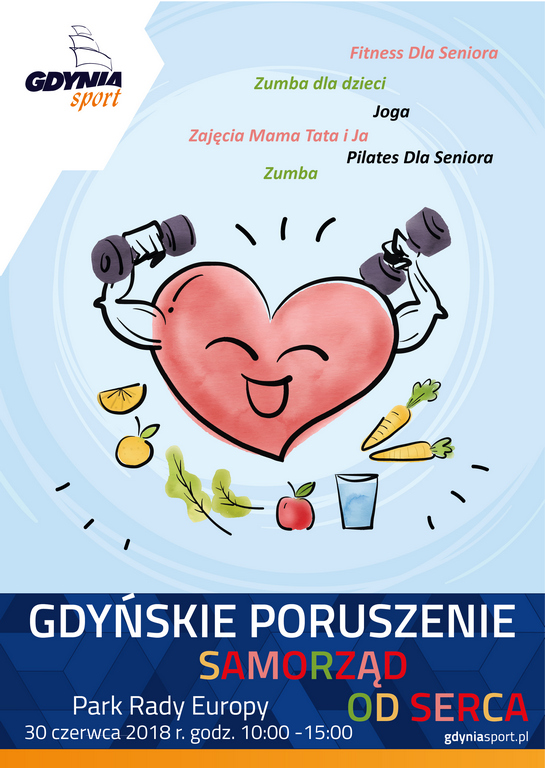 „Gdyńskie Poruszenie: Samorząd od serca” to niezwykły festyn pełen zdrowia i sportu. Do Parku Rady Europy zapraszamy wszystkich miłośników aktywności na świeżym powietrzu. Na osoby w każdym wieku czekać będą liczne bezpłatne atrakcje oraz gadżet-niespodzianka. Początek pięciogodzinnej fiesty w sobotę o godzinie 10. Wstęp bezpłatny.Festyn ma na celu zachęcenie wszystkich mieszkańców miasta oraz sąsiadów z całego Trójmiasta do dbania o swoje zdrowie, udzielenie informacji, gdzie i jak często powinno się wykonywać badania, a także namówienie do profilaktyki w postaci aktywności fizycznej na poziomie sportu kwalifikowanego w klubach sportowych, jak również form rekreacyjnych, które są dostępne dla każdego, niezależnie od doświadczenia sportowego czy wieku.Festyn trwać będzie od godziny 10 do 15. Podczas wydarzenia, które odbędzie się w Parku Rady Europy, będzie można skorzystać z licznych atrakcji. W programie m. in. zajęcia prowadzone przez instruktorów Gdyńskiego Poruszenia, badania profilaktyczne w punkcie Centralnego Ośrodka Medycyny Sportowej czy relaks przy darmowych napojach bezalkoholowych.– Mamy nadzieję, że gdynianie chętnie skorzystają z bogatej oferty sportowej, którą przygotowaliśmy na tę okazję – mówi dyrektor Gdyńskiego Centrum Sportu Marek Łucyk. I dodaje: – Chcemy wspólnie z mieszkańcami cieszyć się z prestiżowego wyróżnienia, za jakie bez wątpienia można uznać otrzymanie tytułu „Samorząd od serca”.Przypomnijmy, że nagrodę wręczaną przez kampanię „Ciśnienie na życie” Gdynia otrzymała na początku czerwca. Kapituła wyróżniła jednostki terytorialne, które w szczególny sposób zachęcają mieszkańców do regularnych badań oraz realizują rozmaite programy edukacyjno-zdrowotne. Konkursowe jury postanowiło nagrodzić miasto z morza i marzeń za m. in. niebanalne metody promocji profilaktyki zdrowotnej.Harmonogram festynu:10:00 Zumba dla dzieci (prowadząca: Monika Tran Van)11:00 Pilates Dla Seniora (Monika Raszke)12:00 Zumba (Monika Tran Van)13:00 Joga (Elżbieta Kucharska)14:00 Fitness Dla Seniora (Magdalena Szelezińska)10:30 Zajęcia Mama Tata i Ja11:30 Zajęcia Dla kobiet w ciąży – potrzebne jest zaświadczenie od lekarza prowadzącego ciążę o braku przeciwwskazań do udziału w zajęciach Opublikowano: 29.06.2018 12:13 Autor: Michał Kozłowski (m.kozlowski@gdynia.pl) Zmodyfikowano: 29.06.2018 14:11 Zmodyfikował: Agnieszka Janowicz