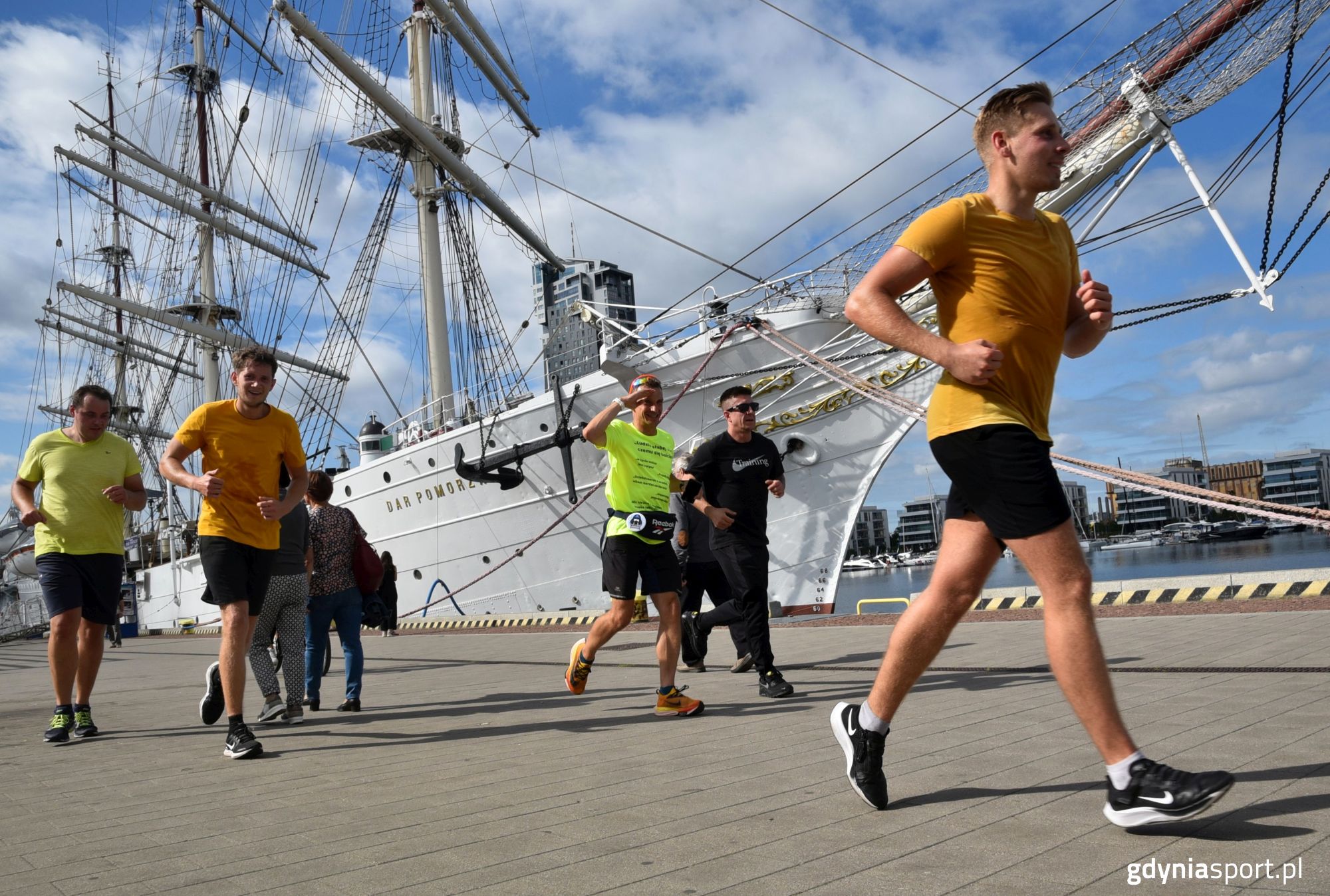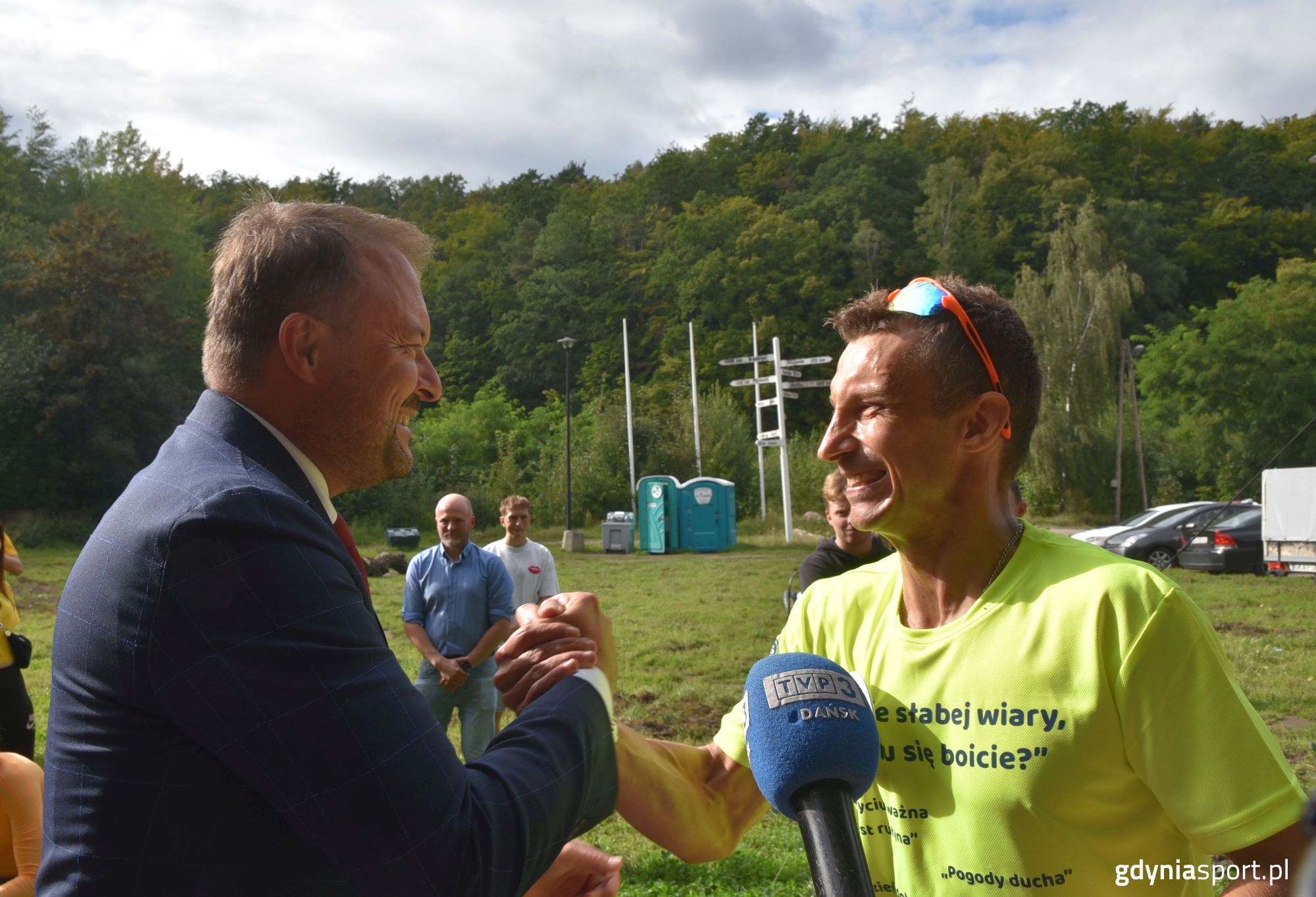 Mamy nowego rekordzistę Guinnessa! Artur Woźniak przebiegł 113 półmaratonów dzień po dniu. Każdego ranka decydował się pokonać dystans ponad 21 kilometrów. Wczoraj odbyła się celebracja jego sukcesu, a na mecie gratulacje m.in. składał Marek Łucyk, wiceprezydent Gdyni ds. rozwoju. 37-letni mieszkaniec Gdyni nie zamierza na tym kończyć – jego marzeniem jest przebiegnięcie 888 półmaratonów z rzędu. Artur w swój 113. półmaraton ruszył razem z najbliższymi. Kilka osób nawet zdecydowało się wspierać przyjaciela na każdym kilometrze, biegnąc i jadąc na rowerze razem z nim. Na mecie nie zabrakło również chętnych osób do oklaskiwania sukcesu gdynianina. Na Polance Redłowskiej czekała na niego się spora rzesza sympatyków. – Dzisiaj, podczas rekordowego biegu nr 113, mieliśmy owoc całego mojego wyzwania. Zebrało się naprawdę dużo osób, właśnie po to aby mi pogratulować i podziękować, za to, że ich codziennie zachęcałem do aktywności sportowej. To jest przepiękne! – z radością na twarzy komentował Artur Woźniak, zaraz po wbiegnięciu na linię mety. Artur Woźniak na moment przed rozpoczęciem biegu nr 113. (fot. Marek Urbaniak / GCS)Wbiegającego na linię mety nowego rekordzistę Guinnessa przywitał m.in. Marek Łucyk, wiceprezydent Gdyni ds. rozwoju, który złożył gratulacje oraz wręczył symboliczny numer startowy „888” na odbywający się 11 listopada Bieg Niepodległości. – Na Polance Redłowskiej przywitaliśmy nowego gdyńskiego rekordzistę Guinnessa. Dotychczasowy wynik wynosił 112 półmaratonów dzień po dniu. Pan Artur pobiegł właśnie po raz 113. Jak sam twierdzi to jest dla niego za mało. Wymyślił, że zrobi to 888 razy, dlatego mamy dla niego specjalną pamiątkę, pakiet startowy na Bieg Niepodległości w Gdyni, właśnie z takim numerem – mówi Marek Łucyk, wiceprezydent Gdyni ds. rozwoju. Marek Łucyk, wiceprezydent Gdyni ds. rozwoju składający gratulacje Arturowi Woźniakowi. (fot. Marek Urbaniak / GCS)Po ukończeniu rekordowego półmaratonu celebracja sukcesu na Polance Redłowskiej trwała do późnego popołudnia. Gratulacjom i zabawie w dobrej atmosferze nie było końca. Teraz przed Arturem Woźniakiem dalsza podróż w marzenia. Jego najbardziej ambitnym celem jest ukończenie 888 półmaratonów dzień po dniu. Artur Woźniak biegnący 113. półmaraton razem z przyjaciółmi. (fot. Marek Urbaniak / GCS)Przypomnijmy, że Artur bieganie półmaratonów dzień po dniu rozpoczął 15 maja. Każdego poranka, przed pracą, musi zmierzyć się z dystansem ponad 21 kilometrów. Artur mieszka przy ulicy Morskiej, niemal codziennie przemierza tę samą trasę, która wiedzie m.in. przez Grabówek, Centrum, Orłowo, aż do jego pracy, gdzie finiszuje. Startuje o godz. 5:30, a bieg zajmuje mu około dwóch godzin. Czasem tylko w weekendy wprowadza w niej pewne modyfikacje.Co ciekawe, cała procedura wpisania do księgi Guinnessa nie jest taka łatwa. Gdynianin musi spełnić wiele formalności. Podczas biegu nagrywa siebie co około 1,5 kilometra aby udowodnić, że to faktycznie on przemierza trasę. Dodatkowo, zbiera podpisy na specjalnym protokole oraz robi sobie zdjęcia ze świadkami. Trasę przemierza z dwoma zegarkami rejestrującymi dystans i czas, aby wyeliminować ryzyko zepsucia (awarii) elektroniki. Wszystko po to, aby jak najrzetelniej udowodnić, że to faktycznie on każdego dnia przemierza półmaraton. W całej procedurze pomaga Arturowi firma specjalizująca się w prowadzeniu dokumentacji dla potencjalnych rekordzistów Guinnessa. Opublikowano: 05.09.2023 10:17 Autor: Paweł Stasiak (p.stasiak@gdyniasport.pl) Zmodyfikowano: 06.09.2023 09:42 Zmodyfikował: Karolina Szypelt