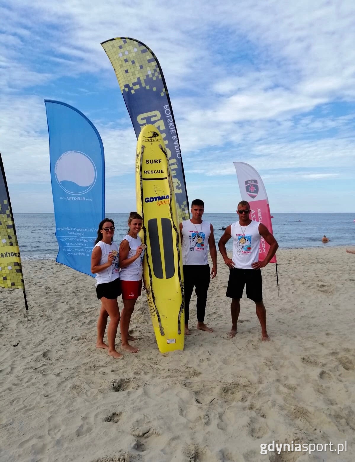 W miniony weekend na plaży w Kątach Rybackich odbyły się Mistrzostwa Polski w Ratownictwie Morskim. Gdyńscy ratownicy od lat należą do krajowej czołówki, co udowodnili i tym razem, zdobywając osiem medali w poszczególnych konkurencjach. Co więcej, nasze panie w klasyfikacji generalnej zajęły drugiej miejsce, a Weronika Wyszyńska dołożyła brązowy medal w rywalizacji indywidualnej. Organizatorem mistrzostw była Fundacja RescueHouse.Reprezentacja w składzie: Patrycja Terech, Weronika Wyszyńska, Daniel Baranowski i Maciej Dettlaff potwierdziła wysoką klasę, uzyskując świetnie wyniki w rywalizacji zespołowej. Kobiety: mistrzostwo Polski w konkurencji wyścig łodzi ratowniczych;2. miejsce w konkurencji wyścig podwójnych desek ratowniczych;2. miejsce w konkurencji wyścig z pasem ratowniczym;3. miejsce w konkurencji Rescue Brothers. Mężczyźni:mistrzostwo Polski w konkurencji wyścig łodzi ratowniczych;3. miejsce w konkurencji wyścig podwójnych desek ratowniczych.Miło nam poinformować, że nasze reprezentantki zdobył srebrny medal w klasyfikacji generalnej.Sukcesów nie zabrakło również w zmaganiach indywiualnych. W klasyfikacji generalnej na trzecim stopniu podium zameldowała się Weronika Wyszyńska. Kobiety: mistrzostwo Polski w konkurencji wyścig desek ratowniczych wywalczyła Weronika Wyszyńska; 2. miejsce w konkurencji pływania;4. miejsce w konkurencji sprint po plaży zajeła Patrycja Terech. Mężczyźni:mistrzostwo Polski w konkurencji sprint po plaży wywalczył Maciej Dettlaff;4. miejsce w konkurencji sprint po plaży zajął Daniel Baranowski. Galeria zdjęć Pobierz galerię Gdyńscy ratownicy na medal(e) / fot. gdyniasport.pl Pobierz zdjęcie Gdyńscy ratownicy na medal(e) / fot. gdyniasport.pl Pobierz zdjęcie Gdyńscy ratownicy na medal(e) / fot. gdyniasport.pl Pobierz zdjęcie Gdyńscy ratownicy na medal(e) / fot. gdyniasport.pl Pobierz zdjęcie Warunki pobierania Wszelkie prawa do zdjęć lub grafik prezentowanych w ramach portalu, należą do Prowadzącego portal lub do podmiotów z nim współpracujących i podlegają ochronie prawnej. Prowadzący portal zezwala na kopiowanie i przedstawianie utworów jedynie w celach niekomercyjnych oraz pod warunkiem zachowania go w oryginalnej postaci i zachowaniem kontekstu tematu, do którego zostało wykorzystaneprzez redakcję gdynia.pl. Opublikowane materiały powinny zawsze zawierać źródło, czyli adres strony www.gdynia.pl. Na publikowanie utworów w innych celach wymagana jest zgoda właściciela strony czyli Prowadzącego portal. Opublikowano: 03.08.2020 12:39 Autor: Michał Kozłowski (m.kozlowski@gdynia.pl) Zmodyfikowano: 03.08.2020 15:19 Zmodyfikował: Paweł Jałoszewski