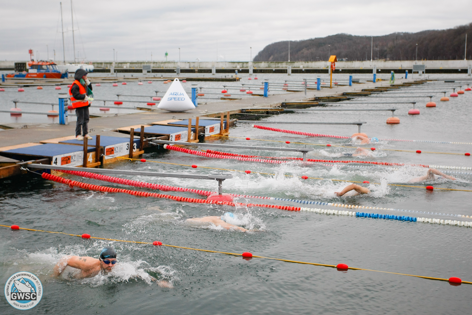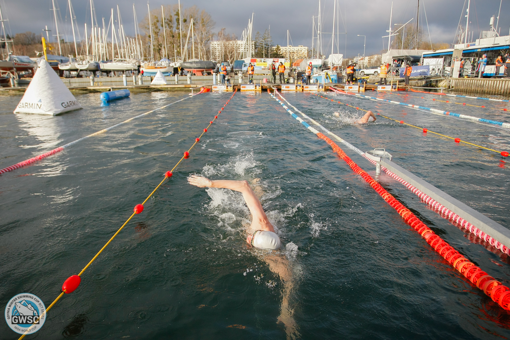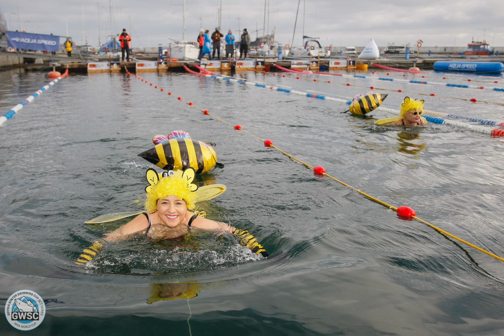 W dniach 27-28 stycznia 2024 roku w Marinie Gdynia odbyła się piąta jubileuszowa edycja zawodów Gdynia Winter Swimming Cup BCT SERIES. Impreza posiadała rangę Pucharu Świata w zimowym pływaniu federacji IWSA (International Winter Swimming Association) oraz Międzynarodowych Mistrzostw Polski. Po raz pierwszy w historii zimowego pływania zawody o tak wysokiej randzie Pucharu Świata odbywały się w naszym kraju. Do rywalizacji stanęło ponad 280 uczestników z 15 krajów, którzy łącznie do lodowatych wód zatoki Gdańskiej wskakiwali ponad 750 razy.Międzynarodowa obstawa, profesjonalna obsługa sędziowska, grono wolontariuszy oraz sztab organizacyjny złożyły się na ogromny sukces wydarzenia. Podczas oficjalnego otwarcia zawodów usłyszeć można było hymn Polski, a swoje słowa do uczestników skierowali: Marek Łucyk – wiceprezydent Gdyni do spraw rozwoju, Mariia Yrjo‐Koskinen – prezes federacji IWSA, Michał Kużajczyk – dyrektor Handlowy sponsora tytularnego BCT Gdynia oraz organizatorzy – Piotr Biankowski i Aleksandra Kabelis.Organizatorzy i goście z wiceprezydentem Gdyni ds. rozwoju Markiem Łucykiem podczas otwarcia zawodów Gdynia Winter Swimming Cup BCT SERIES (fot. GWSC)Rywalizacja rozegrana została na 25 m basenie wybudowanym pomiędzy pomostami w Marinie Gdynia. Temperatura wody w sobotę wynosiła 2.42 C, natomiast w niedzielę „ogrzała się” do 2,65 C. Wyścigi odbywały się na dystansach od 25 m do 1000 m. Na najdłuższym dystansie uczestnicy rywalizowali o tytuł „Baltic Cold Beast”. Tu w kategorii open zwyciężył Mateusz Pawlica, natomiast wśród kobiet triumfowała Bárbara Hernández z Chile.Bárbara Hernández -Triumfatorka Gdynia Winter Swimming Cup BCT SERIES na dystansie 1000 m (fot. GWSC)W wodzie zobaczyć można było również dzieci walczące o miano „Morświnka”, a także wyścigi w przebraniach „Swim For Fun” oraz wyścig sztafetowy 4x25 m.Uczestniczka Gdynia Winter Swimming Cup BCT SERIES płynąca w przebraniu (fot. GWSC)Obecnie organizatorzy czekają na oficjalne potwierdzenie rekordu świata, który padł na jednym z sprinterskich dystansów. Pobicie rekordu zostanie wkrótce sprawdzone przez federację IWSA.Pływacy w trakcie zawodów Gdynia Winter Swimming Cup BCT SERIES (fot. GWSC)Jak co roku, zawodom towarzyszyła charytatywna zbiórka na rzecz podopiecznych Fundacji Ronalda McDonalda – aby rodzina mogła być razem. W tracie trwania imprezy przeprowadzone zostały darmowe, profilaktyczne badania USG dzieci w wieku od 9 miesięcy do 6 lat. Badania odbyły się w specjalistycznym Mobilnym Ambulansie Fundacji Ronalda McDonalda, którego przyjazd sfinansowali organizatorzy zawodów Aleksandra Kabelis i Piotr Biankowski. Przez cały weekend do badań stawiło się 141 rodzin z dziećmi.Pływak podczas zawodów Gdynia Winter Swimming Cup BCT SERIES (fot. GWSC)Patronat honorowy nad wydarzeniem objął Minister Sportu i Turystyki Sławomir Nitras, Prezydent Miasta Gdynia Wojciech Szczurek oraz Marszałek Województwa Pomorskiego Mieczysław Struk. Sponsorem tytularnym zawodów był BCT – Bałtycki Terminal Kontenerowy Gdynia, partnerami strategicznymi – miasto Gdynia oraz Gdyńskie Centrum Sportu. Opublikowano: 30.01.2024 09:43 Autor: Piotr Suchenia (p.suchenia@gdyniasport.pl) Zmodyfikowano: 30.01.2024 10:44 Zmodyfikował: Agnieszka Janowicz
