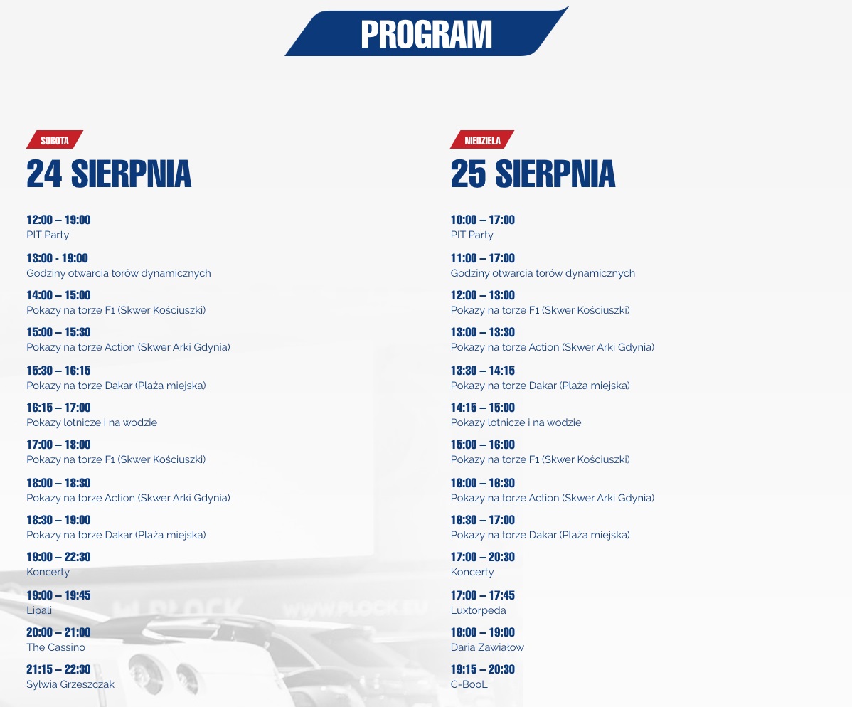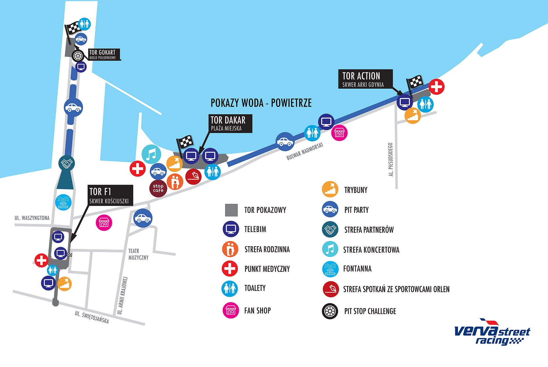 Verva Street Racing, a więc największa motoryzacyjna impreza w Polsce odbędzie się 24 i 25 sierpnia #wGdyni. Podczas dziesiątej edycji wydarzenia, gwiazdy sportów motorowych będą jeździć, ścigać się, a nawet latać. Organizatorzy zaplanowali niesamowite atrakcje m.in. pokazy załogi Orlen Team, w tym Roberta Kubicy, który w Gdyni pojawi się wraz z kolegą ze stajni ROKiT Williams Racing, Georgem Russellem. Wstęp wolny. To duże wydarzenie dla miasta i jego mieszkańców, z którym wiążą się jednak istotne zmiany w organizacji ruchu. Przedstawicieli miasta nie trzeba było długo namawiać do pojęcia współpracy. - To dla nas ogromne wyróżnienie. Cieszę się, że jesteśmy częścią tak wielkiego projektu, realizowanego z myślą o mieszkańcach i turystach w każdym wieku - uzupełnia prezydent Gdyni Wojciech Szczurek.Verva Street Racing wchodzi na zupełnie inny poziom rozrywki i emocji. Sierpniowa edycja po raz pierwszy w historii potrwa aż dwa dni. - Sport w naszej strategii sponsoringowej odgrywa istotną rolę. PKN ORLEN jako czempion polskiej gospodarki konsekwentnie angażuje się we wspieranie motorsportu, w którym nasi zawodnicy odnoszą sukcesy na międzynarodowych arenach. Verva Street Racing to wydarzenie na najwyższym poziomie. Jego jubileuszowa edycja odbędzie się Gdyni. Kolejna prospołeczna inicjatywa na Pomorzu pozwoli nam jeszcze bardziej zacieśnić relacje z tym regionem – mówi Daniel Obajtek, Prezes Zarządu PKN ORLEN. Od kiedy do wielkiego ścigania wrócił Robert Kubica, wśród Polaków gigantycznie wzrosło zainteresowanie F1. Żeby jednak z bliska przyjrzeć się umiejętnościom kierowców, trzeba liczyć się z dalekimi i drogimi wyprawami. Ale nie podczas Verva Street Racing. Nasz jedyny kierowca w F1 na torze ulicznym w Gdyni pokaże możliwości swojego bolidu. To najbardziej wyjątkowe przedsięwzięcie podczas tegorocznej VERVA Street Racing. Na skwerze Kościuszki powstanie wyjątkowy tor z siedmioma zakrętami i jednym ciasnym nawrotem. Kubica stanie do pokazowej jazdy razem z kolegą z teamu ROKiT Williams Racing George’m Russellem. Co warte podkreślenia, obaj wsiądą do bolidu doskonale znanego z torów Formuły 1. Na niespełna kilometrowym torze superszybkie samochody rozpędzą się do prędkości około 200 km/h. Organizatorzy nie zapominają również o bezpieczeństwie. Tor od trybun oddzielą potężne betonowe zapory, zadbano również o odpowiednie oświetlenie toru i profesjonalne pola startowe. Verva Street Racing po raz kolejny udowadnia, że wyznacza światowe standardy w pokazach motoryzacyjnych.Uliczny tor w Gdyni będzie areną zmagań nie tylko Kubicy i Russella. Swoje umiejętności driftowe pokaże tu także Kuba Przygoński, aktualny mistrz Polski w driftcie. Do tego nie zabraknie także całego przekroju sportów samochodowych. Na torze zobaczymy najlepszych polskich kartingowców w kategoriach wiekowych ROK i Rotax. Do tego wyścigi KIA Platinum Cup i samochodów GT i Le Mans, a także występy motocyklistów. Bardzo ciekawie zapowiada się wyścig reprezentantów Polski na żużlu, którzy wyjątkowo zrobią pokaz na asfaltowej nawierzchni. Drugi tor dynamiczny powstanie na Skwerze Arki Gdynia. A tam coś, dla tych, którzy obok sportowej rywalizacji lubią odrobinę szaleństwa. Zobaczymy tam chociażby driftującą ciężarówkę, pokaz FMX, stunt czy Gymkhany, a także jednego z najbardziej perspektywicznych kierowców młodego pokolenia – Kacpra Wróblewskiego z ORLEN Team. VERVA Street Racing to jednak przede wszystkim okazja do spędzenia czasu z rodziną. W tym roku strefa dla najmłodszych będzie największą w historii cyklu. Oczywiście nie zabraknie tam dmuchańców, skoczni, trampolin, zjeżdżalni czy bungee, a także strefy do zabaw klockami przy obecnością animatorów-konstruktorów. Warto też wybrać się do „Stacji Kreacja”. Tam najmłodsi własnoręcznie stworzą samochód wyścigowy. Z kolei każdy, który marzy, aby zostać strażakiem będzie miał okazję przebrać się w profesjonalny strój i ugasić gaśnicą pożar. Dla nieco starszych przygotowano symulatory jazdy samochodem rajdowym, motocyklem sportowym i żużlowym oraz bolidem F1. Z kolei dorośli będą mogli sprawdzić się w strefie bezpiecznej jazdy z symulatorem zderzenia czy dachowania oraz alkogogle, które uzmysłowią, co czuje kierowca będący pod wpływem alkoholu oraz refleksomierze. Verva Street Racing to także okazja zobaczenia z bliska wspaniałych samochodów. Na Pit Party podziwiać będzie można ponad 500 pojazdów podzielonych na wiele kategorii. Na pewno największe wrażenie zrobią Supercars, czyli te najszybsze i najbardziej luksusowe. A oprócz nich także amerykańskie, militarne, terenowe i te pamiętające czasy PRL. A jak wiele można zmienić w standardowym samochodzie? Odpowiedź na to pytanie będzie można znaleźć w strefie tuning. Na wszystkich, którzy zgłodnieją czekać będą foodtrucki oraz Stop Cafe, znane ze stacji benzynowych PKN ORLEN. A popołudniem i wieczorem sceną zawładnie muzyka na żywo. W sobotę od godz. 19 zagrają Lipali, The Cassino i Sylwia Grzeszczak, w niedzielę od godz. 17 Luxtorpeda, Daria Zawiałow i C-Bool. Wstęp na wszystkie wydarzenia jubileuszowej edycji Verva Street Racing jest bezpłatny. Zmiany w organizacji ruchu:1.skwer Kościuszki, al. Jana Pawła II, ul. Żeromskiego i ul. Waszyngtona:· od dnia 19.08 na skwerze Kościuszki rozpoczną się prace związane z montażem infrastruktury pokazów;· w dniach 21-27.08 będzie zamknięty parking na al. Jana Pawła II, na wysokości Akwarium Gdyńskiego MIR;· o północy z 22 na 23.08 skwer Kościuszki i al. Jana Pawła II zostaną zamknięte dla ruchu ogólnego;· łącznie ze skwerem Kościuszki dla ogólnego ruchu zostaną zamknięte: odcinek ul. Żeromskiego pomiędzy ul. Pułaskiego a skwerem Kościuszki oraz odcinek ul. Waszyngtona pomiędzy ul. Pułaskiego a skwerem Kośc