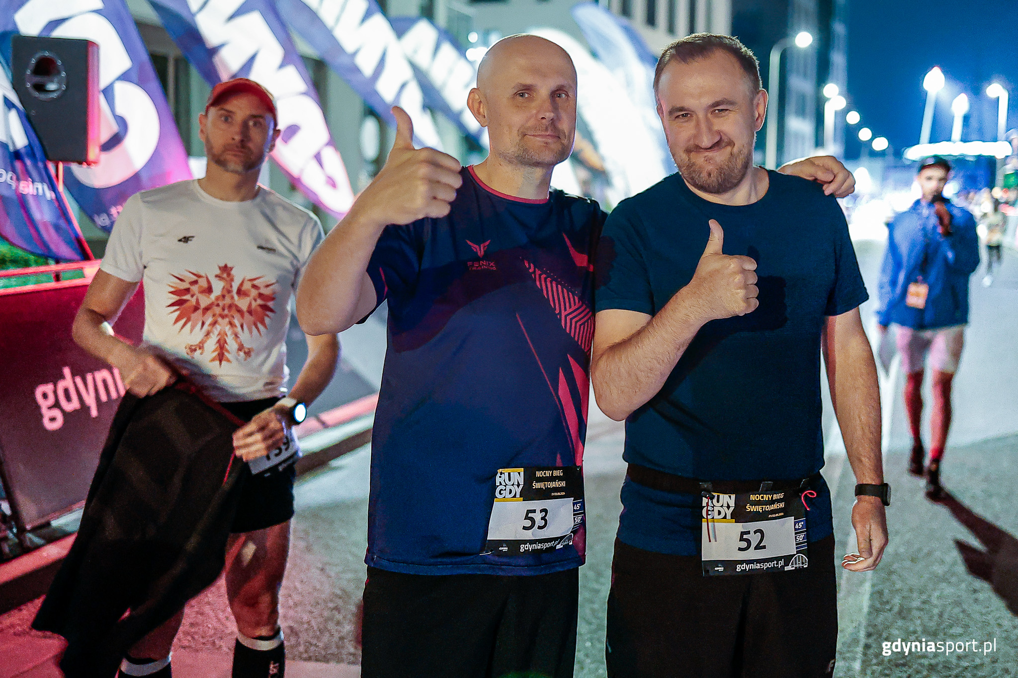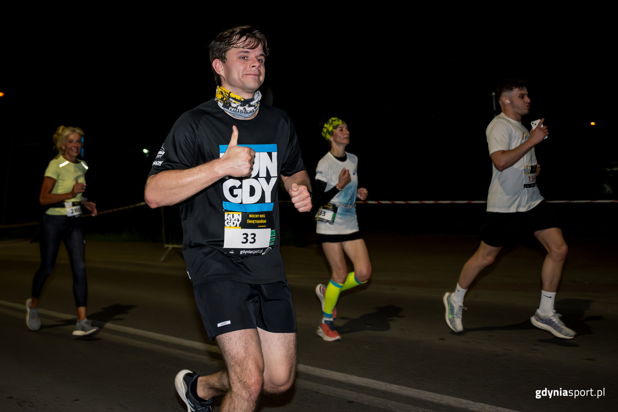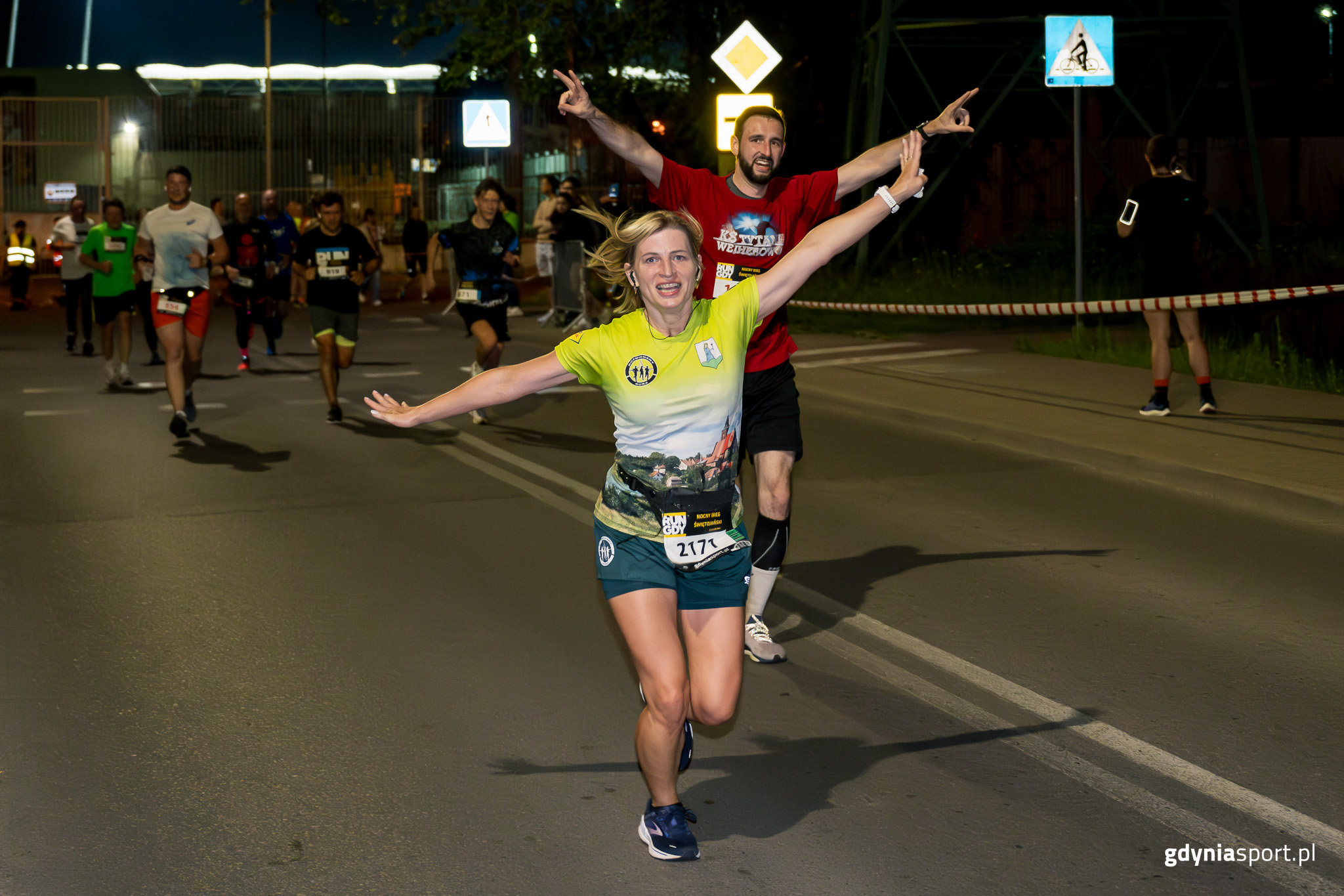 W nocy z piątku na sobotę Gdynia ponownie stała się miejscem sportowej rywalizacji za sprawą tysięcy entuzjastów biegania z całego kraju. Byli wśród nich zarówno amatorzy, jak i profesjonaliści, gotowi podjąć wyzwanie i wziąć udział w wyjątkowym Nocnym Biegu Świętojańskim, który przemknął ulicami miasta. Honorowymi starterami Biegu Głównego byli wiceprezydenci miasta Gdyni: Tomasz Augustyniak oraz Bartłomiej Austen, którzy wraz z niespełna 2500 zawodnikami również wyruszyli na 10 km trasę. · Nocny Bieg Świętojański w Gdyni zakończony· Zwyciężył Andrzej Rogiewicz i Sviatlana Sanko· W ramach imprezy odbyły się biegi dla dzieci i młodzieży, Bieg 2024 i Marsz Nordic Walking Maluchy przetarły szlak Start Biegu Malucha podczas Nocnego Biegu Świętojańskiego w Gdyni (fot. gdyniasport.pl)Tradycją gdyńskich biegów jest rywalizacja najmłodszych. W czerwcowy wieczór na starcie stanęły więc Maluchy, Starszaki, Młodzicy i Juniorzy. Do pokonania mieli trasy liczące od 100 m, w przypadku najmłodszych, do 1,5 km dla kategorii najstarszych. Dla wielu z nich były to pierwsze kroki postawione na imprezie biegowej, dlatego pamiątkowe medale, które otrzymały mijając linię mety, stały się wspaniałą sportową pamiątką, z którą zasnęły w łóżkach zamiast pluszowego misia. – W biegach organizowanych przez jednostki miejskie chodzi właśnie o to, żeby krzewić kulturę fizyczną i promować sport wśród najmłodszych. Kierowanie tego typu imprez, dla nich, jest kluczowe, co widać było na linii startu. W tym roku w biegach dziecięcych i młodzieżowych wystartowało ponad 500 osób, co pokazało, że zainteresowanie tymi biegami jest bardzo duże i odradza się po okresie pandemii – podsumował wyczyny najmłodszych Tomasz Augustyniak Wiceprezydent Miasta Gdyni ds. innowacji. 2024 metry dla początkujących Uśmiechnięci biegacze na trasie Nocnego Biegu Świętojańskiego w Gdyni (fot. Jacek Klejment, Wojtek Rojek / gdyniasport.pl)Dla wszystkich, którzy nie czuli się na siłach zmierzyć się z 10 km trasą czekał bieg towarzyszący o długości 2024 metrów. Na jego starcie stanęło ponad 100osób, które ramię w ramię, z uśmiechem na ustach dotarły do mety. Każdy kto ukończył został zwycięzcą, za co w nagrodę otrzymał okolicznościowy medal i brawa od licznie zgromadzonych kibiców. – Od czegoś trzeba zacząć. Taki dystans był idealny na rozpoczęcie przygody z bieganiem. Na początku obawiałam się, że nie dam rady, ale poniedziałkowe treningi biegowe dla kobiet organizowane przez Gdyńskie Centrum Sportu utwierdziły mnie, że bieganie nie jest takie straszne, jak się wydaje – skomentowała na gorąco po biegu Aleksandra, dla której był to pierwszy występ w biegu ulicznym. Szybka trasa pełna wyzwań Start Nocnego Biegu Świętojańskiego w Gdyni (fot. Jacek Klejment, Wojtek Rojek / gdyniasport.pl)O godzinie 23:59 niespełna dwa i pół tysiąca biegaczek i biegaczy ruszyło na 10 km trasę biegu głównego posiadającą atest Polskiego Związku Lekkiej Atletyki. Zaczynała się ona od lotnej premii górskiej usytuowanej na podbiegu pod Witomino ulicą Małokacką. Najszybciej nocny odcinek pokonali Cosmas Kyeva z Kenii i Natalia Semenowicz z Ukrainy. Oboje za swój wyczyn zainkasowali czeki na 1000 zł.Po zbiegnięciu z witomińskiego wzgórza uczestnicy Nocnego Biegu Świętojańskiego skierowali swoje kroki na Aleję Zwycięstwa i ulicę Świętojańską, skąd po nawrocie ruszyli w kierunku obiektów Gdyńskiego Centrum Sportu. Tam na wysokości Polsat Plus Areny Gdynia znajdowała się meta zawodów.Andrzej Rogiewicz na trasie Nocnego Biegu Świętojańskiego w Gdyni (fot. Jacek Klejment, Wojtek Rojek / gdyniasport.pl)Jako pierwszy z czasem 31minut 17 sekund zwyciężył Andrzej Rogiewicz, który triumfował również w Biegu Urodzinowym z Decathlon oraz ubiegłorocznym Nocnym Biegu Świętojańskim. – Od czwartego kilometra zwolniłem, gdyż zobaczyłem że Kenijczyk jest daleko z tyłu i nie trzeba było forsować tempa – powiedział po przybiegnięciu na metę mecie Rogiewicz. Uśmiechnięta zawodniczka podczas Nocnego Biegu Świętojańskiego w Gdyni (fot. Jacek Klejment, Wojtek Rojek / gdyniasport.pl)Na drugiej pozycji uplasował się Cosmas Kyeva. Trzecie miejsce zajął Patryk Sowiński. Wśród pań, triumfowała Sviatlana Sanko, finiszując po 34 minutach i 27 sekundach. Podium uzupełniły odpowiednio Natalia Semenowicz i Beata Niemyjska.Biegacze na trasie Nocnego Biegu Świętojańskiego w Gdyni (fot. Jacek Klejment, Wojtek Rojek / gdyniasport.pl)Oprócz najszybszych biegaczy, jak zawsze na trasie gdyńskich zawodów, mogliśmy podziwiać amatorów. Dla nich bieganie to przygoda i ogromna radość z każdego pokonanego kilometra, a nie tylko walka o rekordy życiowe i miejsca na podium. – Po zimowym starcie w Biegu Urodzinowym Gdyni od razu zapisałem się na pozostałe dwa, czyli na Nocny i Niepodległości. Urzekł mnie klimat i fakt, że mogłem pobiec ulicami mojego miasta, po których na co dzień poruszam się samochodem lub rowerem – powiedział Krzysztof, uczestnik biegu głównego. – W tym roku wkręciłem się na dobre w bieganie i postanowiłem, że wystartuję w każdym biegu z cyklu GPX. Do zobaczenia w listopadzie – zakończył. Uczestnicy Marszu Nordic Walking w Gdyni (fot. Jacek Klejment, Wojtek Rojek / gdyniasport.pl)Z 10 km trasą zmagali się również miłośnicy maszerowania z kijkami, czyli Nordic Walkingu. Zwyciężył Maciej Kłos, a jako pierwsza z kobiet triumfowała Joanna Labuda. Otrzymali oni za wygraną okazałe puchary i nagrody rzeczowe ufundowane przez Partnerów wydarzenia. Niezwykła atmosfera, sportowa rywalizacja i biegowa integracja Bartłomiej Austen, wiceprezydent Gdyni ds. rozwoju i Tomasz Augustyniak wiceprezydent Gdyni ds. innowacji na starcie Nocnego Biegu Świętojańskiego (fot. Jacek Klejment, Wojtek Rojek / gdyniasport