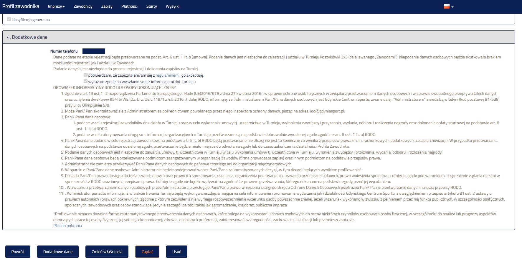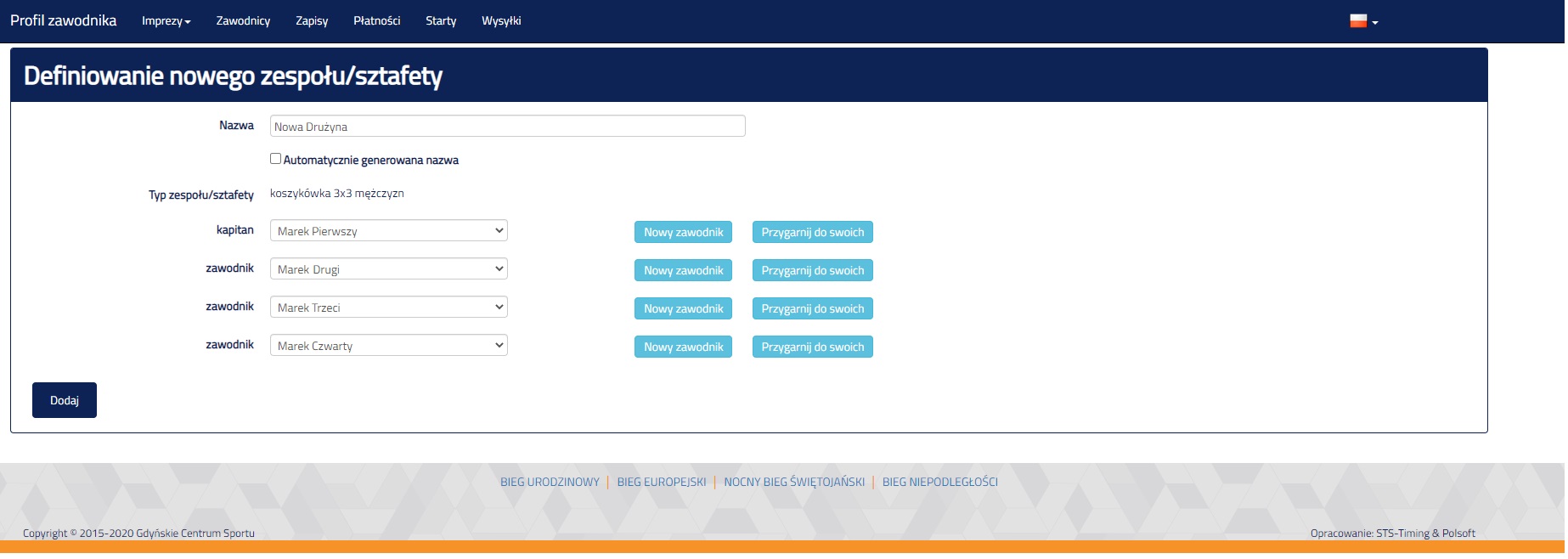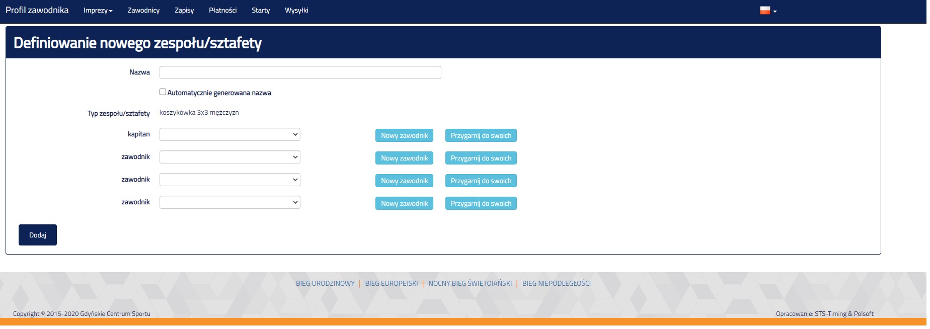 W ostatni weekend wakacji 28-30 sierpnia Gdynią zawładnie koszykówka. Turniej ulicznego basketu 3x3 Gdynia zgromadzi 800 zawodników, pojawią się też gwiazdy seniorskiego basketu i zawodnicy gdyńskich klubów. Ruszają zapisy do największej tego typu imprezy w Polsce.Na dwunastu specjalnie przygotowanych, pełnowymiarowych boiskach odbędą się pojedynki drużyn żeńskich i męskich w swoich kategoriach – od U12 do Open. Oznacza to, że każdy będzie mógł zgłosić swoją drużynę i zmierzyć się o miano najlepszej. Zobaczymy także rywalizacje o Młodzieżowe Mistrzostwo Polski do lat 17 oraz 23.By zostać częścią koszykarskiego święta, wystarczy zebrać czteroosobową drużynę i się zapisać. Jak to zrobić?INSTRUKCJA ZAPISÓW1. Należy wejść na stronę elektronicznych zapisów STS-live, zalogować się i kliknąć Turniej koszykówki 3x3 28-30 sierpnia 2020.2. Następnie Zapisz się.3. Na tym etapie decydujemy, czy zakładamy nową drużynę: Nowy zespół/sztafeta, czy dołączamy do istniejącej: Przygarnij do swoich.4. Zakładając nowy zespół, należy wpisać jego nazwę (z zachowaniem poprawności słowa i kultury językowej), uzupełnić dane czterech zawodników, w tym kapitana: Nowy zawodnik.5. Jeśli natomiast klikniemy Przygarnij do swoich, będziemy mieli możliwość wyszukania drużyny po frazie.6. Wypełniając dane, w tym datę urodzenia, system automatycznie przypisze zespół do odpowiedniej kategorii wiekowej.7. Drużyna skompletowana? Klikamy Dodaj.8. Następnym krokiem jest zaznaczenie punktu Oświadczam, że działam za wiedzą i zgodą osób zapisywanych.9. Już prawie wszystko mamy! W zależności od kategorii, system poinformuje o konieczności uiszczenia opłaty startowej. Kategoria OPEN - 100 zł, pozostałe - 50 zł. Klikamy Dalej.10. Pozostaje już tylko podanie kontaktowego numeru telefonu, zaakceptowanie regulaminu oraz zaznaczenie wymaganych zgód.11. Klikając Zapłać dokonamy wszelkich formalności finansowych.12. Gotowe! Teraz wystarczy szlifować formę. Widzimy się 28 sierpnia na parkingu przy Gdynia Arenie! Nie zapomnijcie, że podczas odbioru pakietów startowych, należy dostarczyć oświadczenia i zgody, które są zamieszczone do pobrania poniżej. Do pobrania Formularz dla dorosłych pdf324kb Formularz dla niepełnoletnich pdf344kb Formularz dla Państwowej Stacji Sanitarno-Epidemiologicznej pdf317kb Opublikowano: 31.07.2020 12:45 Autor: Michał Kozłowski (m.kozlowski@gdynia.pl) Zmodyfikowano: 31.07.2020 12:51 Zmodyfikował: Agnieszka Janowicz