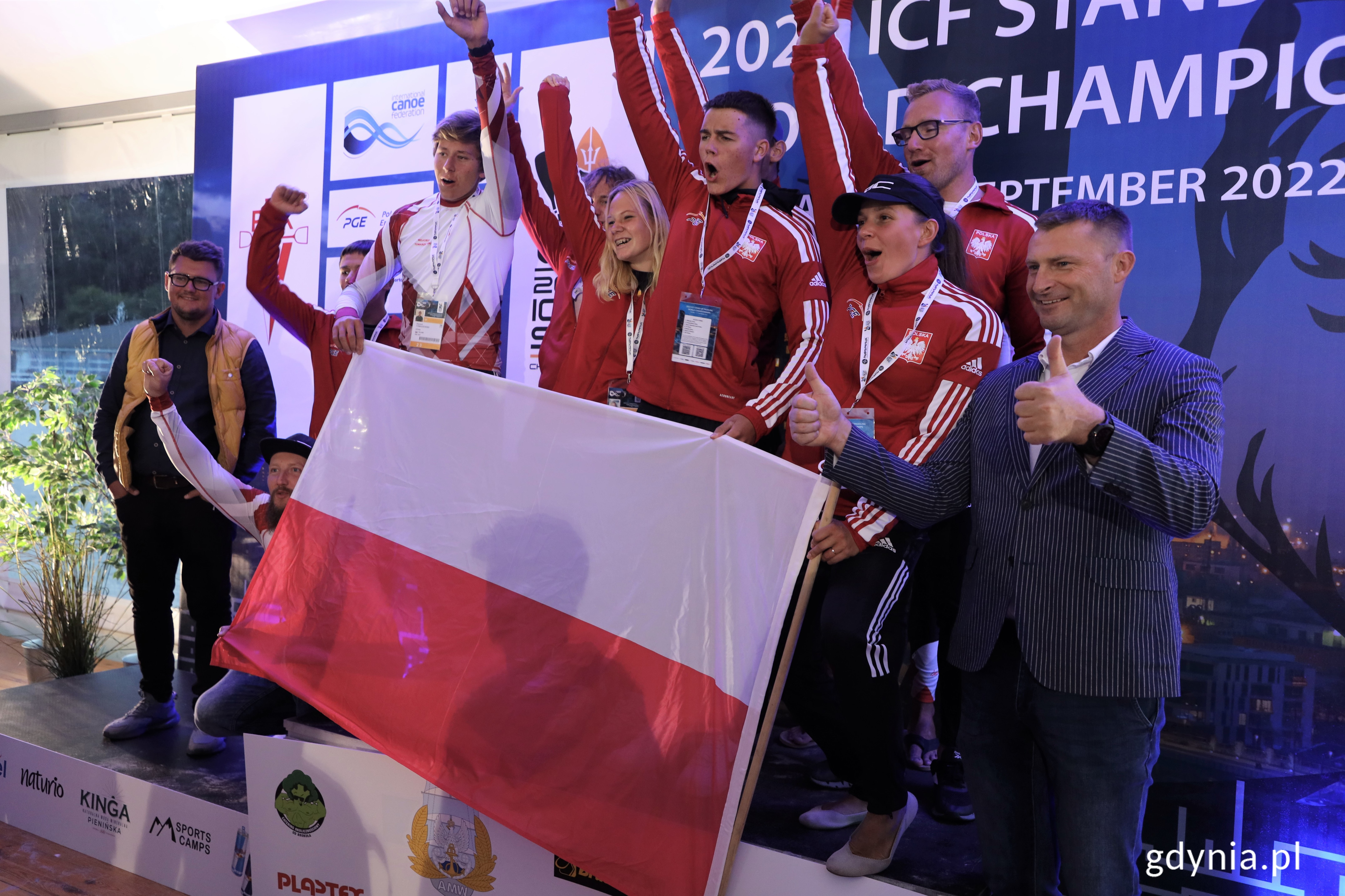 W środowy wieczór, 7 września na plaży Śródmieście odbyła się oficjalna inauguracja Mistrzostw Świata ICF SUP 2022. Zawody po raz pierwszy są organizowane w Gdyni. SUP – to skrót od „Stand Up Paddle" (wiosłowanie na stojąco). To jeden z najszybciej rozwijających się sportów wodnych, który w ostatnim czasie zyskuje coraz większą popularność. – Jest to najważniejsza impreza w tym roku dla miłośników SUP. Są to trzecie mistrzostwa świata, po raz pierwszy organizowane w Polsce – mówi prezes Polskiego Związku Kajakowego Grzegorz Kotowicz.– W Gdyni sezon na wydarzenia sportowe trwa cały rok. Do końca weekendu ugościmy 500 zawodników z 45 krajów, którzy będą ścigać się na akwenie zaraz przy Plaży Miejskiej. SUPy są coraz popularniejsze, już w tym sezonie mogliśmy widzieć wielu mieszkańców, którzy z nich korzystali. Obecnie mamy okazję obserwować najlepszych na świecie. Wszystkim uczestnikom życzę gorącej sportowej atmosfery i wiele radości z uczestniczenia w wydarzeniu – dodaje Jakub Ubych, wiceprzewodniczący Rady Miasta Gdyni. Mistrzostwa Świata ICF SUP w Gdyni, organizowane przez Polski Związek Kajakowy we współpracy ze Związkiem Sportowym SUP oraz Międzynarodową Federacją Kajakową (ICF), zakończą się w niedzielę, 11 września. Polska reprezentacja liczy niespełna czterdzieści osób.Biało-Czerwoni są już gotowi do rywalizacji w Gdyni // fot. D. KowalskiSportowcy będą rywalizować na dystansach: Sprint - szybki wyścig na 200 m, Long distance - wyścig na około 16 km, Technical - wyścig na około 2 km z mijaniem bojek. – Organizacja takiego wydarzenia to dla nas z jednej strony nowość, z drugiej zaś mamy ogromne doświadczenie w tworzeniu imprez na wodzie – jak choćby Gdynia Sailing Days. Cieszymy się, że bierzemy udział w propagowaniu dyscypliny, która coraz bardziej zyskuje na popularności – wyjaśnia zastępca dyrektora Gdyńskiego Centrum Sportu Paweł Brutel. Do uprawiania tej dyscypliny wystarczy trochę siły w rękach, dobra równowaga i koordynacja oraz najważniejszy element – czyli deska SUP. Składa się ona z 3 elementów: deski, wiosła i linki przymocowanej do nogi. Deska SUP nadaje się do pływania na każdym akwenie. Nie jest istotne czy to jezioro, rzeka czy morze – można więc pływać na niej w każdym miejscu, gdzie jest odpowiednia ilość wody.Prezydent Gdyni Wojciech Szczurek, marszałek województwa pomorskiego Mieczysław Struk oraz Polski Komitet Olimpijski objęli patronat nad mistrzostwami. Opublikowano: 08.09.2022 11:38 Autor: Dawid Kowalski (d.kowalski@gdynia.pl) Zmodyfikowano: 08.09.2022 15:07 Zmodyfikował: Karolina Szypelt