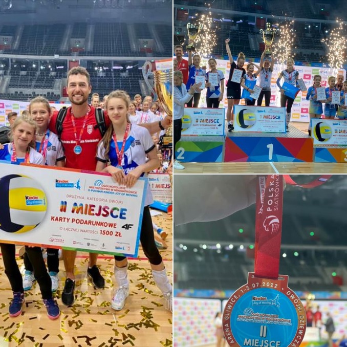 Między 1 a 3 lipca w Gliwicach rozgrywano 28. Wielki Finał Ogólnopolskich Mistrzostw w Minisiatkówce o Puchar KINDER Joy of moving. Swój historyczny tytuł wicemistrzyń Polski zdobyły tam zawodniczki Gdyńskiej Akademii Siatkówki.Blisko 200 drużyn w różnych kategoriach dziewcząt i chłopców, 45 tysięcy młodych adpetów siatkówki. Tegoroczny turniej w Gliwicach był rekordowy. O medale rywalizowano w dwójkach, trójkach i czwórkach siatkarskich.W pierwszej z kategorii swoje reprezentantki miała Gdynia. Ekipa Uczniowskiego Klubu Sportowego Gdyńskiej Akademii Siatkówki w składzie: Zuzanna Lange, Hanna Ryngwelska i Wiktoria Kaczor sięgnęły po wicemistrzostwo Polski. Dla zawodniczek prowadzonych przez trenera Przemysława Surażyńskiego to historyczny sukces - pierwszy srebrny medal mistrzostw Polski.fot. facebook.com/gdynskaakademiasiatkowki - Meldujemy wykonanie zadania! - napisano na Facebooku Gdyńskiej Akademii Siatkówki. Tak wielkie osiągnięcie nie mogło przejść obojętnie. Wiceprezydent Gdyni ds. rozwoju, Marek Łucyk, spotkał się z zawodniczkami i pogratulował osiągnięcia. - Wicemistrzostwo Polski to wielka rzecz i liczę, że to nie koniec, a dopiero początek drogi tych utalentowanych zawodniczek - wyraził nadzieję wiceprezydent. Opublikowano: 13.07.2022 10:47 Autor: Dawid Kowalski (d.kowalski@gdynia.pl) Zmodyfikowano: 13.07.2022 16:05 Zmodyfikował: Agnieszka Janowicz