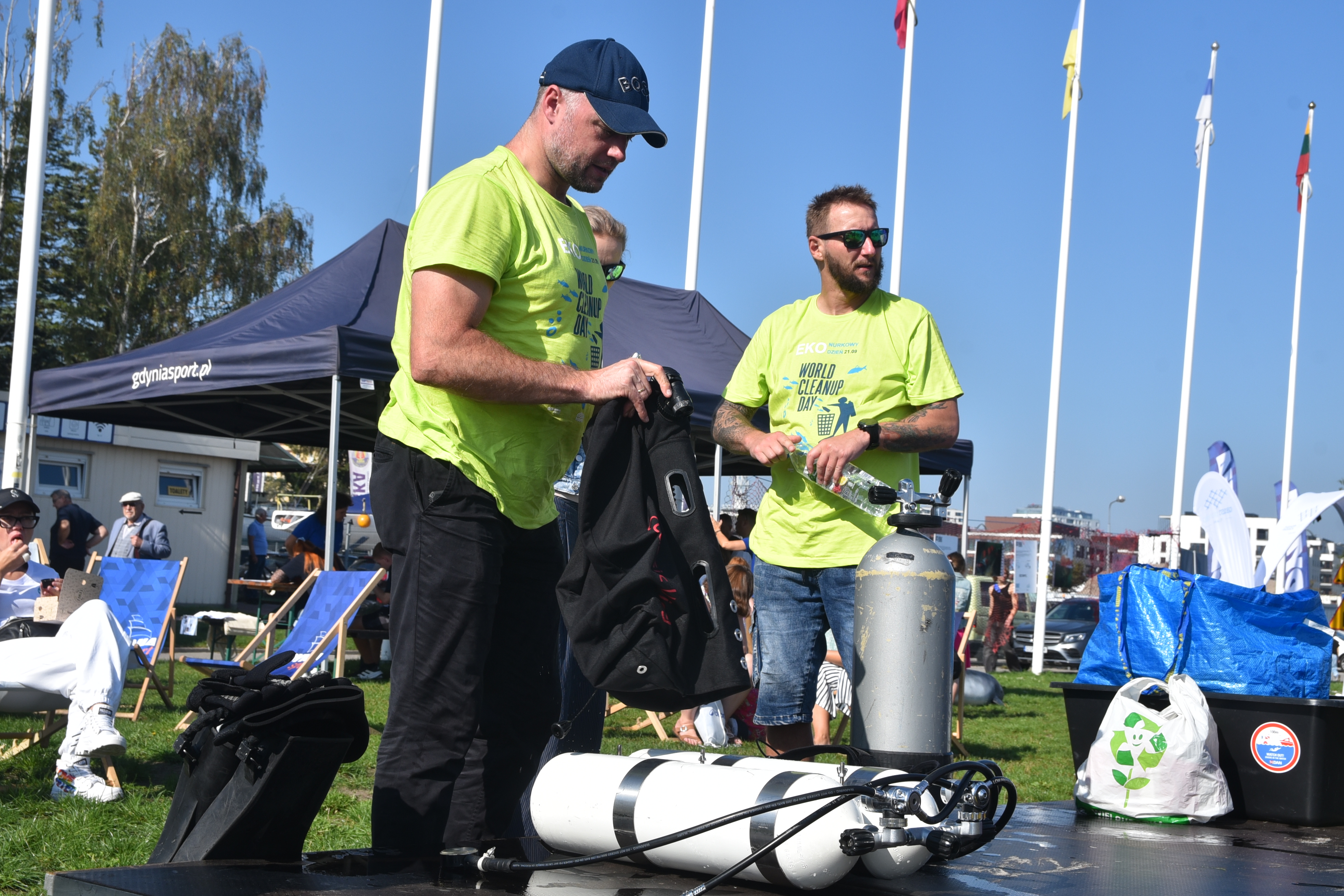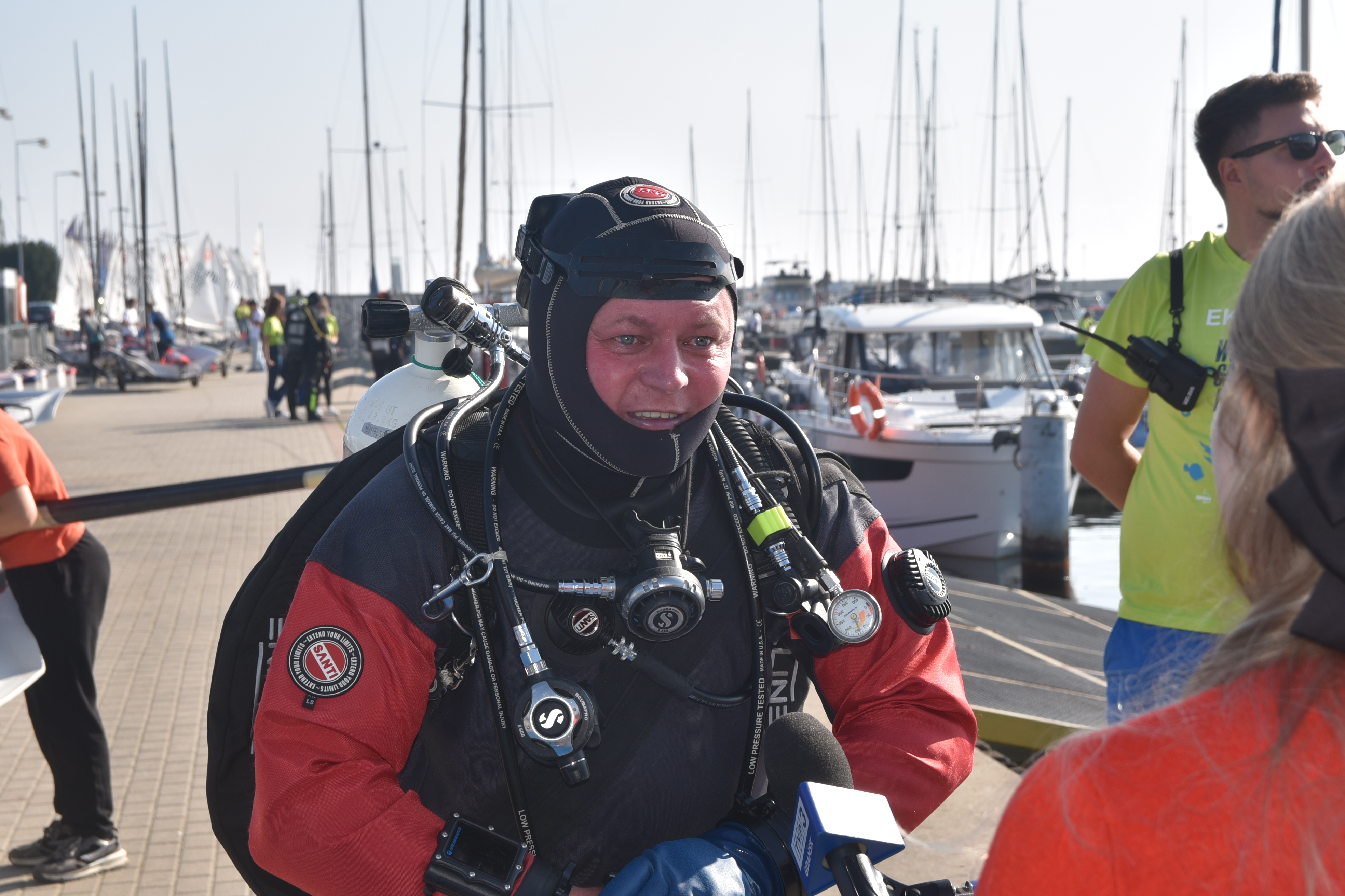 21 września gdyńska marina zamieniła się w centrum działań proekologicznych podczas wyjątkowego wydarzenia – ekoNurkowego Dnia, organizowanego przez Gdyńskie Centrum Sportu, Centrum Nurkowe Tryton oraz Fundację MARE. To spotkanie nie tylko edukowało, ale przede wszystkim inspirowało do realnych działań na rzecz ochrony Morza Bałtyckiego. 30 nurków sprzątało gdyńską marinę z wody wyciągnięto około 450 kg śmieci w ramach imprezy odbyły się spotkania, konkursy i pogadanki ekologiczne Zaskakujące zbiory śmieci: rekordowe wyniki Nurek podczas ekoNurkowego Dnia (fot. Magdalena Iwanowicz-Mongird)Najważniejszym punktem programu była akcja sprzątania dna przystani jachtowej przez ponad 30 nurków nad którymi czuwało Centrum Nurkowe Tryton. Tegoroczne efekty sprzątania zaskoczyły wszystkich – z wody wyciągnięto około 450 kilogramów odpadów, czyli o 150 kg więcej niż w ubiegłym roku! Wśród znalezionych przedmiotów pojawiły się takie niespodzianki jak hulajnoga, krzesła, drabina i opony. Czas spotkań, rozmów i wymiany doświadczeń Nurkowie przygotowujący sprzęt podczas ekoNurkowego Dnia (fot. Magdalena Iwanowicz-Mongird)ekoNurkowy Dzień to jednak nie tylko sprzątanie – to także okazja do inspirujących rozmów i spotkań. Wydarzenie zgromadziło społeczność lokalną, wolontariuszy i przedstawicieli różnych organizacji, którzy dzielili się wiedzą i doświadczeniami. Dzięki zaangażowaniu Joanny Pajdak uczestnicy mogli dowiedzieć się więcej o realnym stanie wybrzeża i problemach związanych z zaśmiecaniem plaż. Atrakcje, które przyciągnęły tłumy Stanowisko edukacyjne podczas ekoNurkowego Dnia (fot. Magdalena Iwanowicz-Mongird)Oprócz sprzątania morza, ekoNurkowy Dzień oferował wiele innych atrakcji edukacyjnych i ekologicznych, które przyciągnęły zarówno dorosłych, jak i dzieci. Dużym zainteresowaniem cieszyły się stoiska Akwarium Gdyńskiego oraz WWF, gdzie uczestnicy mogli zobaczyć z bliska organizmy zamieszkujące naszą zatokę, takie jak morświn, krewetki czy gąbki. Była to wyjątkowa okazja, by lepiej poznać bogactwo podwodnego świata Bałtyku i dowiedzieć się, jak ważna jest jego ochrona.Dużym zainteresowaniem cieszyły się również atrakcje przygotowane przez stowarzyszenie Ghost Diving. Dzięki nim uczestnicy mieli niepowtarzalną szansę sterować podwodnym dronem, który umożliwiał eksplorację dna Mariny w czasie rzeczywistym. Ponadto, technologia VR pozwalała na wirtualne zwiedzanie wraku statku, co zapewniło fascynujące przeżycia i przyciągnęło wiele osób zainteresowanych podwodnymi ekosystemami oraz ich ochroną. Dlaczego to wydarzenie jest tak ważne? Nurek podczas ekoNurkowego Dnia (fot. Magdalena Iwanowicz-Mongird)Choć z chęcią zrezygnowalibyśmy z organizowania takich akcji, konieczność ich przeprowadzania pozostaje ogromna. Wydarzenia takie jak ekoNurkowy Dzień są istotne ze względu na bezpieczeństwo ekosystemu naszego morza. Zebrane śmieci stanowią zagrożenie dla morskich organizmów, a ich usunięcie to krok w stronę ochrony środowiska. Dopóki problem zaśmiecenia wód istnieje, musimy wspólnie działać, aby zapewnić przyszłym pokoleniom czyste morza i oceany.To wydarzenie nie mogłoby się odbyć bez wsparcia partnerów akcji oraz wolontariuszy, którym serdecznie dziękujemy za ich wkład i zaangażowanie: Centrum Nurkowe Tryton Fundacja MARE Błękitny Patrol WWF Akwarium Gdyńskie Kolektyw Czysta Plaża Ghost Diving EkoPatrol Straży Miejskiej Decathlon Grupa Pekazet Ochotnicza Straż Pożarna Nie sposób również pominąć wszystkich wolontariuszy, którzy poświęcili swój czas i energię, aby wspólnie dbać o czystość Bałtyku. Dzięki Wam ten dzień był pełen pozytywnej energii i konkretnego działania na rzecz środowiska.Mamy nadzieję, że ekoNurkowy Dzień na stałe wpisał się już w kalendarz miejskich wydarzeń, dlatego już dziś zapraszamy wszystkich na kolejną edycję za rok.Wspólnie chrońmy Bałtyk dla przyszłych pokoleń! Opublikowano: 24.09.2024 08:10 Autor: Piotr Suchenia (p.suchenia@gdyniasport.pl) Zmodyfikowano: 24.09.2024 10:52 Zmodyfikował: Piotr Suchenia