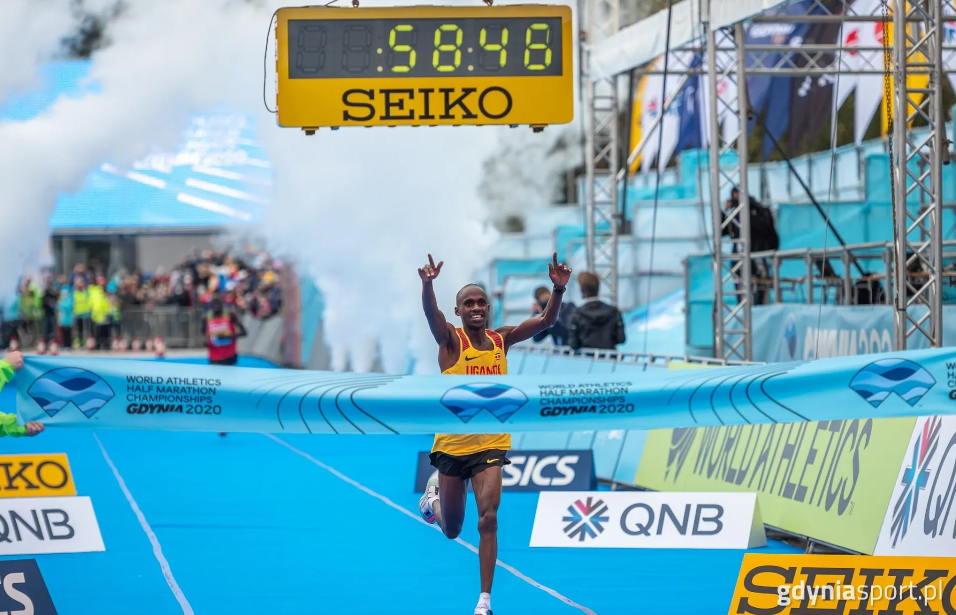 Biegowe wydarzenie sportowe, które elektryzuje tłumy, powraca w wielkim stylu. W sobotę, 18 maja, Gdynia stanie się ponownie areną sportowej rywalizacji biegaczy. Tego dnia o godzinie 20:00 na jej ulice ruszą tysiące zawodników z całego kraju, by zmierzyć się z półmaratońskim wyzwaniem. 5. edycja półmaratonu w Gdyni W ofercie półmaraton, sztafeta, bieg na 5 km i zawody dla dzieci Rejestracja do 11 maja Jeden bieg, trzy dystansePółmaraton w Gdyni to nie tylko sportowe wyzwanie, ale także wyjątkowa okazja do spędzenia czasu w atmosferze radości wraz z innymi biegaczami, których na tą chwilę jest ponad 3000. W ramach tegorocznej edycji, uczestnicy będą mieli szansę zmierzyć się z dystansem półmaratonu, który posiada atest Polskiego Związku Lekkiej Atletyki, 3-osobową sztafetą półmaratońską oraz biegiem na 5 km. Limit uczestników zawodów został ustalony na 6000 osób, a rejestracja trwa do 11 maja lub do momentu wyczerpania dostępnych miejsc. Start biegów dziecięcych podczas półmaratonu w Gdyni (fot. gdyniasport.pl)Nie zabraknie również atrakcji dla najmłodszych. W samo południe, wystartuje Frugo Kids Run, czyli impreza dla dzieci i młodzieży. Ci, w zależności od wieku, do pokonania będą mieli od 100 do 1000 metrów.Malownicza, gdyńska trasaStart półmaratonu odbędzie się z malowniczego Skweru Kościuszki w Gdyni o godzinie 20:00. Podczas pierwszych kilometrów biegu zawodniczki i zawodnicy podziwiać będą mogli między innymi ORP Błyskawica, Dar Pomorza, Sea Towers czy Dworzec Morski. Następnie miną Port Gdynia, Muzeum Emigracji, gdyńską stocznię stację Gdynia Główna i swoje korki skierują ku obiektom Gdyńskiego Centrum Sportu. Ostatnie kilometry wiodły będą ulicą Świętojańską oraz Bulwarem Nadmorskim wprost do mety usytuowanej na Skwerze Kościuszki.Maiyo Kimaiyo Hillary Kiptum mijający linię mety gdyńskiego półmaratonu (fot. gdyniasport.pl)Najlepsi i najszybsi biegali w GdyniPrzypomnijmy, że pierwsza edycja gdyńskiego półmaratonu odbyła się 20 marca 2016 roku, a linię mety przekroczyło 4125 zawodników. Gwiazdą imprezy był srebrny medalista olimpijski z Londynu oraz podwójny mistrz świata (Berlin 2009, Daegu 2011) Abel Kirui z Kenii, który po zaciętej walce uplasował się na trzecim miejscu. Historycznym triumfatorem imprezy został Maiyo Kimaiyo Hillary Kiptum, również z Kenii, któremu pokonanie 21 km trasy zajęło 1 godzinę, 2 minuty i 41 sekund. Wśród kobiet, z czasem 1:13:16, zwyciężyła także Kenijka Chebet Agnes.Krystian Zalewski na mecie Mistrzostw świata w półmaratonie w Gdyni (fot. gdyniasport.pl)Kolejne edycje, które odbyły się w latach 2017-2019 ukończyło odpowiednio 5895, 5889 i 6237 osób. W 2020 roku z powodu pandemii koronawirusa zawody towarzyszące Mistrzostwom świata w półmaratonie musiały zostać odwołane. Zorganizowany został jedynie światowy championat, w którym Krystian Zalewski (1:01:32) ustanowił nowy rekord Polski, a drużyna kobiet uplasowała się na 7. miejscu. To były najlepsze rezultaty naszych biegaczy w historii tych prestiżowych zawodów, w trakcie których padło wiele fantastycznych wyników, w tym rekord świata w biegu kobiet oraz rekord mistrzostw ustanowiony przez zwycięzcę biegu elity mężczyzn.Zwycięzca Mistrzostw świata w półmaratonie w Gdyni przecinający linię mety (fot. gdyniasport.pl)Rejestracja na zawody jest możliwa poprzez formularz dostępny na stronie SlotMarket.pl, a organizatorem PKO Gdynia Półmaratonu jest Sport Evolution Group Sp. z o.o. Opublikowano: 08.03.2024 09:11 Autor: Piotr Suchenia (p.suchenia@gdyniasport.pl) Zmodyfikowano: 08.03.2024 15:24 Zmodyfikował: Agata Grzegorczyk