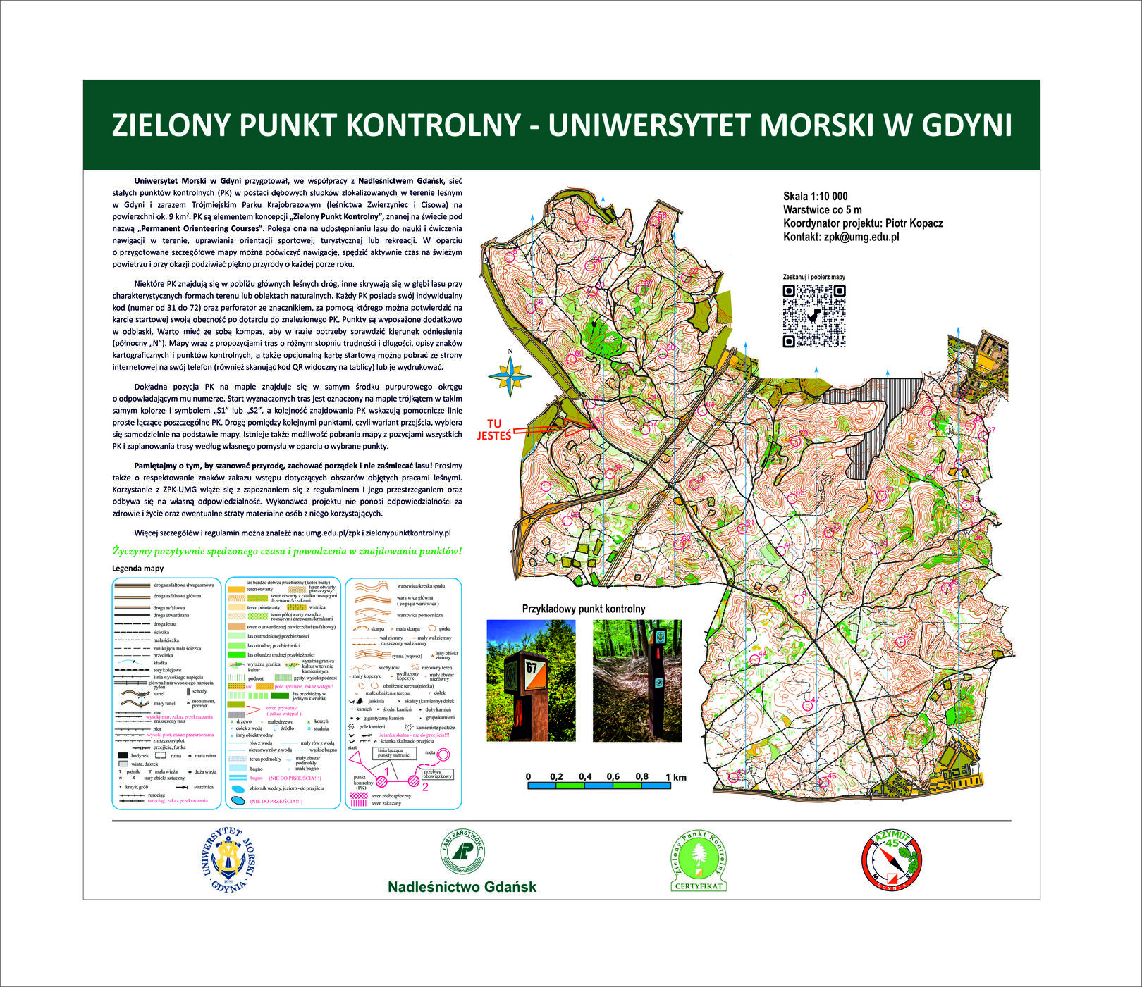 W lasach Trójmiejskiego Parku Krajobrazowego, na terenie leśnictw Zwierzyniec i Cisowa, na powierzchni ok. 9 km² ustawione zostały stałe punkty kontrolne w postaci dębowych słupków. Są one elementem akcji „Zielony Punkt Kontrolny”, znanej na świecie pod nazwą „Permanent Orienteering Courses”. W jej ramach uczestnicy uczą się nawigacji w terenie korzystając z mapy i kompasu. Koordynatorem projektu jest Uniwersytet Morski w Gdyni. Mapy w skali 1:10 000 z propozycjami tras o różnym stopniu trudności i długości, opisy użytych znaków kartograficznych i charakterystyk punktów kontrolnych, a także opcjonalną kartę startową do potwierdzenia w tradycyjny sposób swojej obecności na nich za pomocą perforatorów można znaleźć na stronie internetowej projektu.Tablica informacyjna Zielonego Punktu Kontrolnego w Gdyni (Źródło: https://umg.edu.pl/zpk)Wybór wariantu pomiędzy kolejnymi punktami kontrolnymi, których łącznie jest 42, zależy od uczestnika. Do dyspozycji są dwie mapy: „Grabówek” i „Chylonia”. Naniesione na nich zostały trasy biegowe: krótka, średnia, długa, bardzo długa oraz rowerowe: łatwa i trudna. Dodatkowo można pobrać mapy, na których znajdują się wszystkie ustawione w lesie punkty kontrolne. Trasy można pokonywać również w nocy, gdyż na każdym z punktów zostały zamocowane odblaski.Zielony Punkt Kontrolny w Gdyni (Źródło: https://umg.edu.pl/zpk)Niektóre z punktów zlokalizowane są w pobliżu najbardziej uczęszczanych leśnych dróg, inne umiejscowione są przy charakterystycznych formach terenu lub obiektach naturalnych, jak kamień, bagno czy dołek. Każdy z nich posiada swój indywidualny kod numeryczny oraz perforator za pomocą którego można w tradycyjny sposób potwierdzić swoją obecność na karcie startowej. Dokładna pozycja każdego z nich na mapie znajduje się w samym środku odpowiadającego mu okręgu. Początek tras jest oznaczony na mapie trójkątem oraz kodem S1 (na mapie „Grabówek") lub S2 (na mapie „Chylonia").Oficjalne otwarcie Zielonego Punktu Kontrolnego – UMG odbędzie się w sobotę, 14 października o godzinie 11:00 przy wejściu do lasu na końcu ul. Grabowo w Gdyni. Udział w imprezie jest bezpłatny. REJESTRACJA DO IMPREZY Opublikowano: 13.10.2023 09:34 Autor: Piotr Suchenia (p.suchenia@gdyniasport.pl) Zmodyfikowano: 13.10.2023 09:58 Zmodyfikował: Agnieszka Janowicz