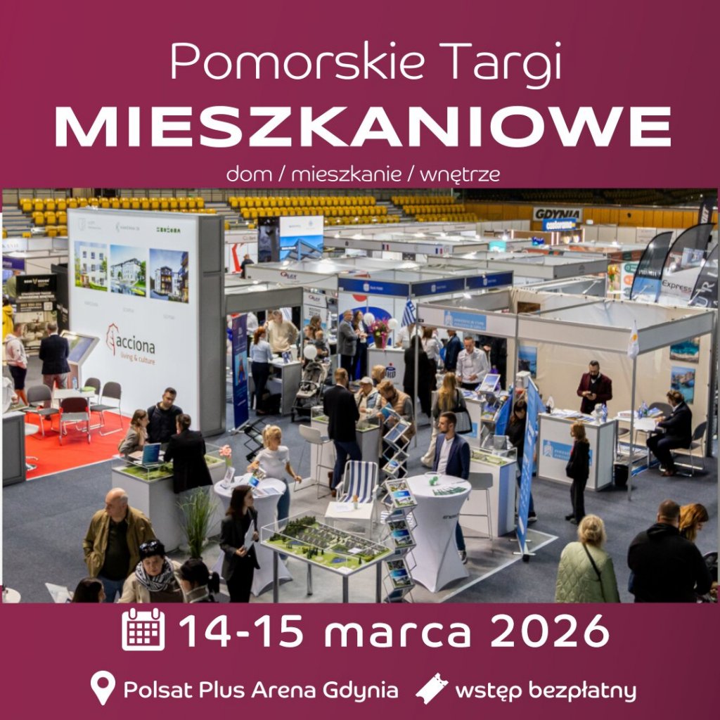 Już 14 i 15 marca 2026 zapraszamy na kolejną edycję Pomorskich Targów Mieszkaniowych „Dom / Mieszkanie / Wnętrze”, która odbędzie się w Polsat Plus Arenie Gdynia.