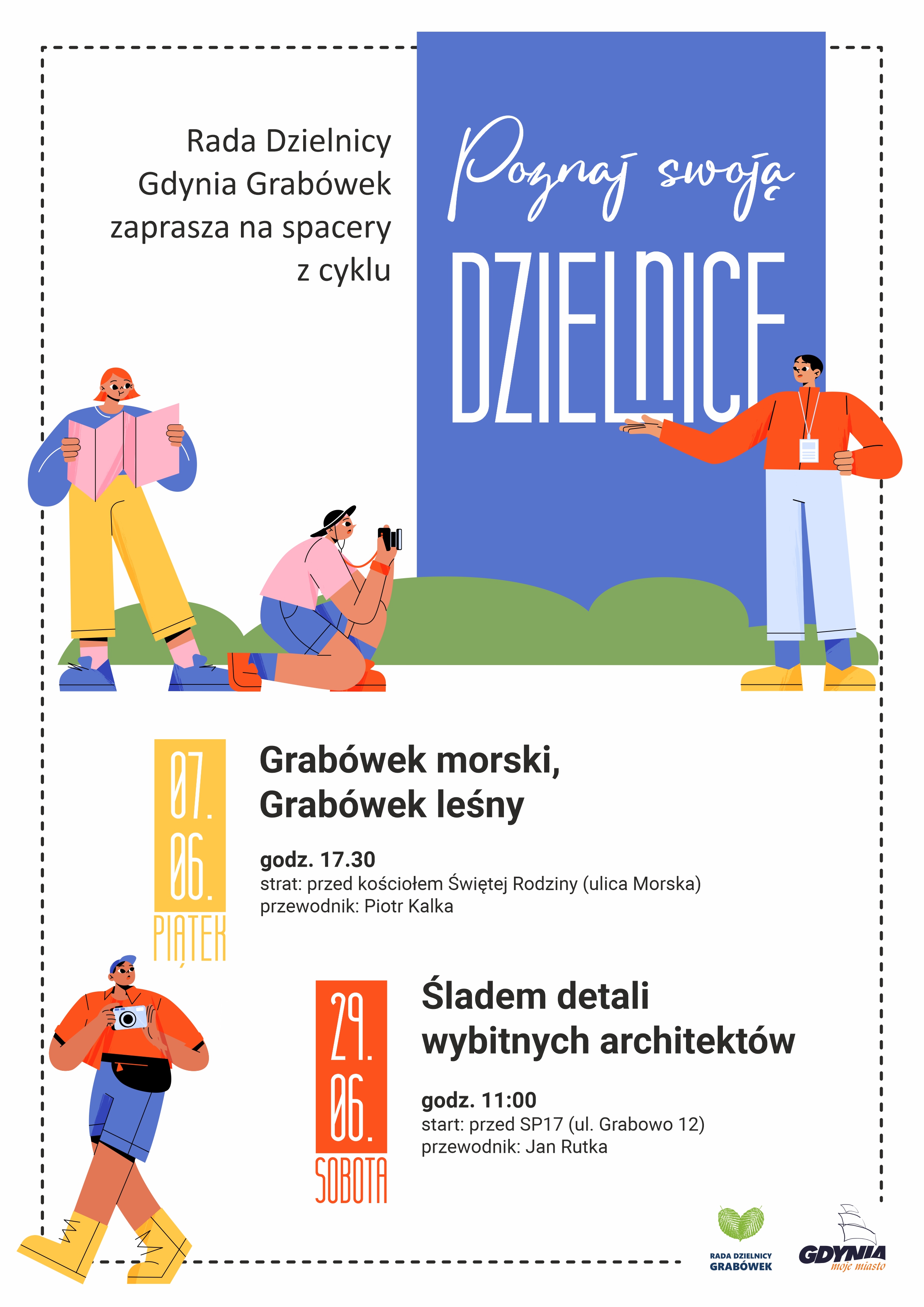 Rada Dzielnicy Gdynia Grabówek zaprasza na spacer z cyklu „Poznaj swoją dzielnicę". "Śladem detali wybitnych architektów"29 czerwca (sobota)start: godz. 11:00, przed SP nr 17 (ul. Grabowo 12)Z przewodnikiem Janem Rutką przejdziemy się pierwszą dzielnicą Gdyni, przyglądając się jej architekturze i zmianom które w niej zachodziły na przestrzeni lat. Przedstawiając zarówno dobrze zachowane budynki jak i te po znacznych zmianach. Na spacerze będziemy sięgać po oryginalne projekty i porównywać z realizacjami.Zapraszamy!!!Spacery realizowane są ze środków statutowych Rady Dzielnicy Grabówek. Wstęp wolny! Opublikowano: 29.05.2024 13:48 Autor: Joanna Majchrowska (joanna.majchrowska@gdynia.pl) Zmodyfikowano: 05.06.2024 09:55 Zmodyfikował: Joanna Majchrowska