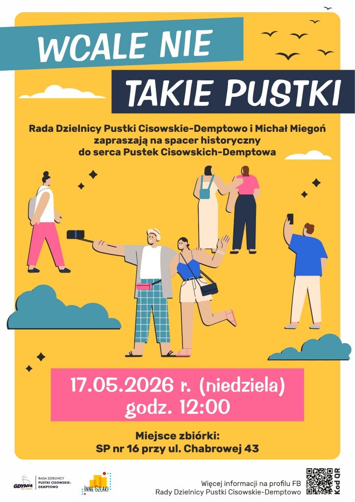 W roku jubileuszowym naszego miasta zapraszamy na spacer historyczny do serca Pustek Cisowskich-Demptowa. Ulica Borowikowa, ulica Żurawia, ulica Chabrowa – w sercu dawnej polany i w cieniu kaszubskich gospodarstw szybko wyrosły w ciągu ostatnich dekad nowe osiedla. Poznajmy bogatą, sięgającą średniowiecza historię dzielnicy i jej okolic podczas dwugodzinnego spaceru odkrywającego sekrety i historyczne skarby tego rejonu. Na trasie m.in.: Dolina Potoku Cisowskiego oraz dawne działki i pola, na których wyrosło osiedle Zamek Historia kaszubskich rodzin oraz porównania zdjęć – teraz i dawniej Ul. Żurawia, Malinowa i Modrzewiowa – powojenny rozwój oraz rozmowy z mieszkankami i mieszkańcami Natura Pustek Cisowskich-Demptowa – w okolicach tzw. Klifu Cisowskiego Dawne miejsca sakralne oraz zabudowania przy ul. Pawiej / Kolonia Lotnicza Prowadzenie: Inne Szlaki: Michał Miegoń - Przewodnik - Pomorze / Polska.Wydarzenie bez zapisów.Zadanie sfinansowane z budżetu dzielnicy Pustki Cisowskie-Demptowo. Opublikowano: 29.04.2026 09:10 Autor: Paweł Jałoszewski (pawel.jaloszewski@gdynia.pl) Zmodyfikowano: 29.04.2026 09:12 Zmodyfikował: Paweł Jałoszewski