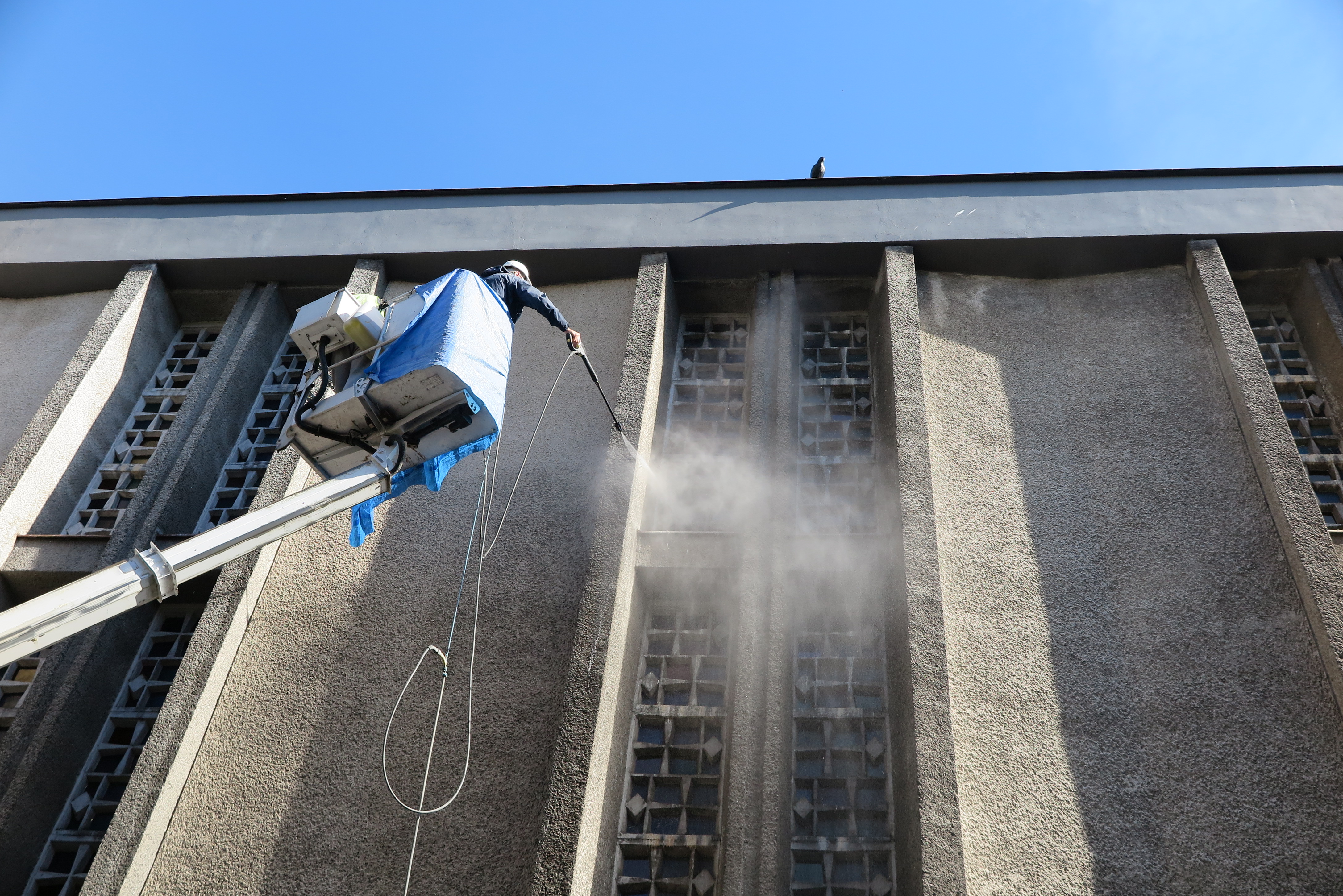 fot.B.PonikiewskiW ostatnich tygodniach rozpoczęły się prace konserwatorskie przy kolejnych zabytkach Gdyni, dofinansowane z budżetu Miasta Gdyni. Jednym z zabytków, który jest już poddawany renowacji jest kościół p.w. Najświętszego Serca Pana Jezusa przy ul. Armii Krajowej. Pierwszy etap prac obejmuje oczyszczenie tynkowanych powierzchni elewacji. Elewacje powyżej parteru, które wykończone zostały gruboziaranistymi tynkami, o porowatej strukturze, odzyskują stopniowo swoją pierwotną barwę.fot. Biuro Miejskiego Konserwatora Zabytków O kościele Kościół został wpisany do wojewódzkiego rejestru zabytków w 2016 r. (nr w rejestrze wojewódzkim A-1927). Jest to znakomity przykład modernistycznej architektury sakralnej wpisanej w wielkomiejską zabudowę śródmieścia. Zbudowany został według projektu z 1956 r. znanych architektów Jana Borowskiego i Leopolda Taraszkiewicza. Kościół powstał w okresie tzw. odwilży po czasach stalinowskich. Skromny wystrój elewacji jest odzwierciedleniem trudności w pozyskaniu wszelkich materiałów budowlanych, dlatego elewacje wykończono tynkiem w odcieniach szarości i oblicowano częściowo kamieniami polnymi, przynoszonymi przez parafian. Świątynia ma wielkie znaczenie symboliczne dla Gdyni i Wybrzeża. W jej wnętrzu znajduje się m.in. kaplica Portowców, Stoczniowców i Ludzi Morza. Opublikowano: 24.05.2017 13:20 Autor: Anna Częścik (a.czescik@gdynia.pl) Zmodyfikowano: 26.05.2017 13:15 Zmodyfikował: Anna Częścik