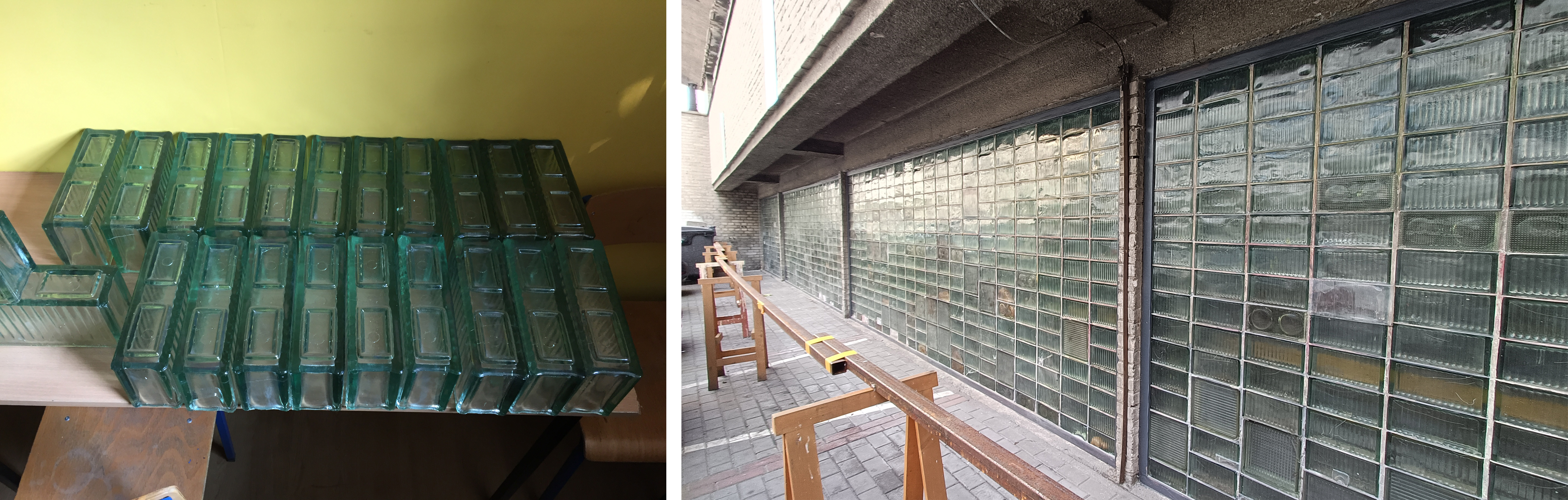 Pustak szklany z budynku YMCA zabytkiem miesiąca marzec 2026. Wyjątkowym i bardzo cennym detalem zabytkowego budynku YMCA w Gdyni jest szklany pustak użyty do budowy przeszklenia wschodniej i zachodniej ściany sali gimnastycznej.Budynek przy ul. Żeromskiego 26 w Gdyni powstał w latach 1948-1951 jako siedziba gdyńskiego ogniska ,,Polskiej YMCA", stowarzyszenia YMCA (Young Men's Christian Association) według projektu Stefana Kozińskiego i Bohdana Damięckiego.Utrzymany w stylu modernistycznym zachował oryginalny układ wnętrz, liczne elementy wyposażenia i wystroju, w tym ściany sali gimnastycznej wykonane z pustaków szklanych zabarwionych na kolor zielonkawy ze wzorem karbowanym pionowo. Budynek YMCA (foto. B. Ponikiewski) i pustak szklany ze zbiorów Biura MKZ (foto. zasoby Biura MKZ) Szklane pustaki były stosowane do budowy ścian, które miały zapewnić dostęp światła, nie będąc jednocześnie całkowicie przeziernymi. Pełniły też funkcję dekoracyjną. Pustak szklany od spodu i widok na ścianę szklaną w budynku YMCA (foto. zasoby Biura MKZ) Pustaki zastosowane w budynku YMCA mają formę otwartego prostopadłościanu – „cegły” o wymiarach 25x12x7,5 cm, z brakującą jedną wozówką (dłuższym bokiem cegły) i z wypustkami po przeciwnej stronie, które umożliwiają montaż pustaków na wpust, niczym klocki LEGO®. Zostały zamontowane równolegle względem siebie w stalowych ramach z ceowników ułożonych na drewnianych listwach i wyłożonych filcem.Fugi między pionowymi pasami pustaków wykonano z betonu i uzupełniono kitem szklarskim, a następnie pomalowano na kolor turkusowy, zbliżony do odcienia pustaków. Zadbano także o pomalowanie główek (krótszych boków) pustaków, aby przez szklenie nie przebijała szara zaprawa. Szklane pustaki przygotowane do wymiany i ściana szklana od strony zachodniej po wykonaniu prac (foto. zasoby Biura MKZ) Obie ściany szklane budynku YMCA poddano pracom konserwatorskim w 2023 roku. Po wykonaniu wieloetapowego czyszczenia z zabrudzeń, graffiti oraz plakatów ujawnił się stan zachowania poszczególnych pustaków i wtórne przemurowania. Bardzo wiele z nich wymagało wymiany, a liczne miejsca uzupełnień. Niestety, ze względu na brak możliwości produkcji i dostępności analogicznych pustaków udało się pozyskać tylko kilkadziesiąt, w związku z czym możliwa była tylko częściowa wymiana.Prace okazały się skomplikowane ze względu na sposób montażu pustaków, tzn. ze względu na wypustki nie było możliwości włożenia pojedynczego pustaka w miejsce ubytku. Konieczne było przecinanie nowych pustaków na pół i sklejanie ich w miejscu wymiany. Prace renowacyjne wykonała firma „Gdyńska Pracownia Projektowo-Konserwatorska Mirosław Studniak”. Elewacja szklana przed i po pracach konserwatorskich (foto. zasoby Biura MKZ) Prace przy renowacji szklanej ściany (foto. zasoby Biura MKZ) Pustaki szklane nie są luksferami. Różnica między tymi dwoma produktami tkwi w ich budowie. Pustak szklany, jak sama nazwa wskazuje, jest pusty w środku i zapewnia lepszą izolacyjność termiczną. Luksfer natomiast tworzy się z jednego kawałka masy szklanej.Opracowała: mgr inż. arch. Luiza Skrzypkowska Opublikowano: 31.03.2026 09:01 Autor: Luiza Skrzypkowska (luiza.skrzypkowska@gdynia.pl) Zmodyfikowano: 07.04.2026 09:19 Zmodyfikował: Aleksandra Dylejko