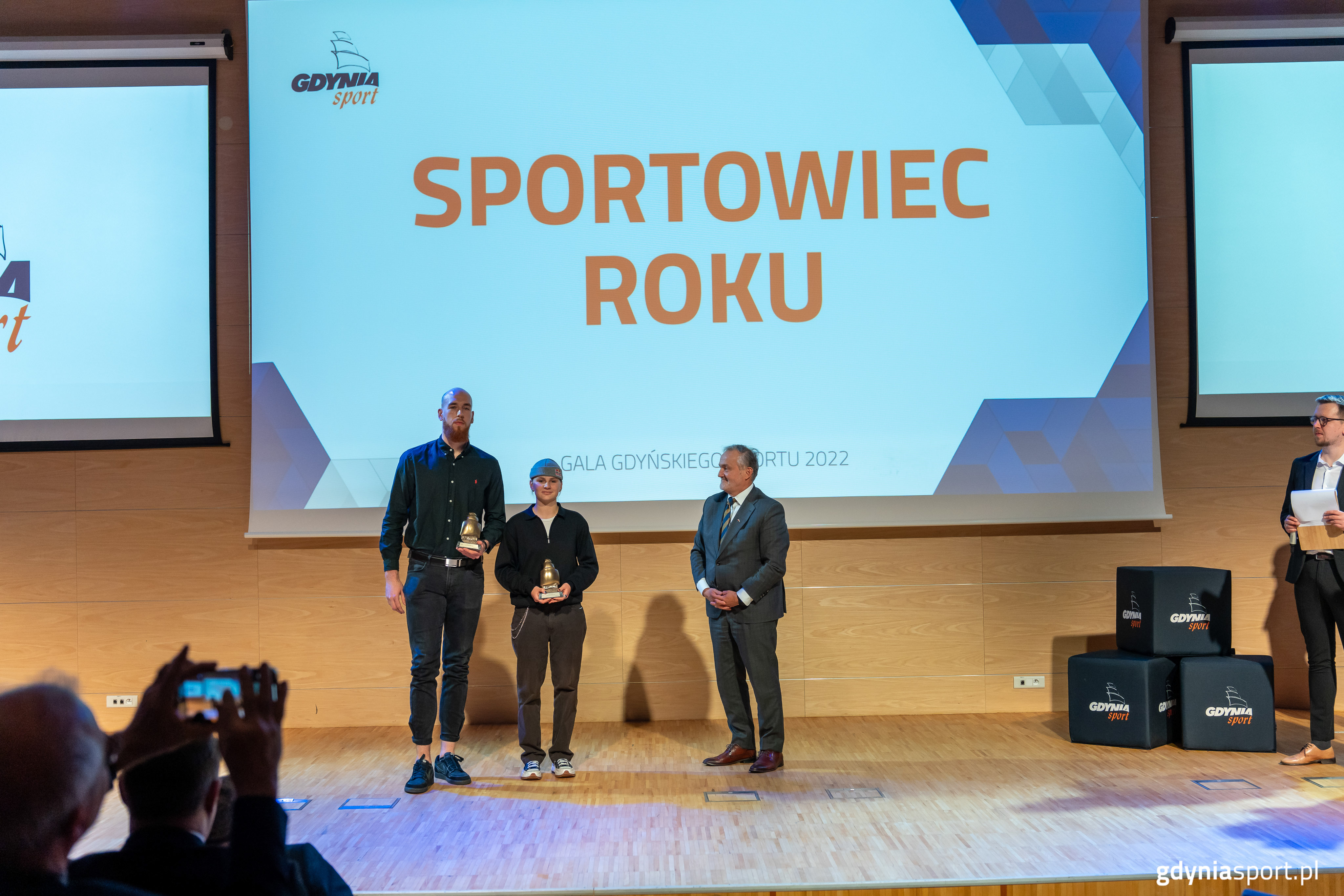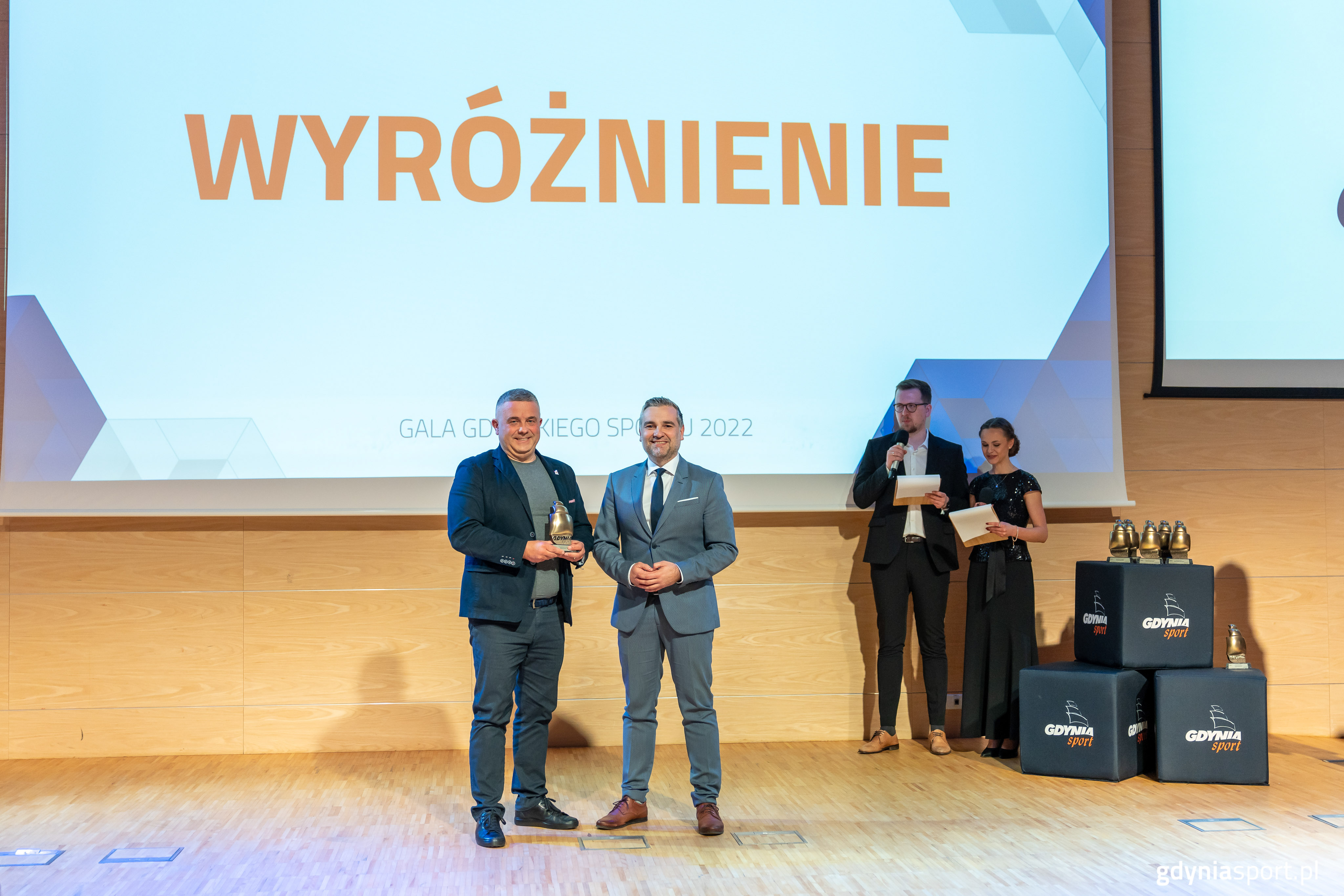 Stały punkt sportowego kalendarza w naszym mieście rokrocznie stanowi Gala Gdyńskiego Sportu. W tym roku, po trzech latach przerwy, znowu spotkaliśmy się wszyscy razem. Nagrodziliśmy najlepszych i wyróżniliśmy działania na rzecz rozwoju kultury fizycznej i promocji Gdyni przez sport. Pandemia koronawirusa sprawiła, że przyjemność ze wspólnych spotkań na gali trzeba było odłożyć do życia wirtualnego. Po raz ostatni szykowne kreacje i eleganckie garnitury przywdzialiśmy na początku 2020 roku. Później nastąpiła przymusowa przerwa. Teraz powróciliśmy – uśmiechnięci i stęsknieni wspólnych spotkań.Tegoroczną galę poprowadził duet debiutantów: Marta Goluch i Paweł Marszałkowski.W tym roku wyróżnienia dla wybitnych osób, które zapisały się na sportowych kartach naszego miasta przyznane zostały już po raz 24. Poznajmy mistrzów gdyńskiego sportu, w ręce których powędrowały nagrody zwane przez wielu „złotymi żaglami”. – Po dwóch latach pandemii w końcu spotkaliśmy się na żywo ze sportowcami, których na co dzień możemy podziwiać na sportowych arenach. To bardzo ważne, aby na moment zatrzymać się i podziękować za ciężką pracę sportowców, a także za emocje, które dzięki nim przeżywaliśmy podczas całego roku – przyznaje prezydent Gdyni Wojciech Szczurek. – Bardzo się cieszę, że najlepszymi sportowcami mogą w naszym mieście zostać osoby z dyscyplin mniej oczywistych, nowych. Myślę, że zarówno sporty deskorolkowe, jak i koszykówka 3x3, to takie dyscypliny, w których pojawią się kolejne gdyńskie talenty – dodaje. Wręczenia tradycyjnie rozpoczęliśmy od nadziei. Bo Nadziejami Gdyńskiego Sportu minionego roku zostali:NADZIEJA GDYŃSKIEGO SPORTUFranciszek Borys – żeglarz Yacht Klubu Polski Gdynia. Zdobył mistrzostwo Europy juniorów do lat 21, wicemistrzostwo świata juniorów w kategorii do lat 21 oraz brązowy medal Mistrzostw Polski w klasie 470 w kategorii seniorów i młodzieżowców.Bartosz Mońko – koszykarz Stowarzyszenia Gdyńskiej Akademii Koszykówki. Z drużyną zdobył Mistrzostwo Polski do lat 17. Brał udział w Młodzieżowej Eurolidze oraz jest reprezentantem Polski.Julianna Ponto – żeglarka Klubu Sportowego AZS AWFiS. 15-letnia gdynianka została wicemistrzynią świata w klasie Open Skiff do lat 14 we Francji. W swoim bogatym dorobku ma również m.in. tytuł mistrzyni Polski.Jakub Sordyl – judoka Uczniowskiego Klubu Sportowego Galeon Gdynia. Wywalczył tytuł mistrza Polski seniorów w kategorii wagowej powyżej 100 kg. Zdobył również tytuł mistrza Polski juniorów w tej samej kategorii wagowej oraz złoty medal Pucharu Europy Juniorów. Jest złotym medalistą i zdobywcą Pucharu Polski Seniorów.Piotr Trella – żeglarz Miejskiego Klubu Żeglarskiego Arka Gdynia. Został mistrzem świata w klasie Open Skiff do lat 15 w Caracas we Francji. Zdobył również mistrzostwo Polski w klasie Open Skiff oraz został mistrzem Polski do lat 15 w sprincie, w Gdyni – oczywiście w klasie Open Skiff.Krystian Trepczyk – pięcioboista nowoczesny, zawodnik Uczniowskiego Klubu Sportowego Gromik. Zajął trzecie miejsce indywidualnie i trzecie miejsce w sztafecie na Mistrzostwach Świata Juniorów Młodszych w pięcioboju nowoczesnym we Włoszech.Adam Zdybel – pływak Klubu Sportowego Delfin Gdynia. Został mistrzem świata juniorów w Peru. Zajął trzecie miejsce w sztafecie 4x200 m stylem dowolnym w Mistrzostwach Europy Juniorów w Bukareszcie oraz trzecie miejsce w sztafecie 4x200 m stylem dowolnym w Mistrzostwach Polski Juniorów, a także drugie miejsce na 200 i 400 m stylem dowolnym. SPORTOWA IMPREZA ROKUW tej kategorii przyznano wyróżnienie oraz nagrodę główną.Wyróżnienie otrzymało Gdynia Winter Swimming Cup BCT Series. To zawody zimowego pływania, odbywające się w polskim Bałtyku na terenie portu jachtowego w Marinie Gdynia. Jest ekstremalnie, a temperatura wody nie przekracza 5 stopni Celsjusza. Słona woda, wiatr i fale stanowią wyzwanie, które przyciągnie do Gdyni najlepszych zimowych pływaków z całego świata.Sportową Imprezą Roku zostały 2022 ICF SUP World Championships Gdynia. Mistrzostwa świata SUP ICF zapisały się w historii polskiego sportu. Impreza tej rangi gościła w naszym kraju po raz pierwszy. Blisko pięciuset zawodników z ponad 40 krajów z całego świata spotkało się na gdyńskiej plaży, by rywalizować o najcenniejsze sportowe trofeum sezonu. Ramię w ramię z najlepszymi mogli wystartować amatorzy – to ewenement na skalę światowego sportu i przykład, jak z sukcesem można dbać o rozwój danej dyscypliny. Dla mieszkańców Gdyni i turystów było to natomiast fantastyczne widowisko, które mogli obserwować z poziomu plaży czy Bulwaru Nadmorskiego.TRENER ROKUJest matką i ojcem w jednym – gdy trzeba, potrafi krzyknąć, ale pospiesznie też doceni. Często nazywany człowiekiem do zadań specjalnych. Połączenie strażaka, psychologa i motywatora. Pierwszy do obrony swoich ludzi, ostatni do wystawiania piersi po ordery.Trenerem Roku 2022 został Robert Wilczyński – trener piłkarskich juniorów starszych Arki Gdynia. Ma patent na sukces. W 2012 roku poprowadził młodych zawodników Arki Gdynia do mistrzostwa Polski. Później, przez lata, pracował głównie z seniorami, a gdy po blisko dekadzie ponownie objął zespół juniorów starszych… znów sięgnął po medal. W ubiegłym sezonie zawodnicy Roberta Wilczyńskiego zdobyli tytuł wicemistrzów Polski Centralnej Ligi Juniorów.DRUŻYNA ROKUPodobnie, jak w przypadku Imprezy Roku, tak i tutaj przyznano wyróżnienie oraz nagrodę główną. A skoro Gdynia to polska stolica koszykówki, wyróżnienie trafiło do Gdyńskiej Akademii Koszykówki U17. Młodzi koszykarze Gdyńskiej Akademii Koszykówki wrócili ze złotymi medalami z Mistrzostw Polski Mężczyzn do lat 17, które odbywały się w Zielonej Górze. W finale podopieczni Nikoli Avramovici